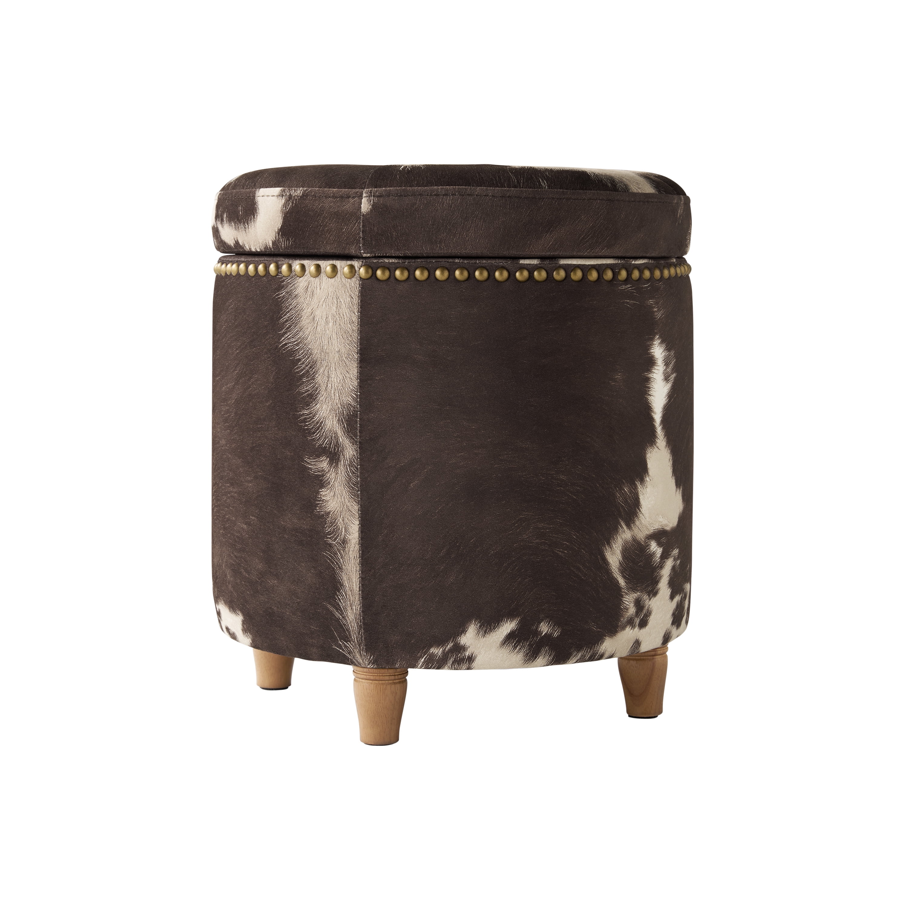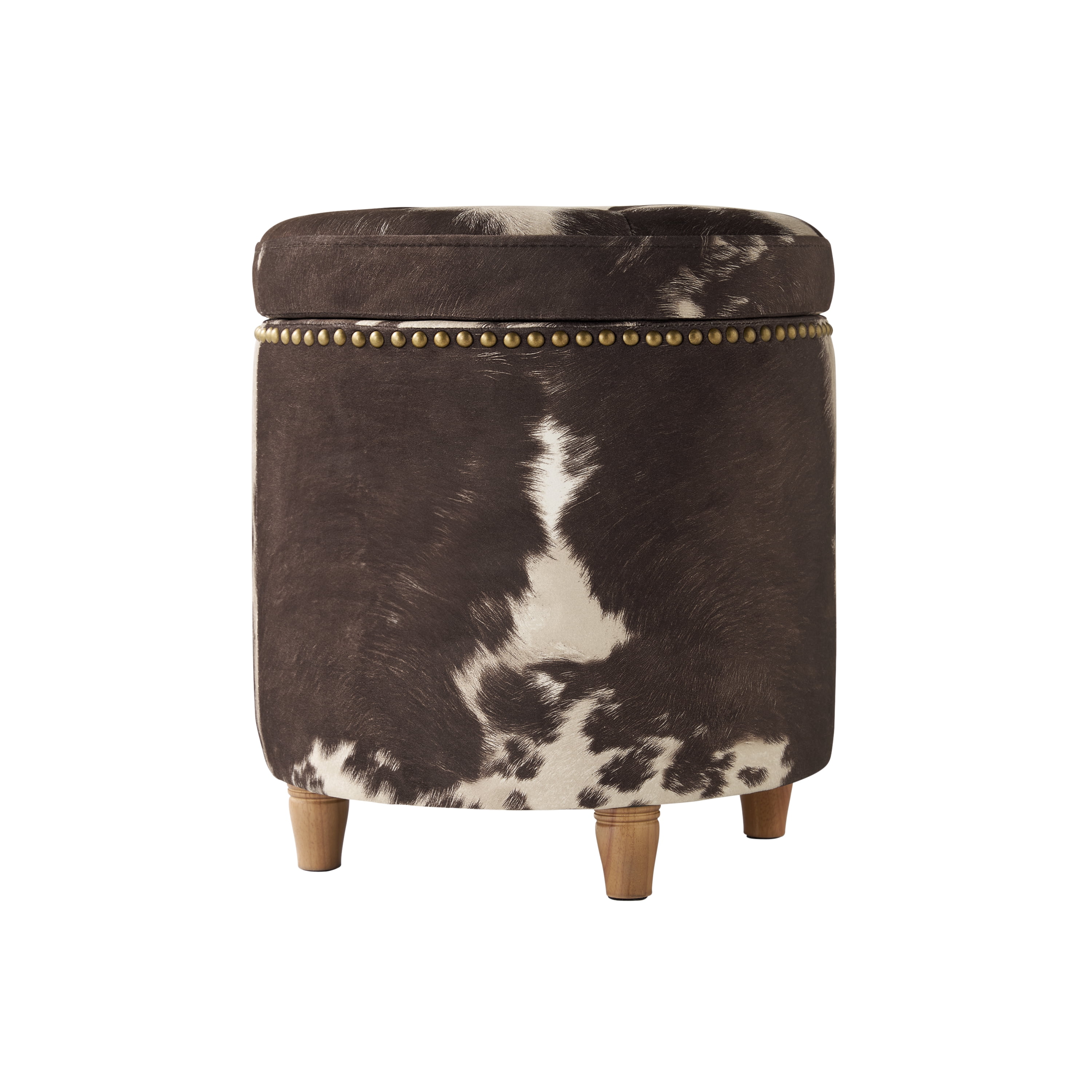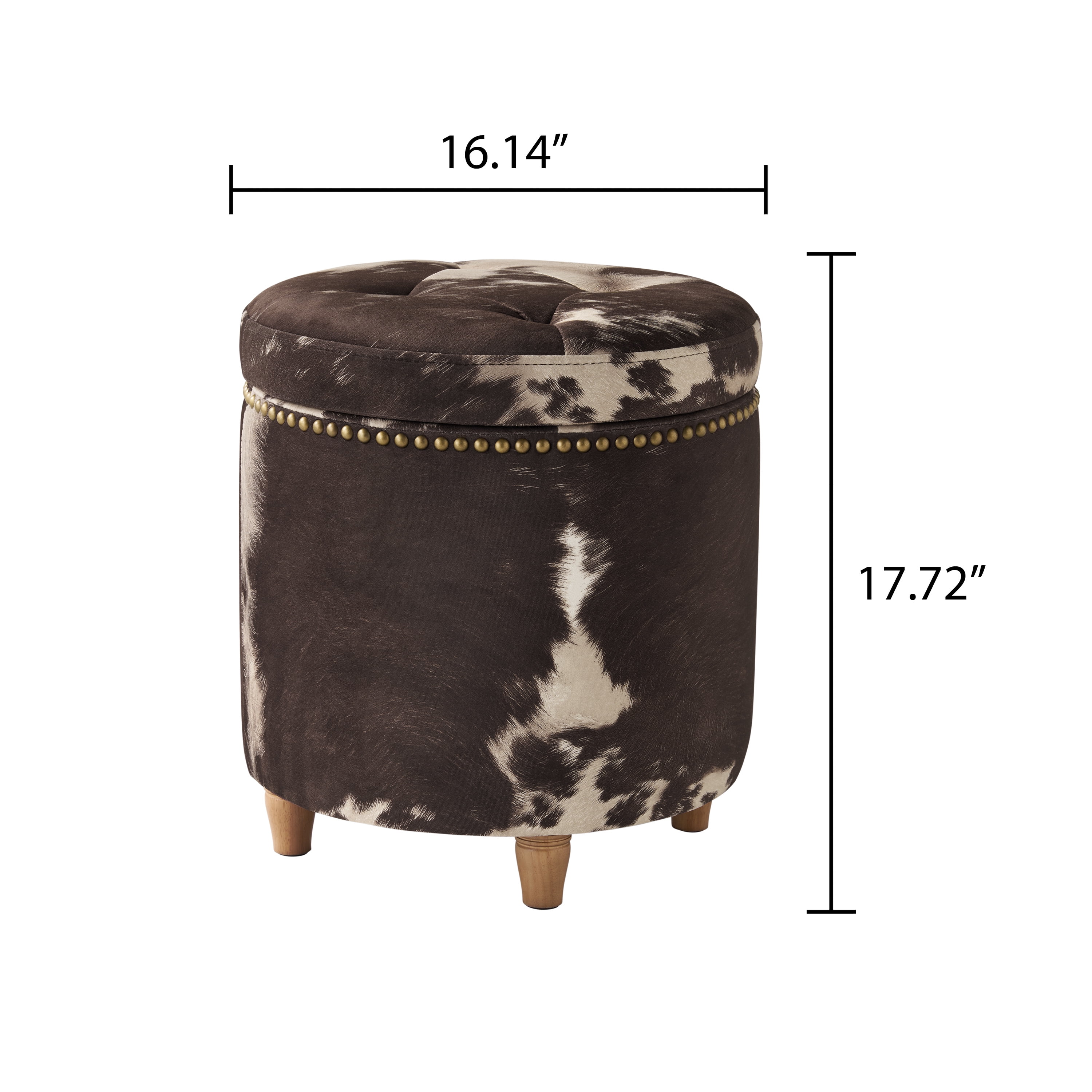 The Pioneer Woman Harper Round Storage Ottoman, Cowhide, 17.72 in Interior storage under the removable top Beautiful tufted ottoman top Heirloom Brown legs