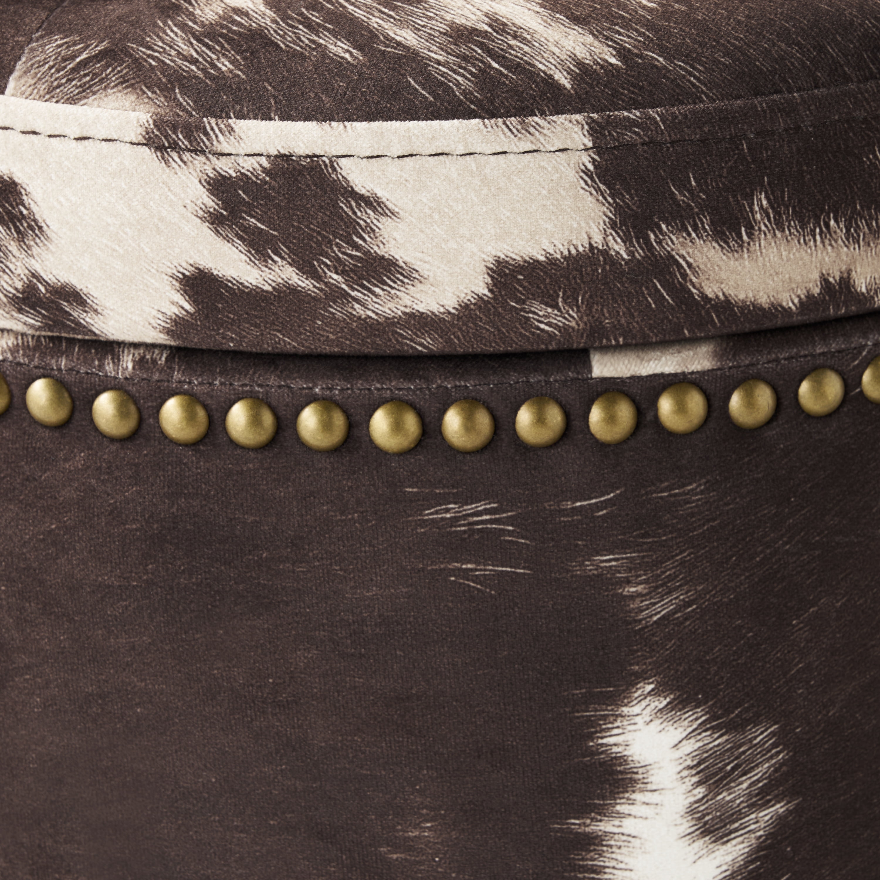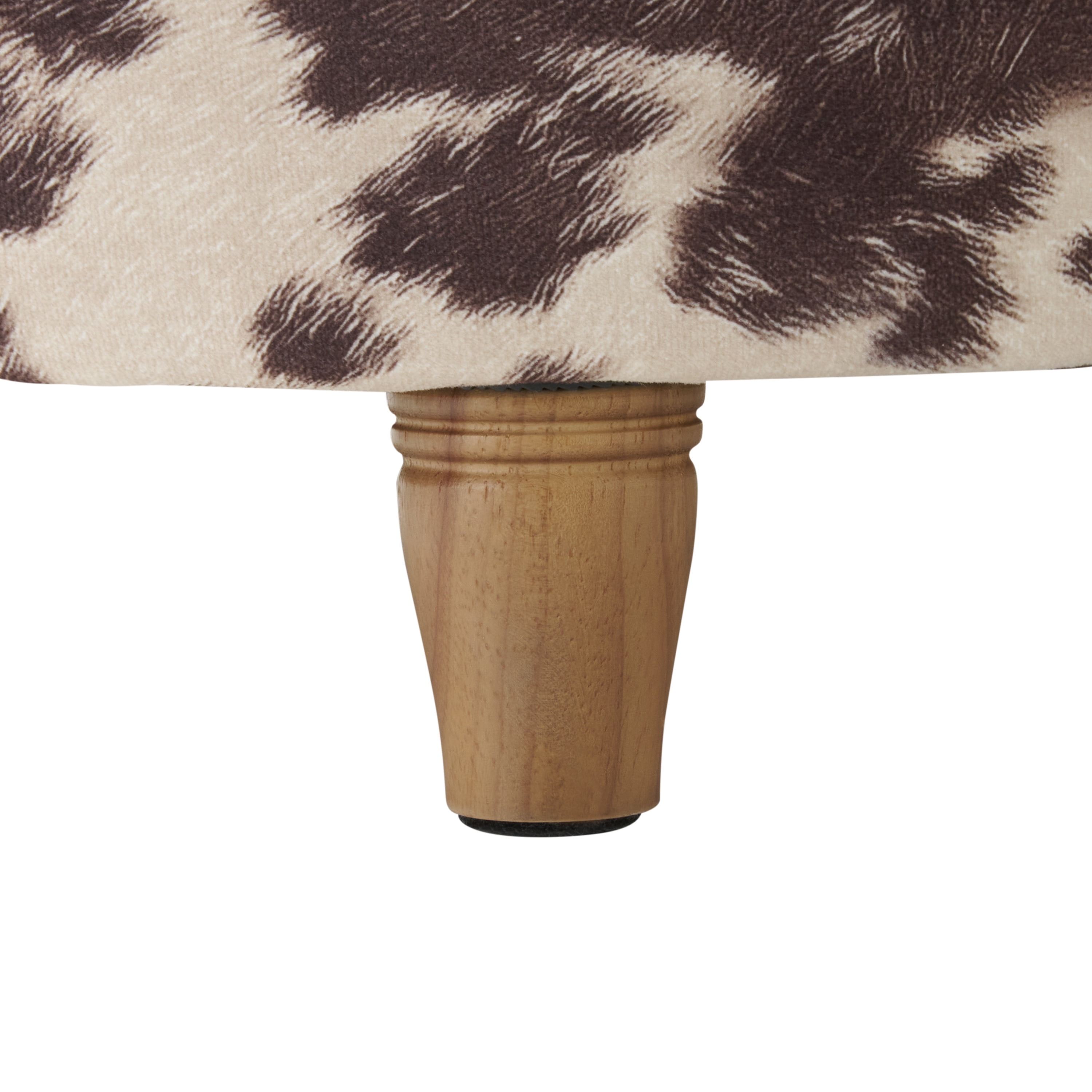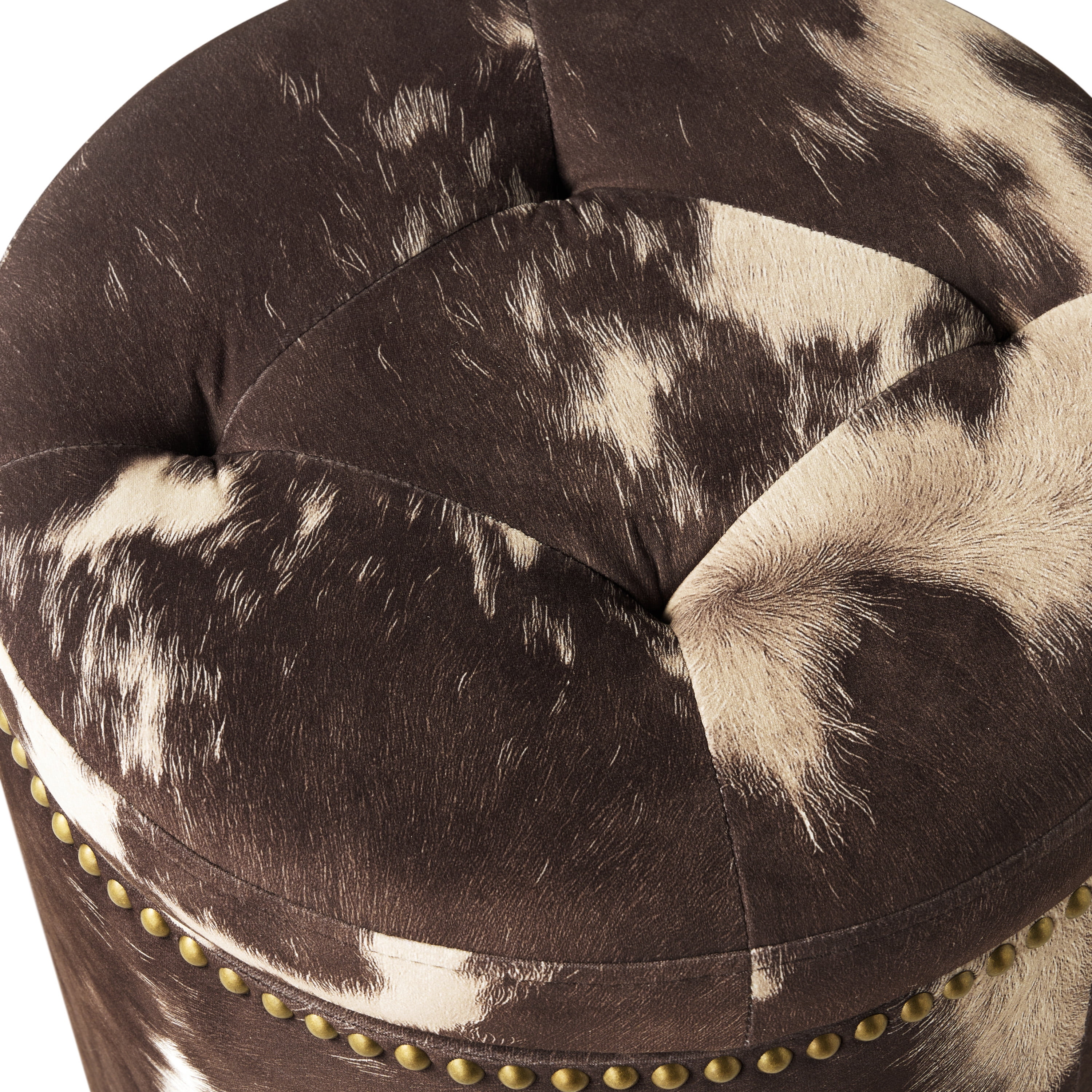 The Pioneer Woman Harper Round Storage Ottoman, Cowhide, 17.72 in Interior storage under the removable top Beautiful tufted ottoman top Heirloom Brown legs