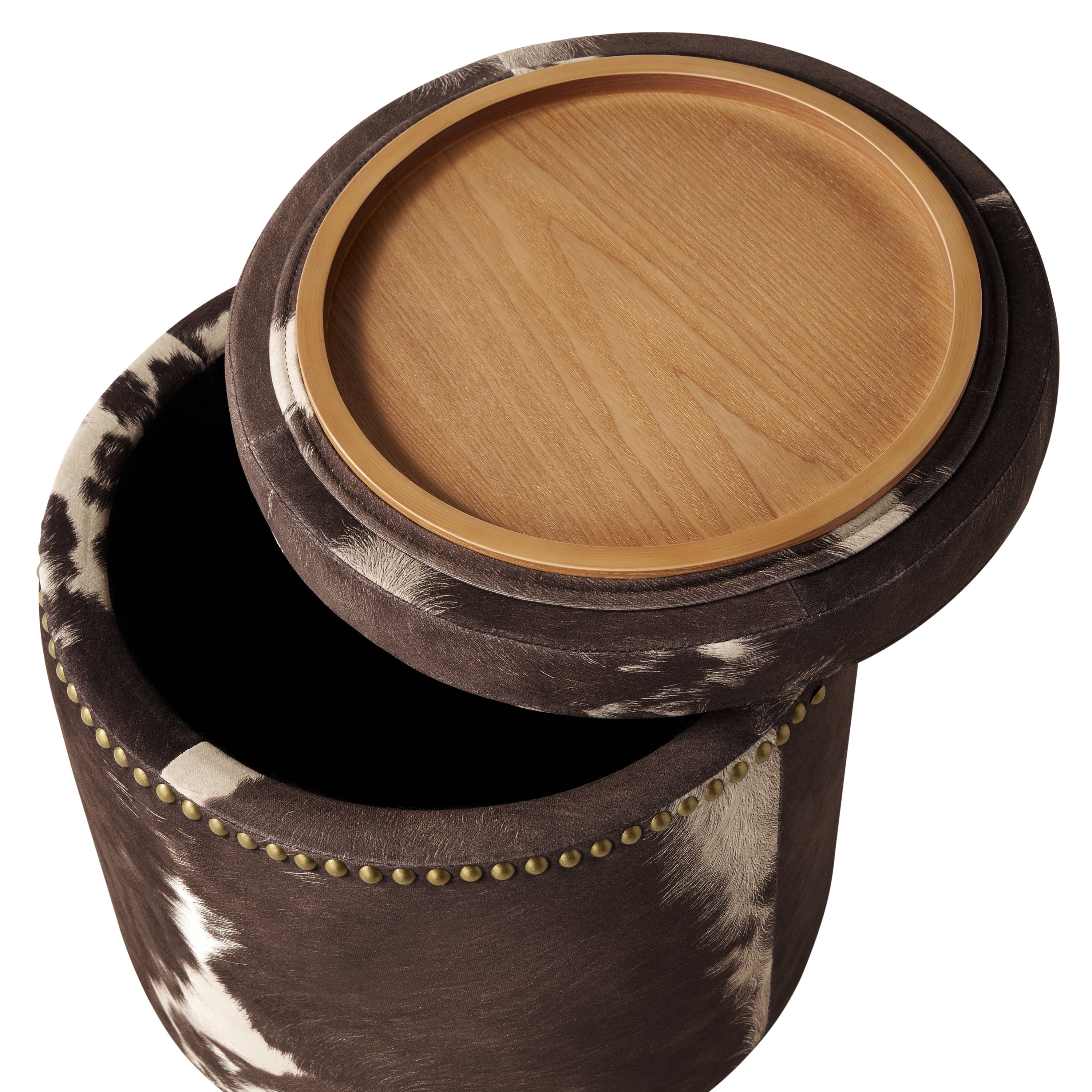 The Pioneer Woman Harper Round Storage Ottoman, Cowhide, 17.72 in