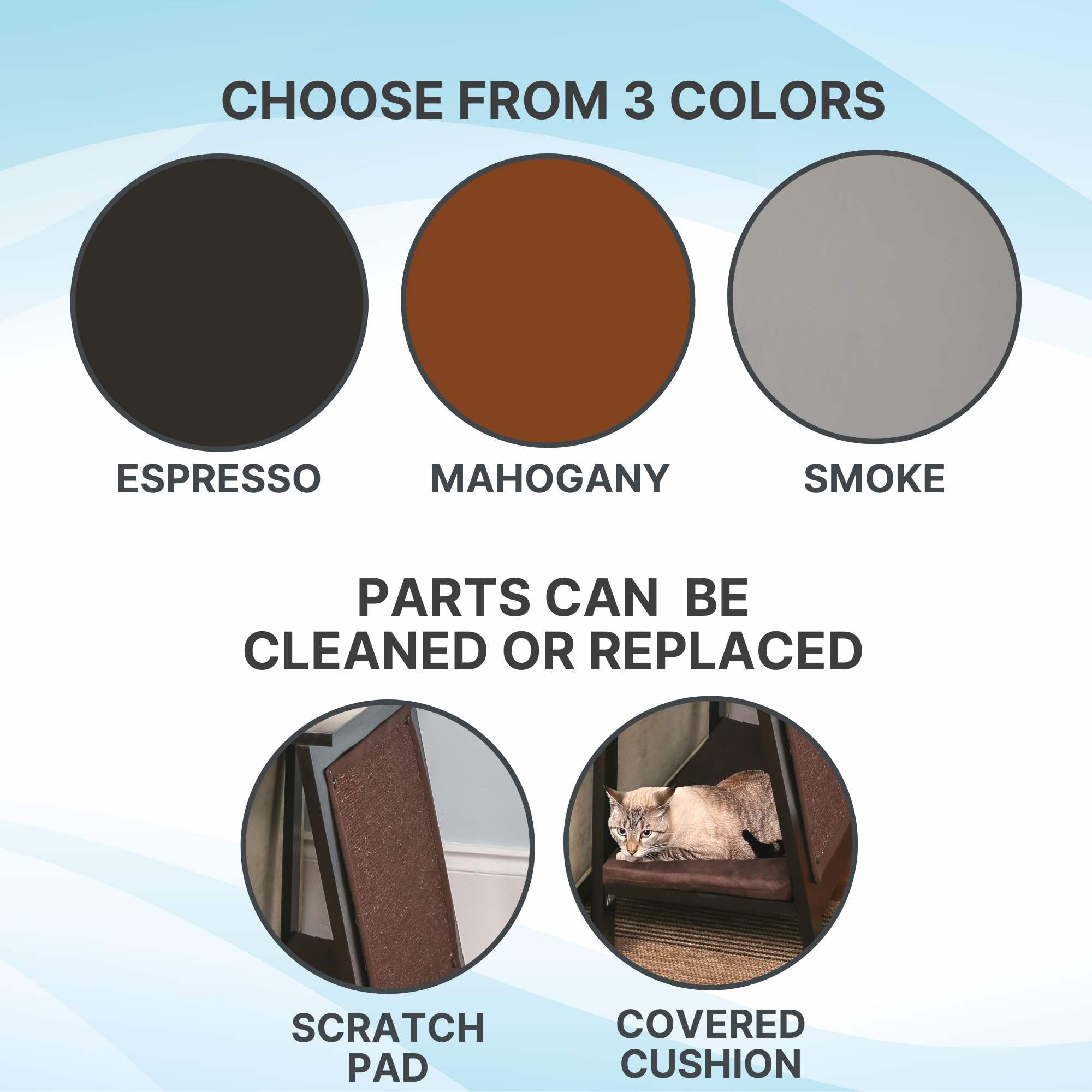 Solid wood construction; Large 20″ x 20″ sisal scratch pad; Plush 11.5″ x 23.5″ x 1″ cushion with washable cover; Ventilated base provides air flow