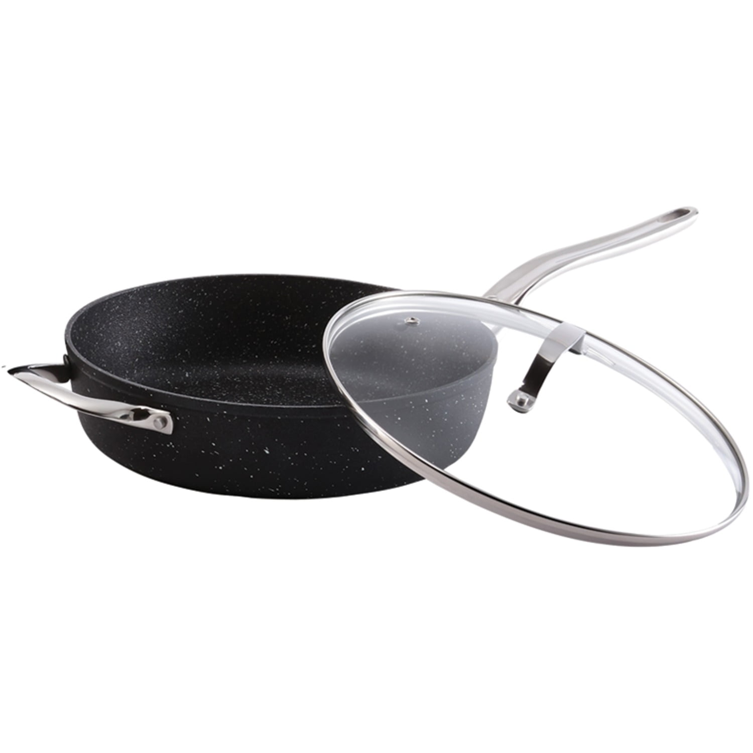 The Rock by Starfrit 11″, 4.7-Quart Deep Sauté Pan with Glass Lid & Stainless Steel Handles & Fry Pan with Stainless Steel Handle (8″)