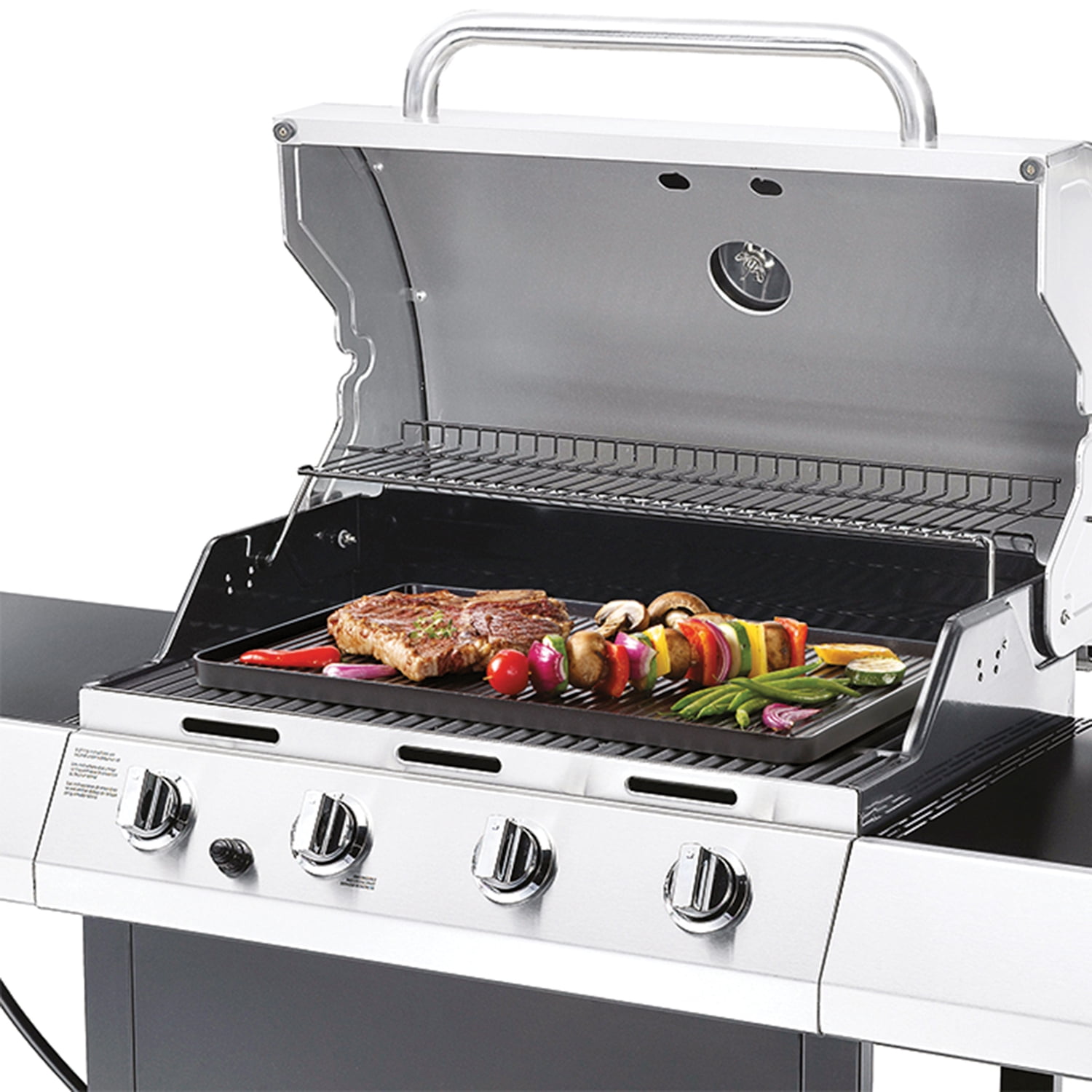 1,500 watts of power Reversible grill/griddle plate Use as appliance or on your BBQ/stovetop/oven Patented THE ROCK Rock.Tec non-stick technology Adjustable temperature controller (176° F to 446° F) Cool-touch Bakelite handles with stainless steel accent Stainless steel heating element metal base