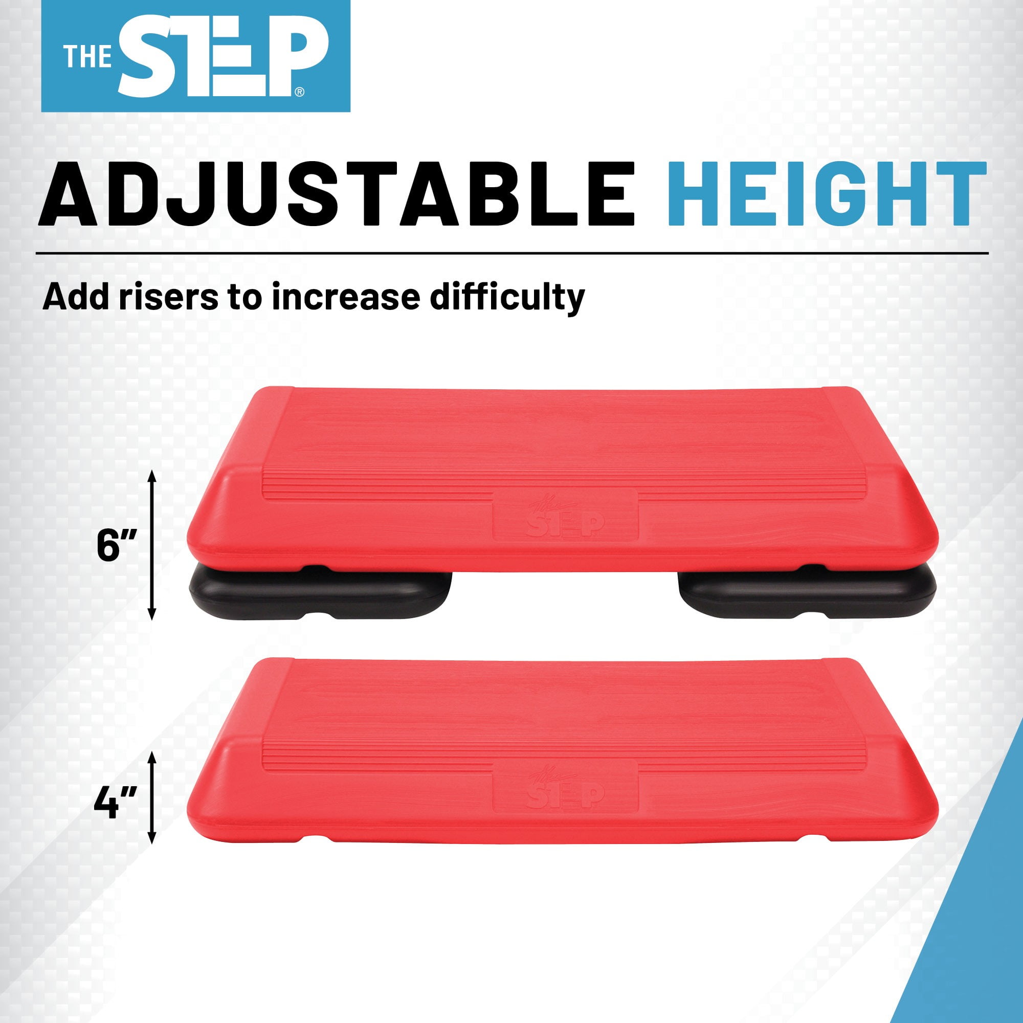 Achieve total-body fitness with The Step Freestyle Aerobic Platform – Circuit Size – a residential, compact platform from the trusted leader in step fitness. This set includes a red nonslip platform, two freestyle grey risers, and instructional streaming videos to create the foundation of any workout program. The circuit-size platform features a 25” L x 11” W x 4” H stepping surface with a grooved, nonslip surface for added safety. Burn more calories the higher you step with 4” to 6” platform height options using the 14.5” L x 9.5” W x 2” H risers. The patented freestyle risers add variety to your workout with multiple slanted positions perfect for adding intensity to push-ups, sit-ups, lunges, and more. Each riser and platform is made with four nonskid feet to prevent sliding or moving during exercise. These sturdy risers can be used on any type of indoor flooring from carpet to concrete to hardwood without leaving behind scratches. Each platform and riser also feature a resistance band notch, which safely holds the band in place. The Step is a great home-fitness tool for beginners to experts and is customizable for a variety of aerobic and strength exercises. This set is crafted from durable, recyclable high-density polyethylene that supports up to 275 pounds (or up to 400 lbs with risers). This product is backed by a 90-day manufacturer’s warranty period.