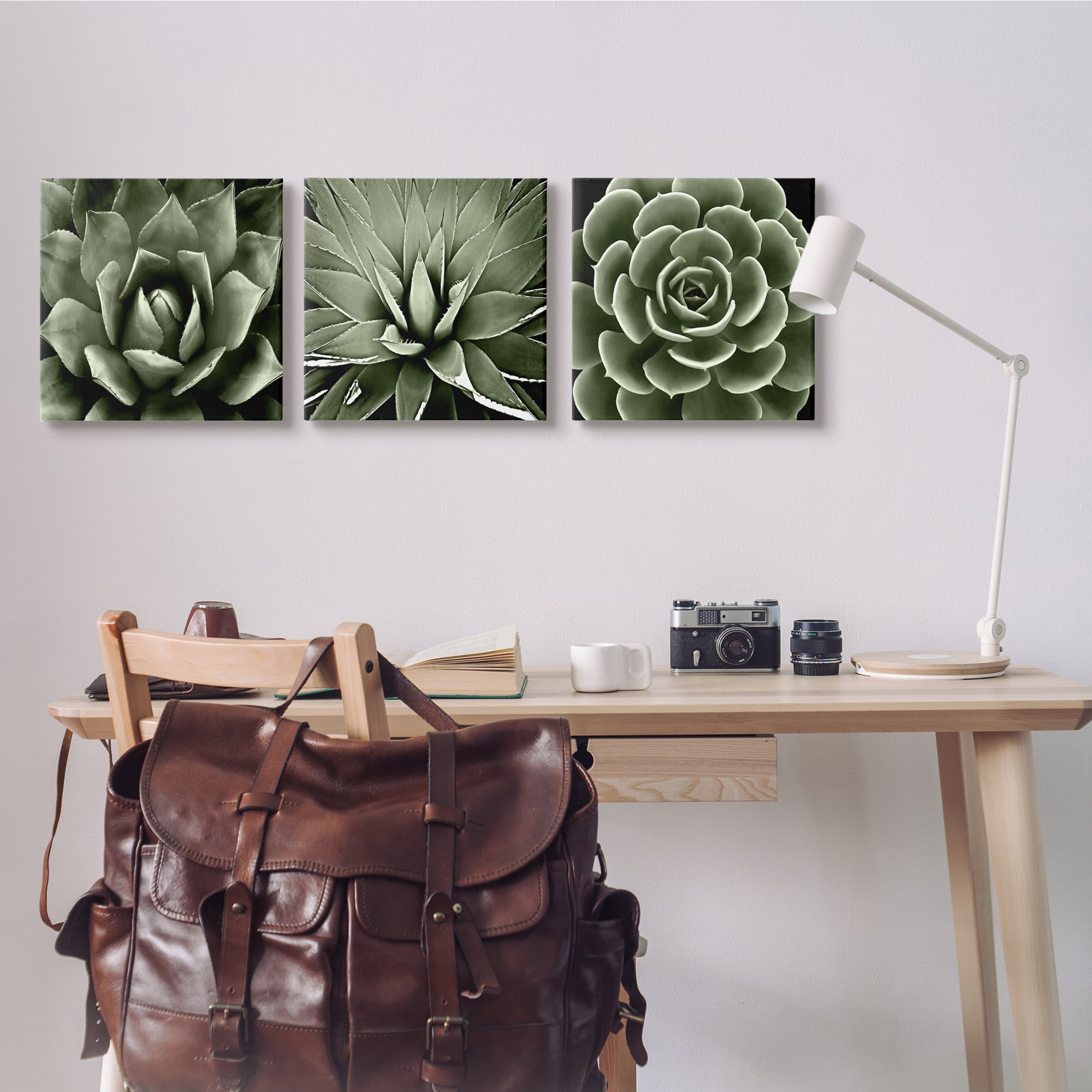 Bring a piece of the desert into your home with The Stupell Home Decor Collection 3 Piece Black and White Contrast Succulent Bloom Trio Canvas Wall Art Set, showcasing a trio of close-up succulent designs. This set of three canvas wall art pieces features rich green colors to give your home a warm, botanical-inspired look.