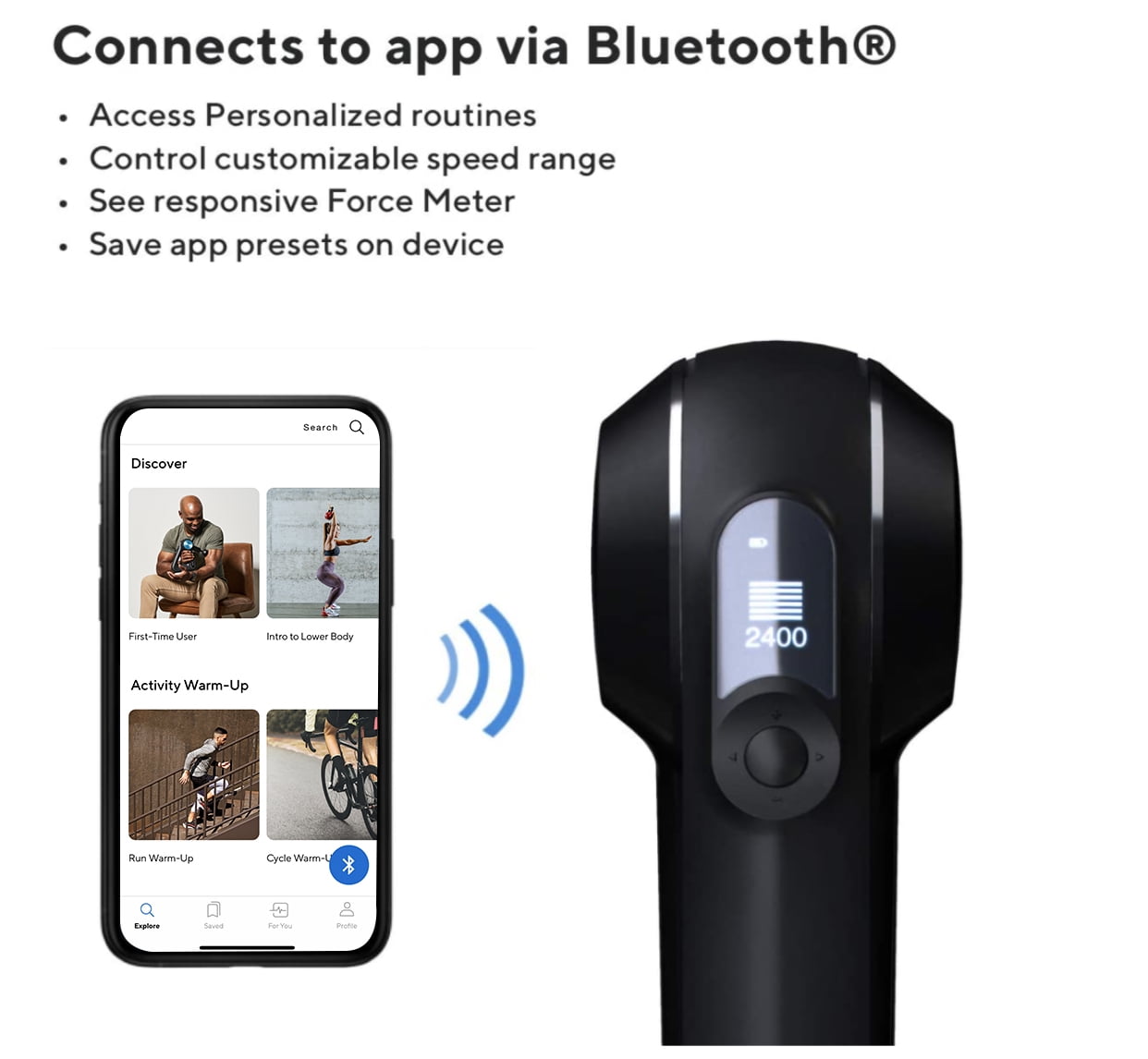 Theragun Elite Handheld Percussive Massage Device, Black Customizable Speed Range: Whether you’re treating sensitive areas or need the full power of the device, ELITE can be controlled in the app via Bluetooth to select any speed range between our scientifically calibrated 1750-2400 PPM range. It also comes with 5 built-in speeds (1750, 1900, 2100, 2200 and 2400 percussions per minute). Ergonomic Grip: Elite’s patented Theragun Triangle ergonomic handle design allows you to hold the device in a number of ways while actively reducing strain on your hands, wrists, and arms. 120-Minute Total Battery Life: Elite offers one of our biggest leaps in battery life, with an internal Lithium-ion battery with 120 minutes of continuous use. It’s also wireless charging enabled, so you can conveniently charge the device in our wireless charging stand (sold separately). QuietForce Technology: Quieter than average massage devices with the quality, design, integrity, and unparalleled treatment depth you deserve-when other devices force you to choose, Elite delivers on both. OLED Screen with Force Meter: The OLED screen gives you complete control over your wellness routine by conveniently displaying your current speed and a responsive force meter. And if you leave your phone at home or in another room, you can toggle between up to 3 preset treatments saved to your device from the Therabody app. Therabody App: The Therabody App integrates with Apple Health and Google Fit and learns from your behaviors to suggest guided routines sent to your device via Bluetooth. Say you’ve just finished an intense spin class or got off a long flight; the app might suggest a tailored leg and foot recovery massage routine. 5 Closed-Cell Foam Attachments: What touches your body matters, and hard plastic can harm the body. That’s why the Theragun Elite attachments are made with non-porous closed-cell foam that can be easily wiped clean for a more hygienic experience. Attachments include a Dampener Attachment (Impact Level 3/10), a Standard Ball (Impact Level: 5/10), a Wedge Attachment (Impact Level: 5/10), and a Thumb Attachment (Impact Level: 7/10).