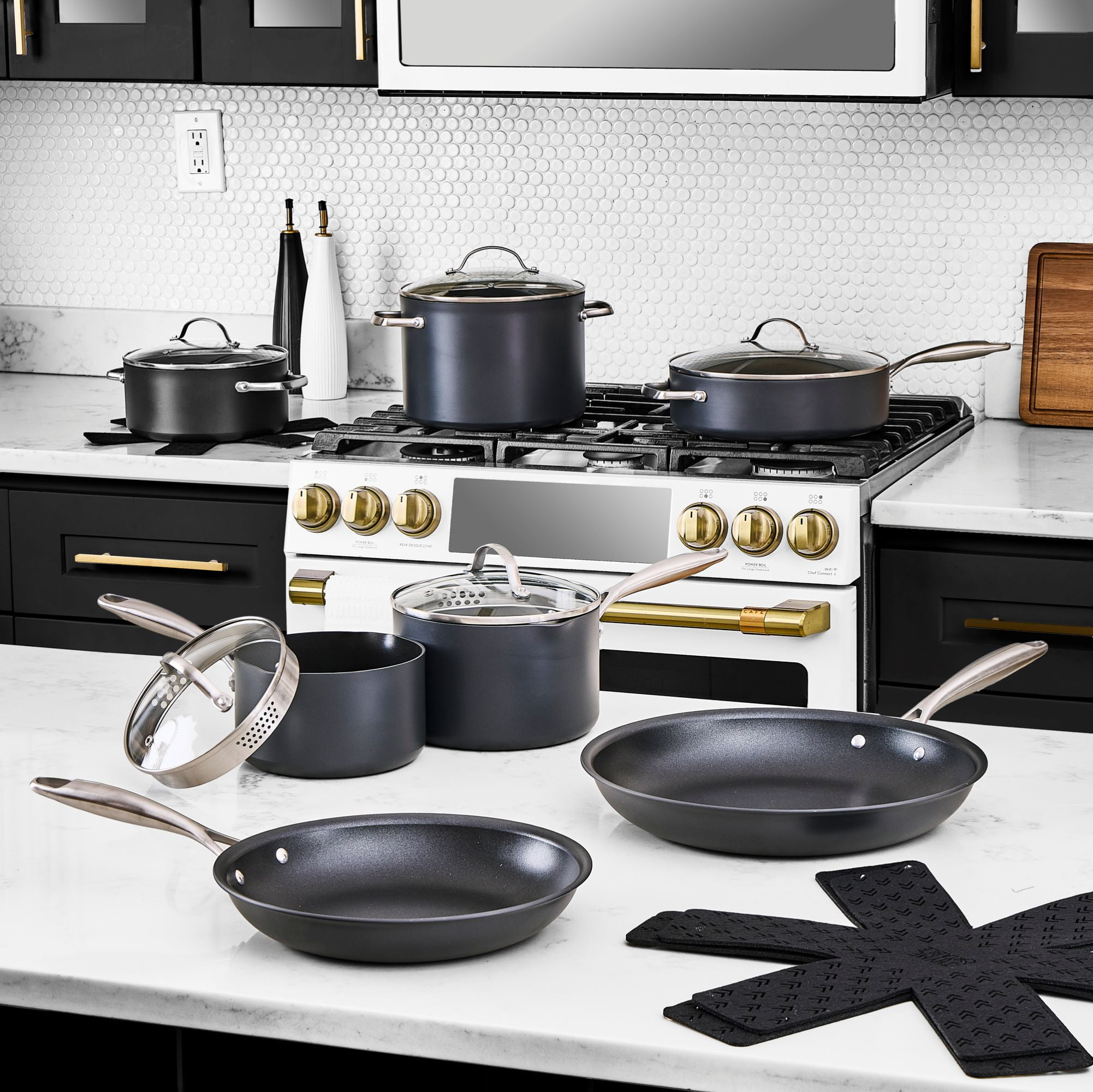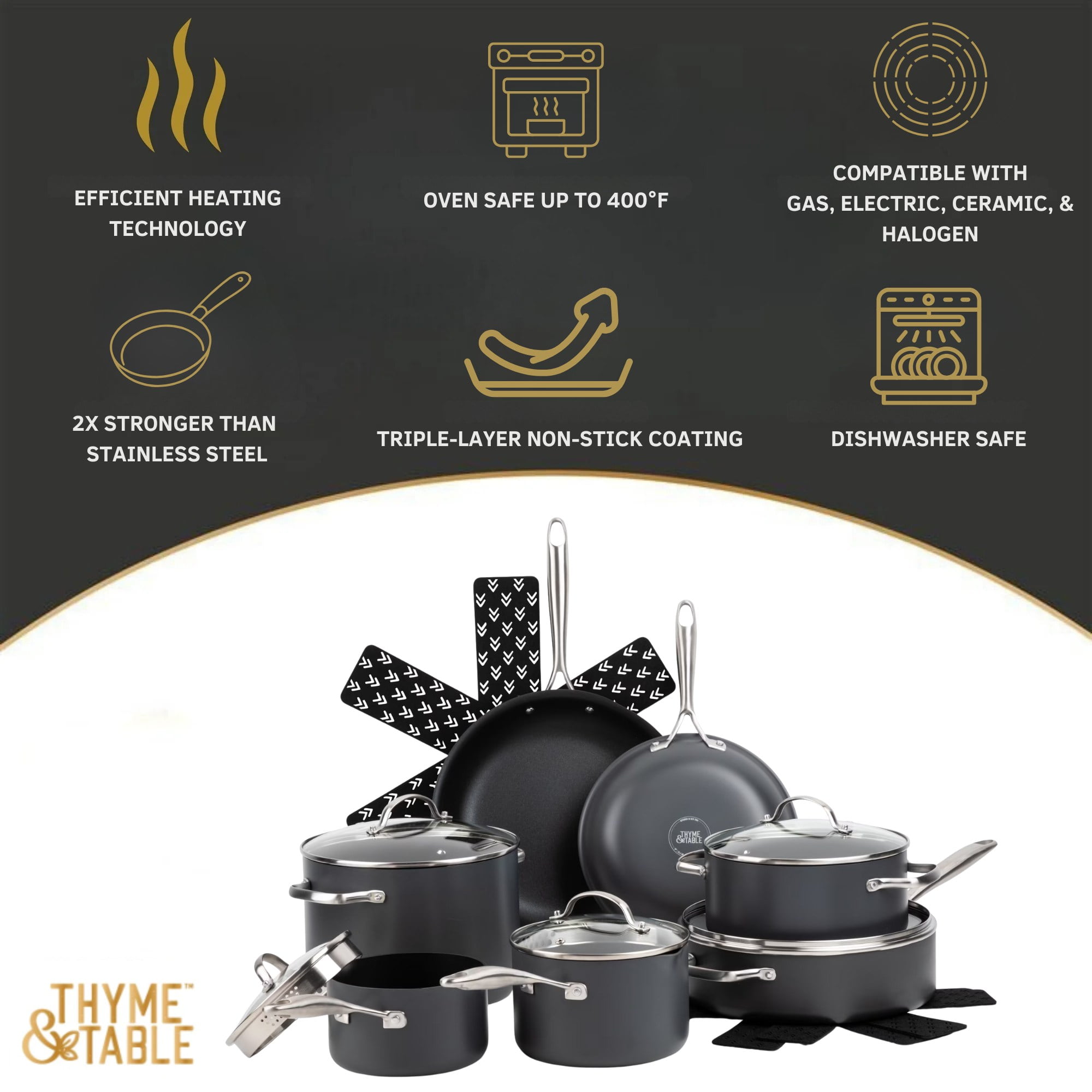 Professional Quality Cookware Set Highly Durable & Triple layer, Nonstick Suitable for all Cooktops; gas, electric, induction, ceramic, and Oven Safe up to 400°F Pot or Pan for your every need in the Kitchen Professional Cooking Experience under $150 Thyme & Table Nonstick 15-Piece Hard Anodized Cookware Set