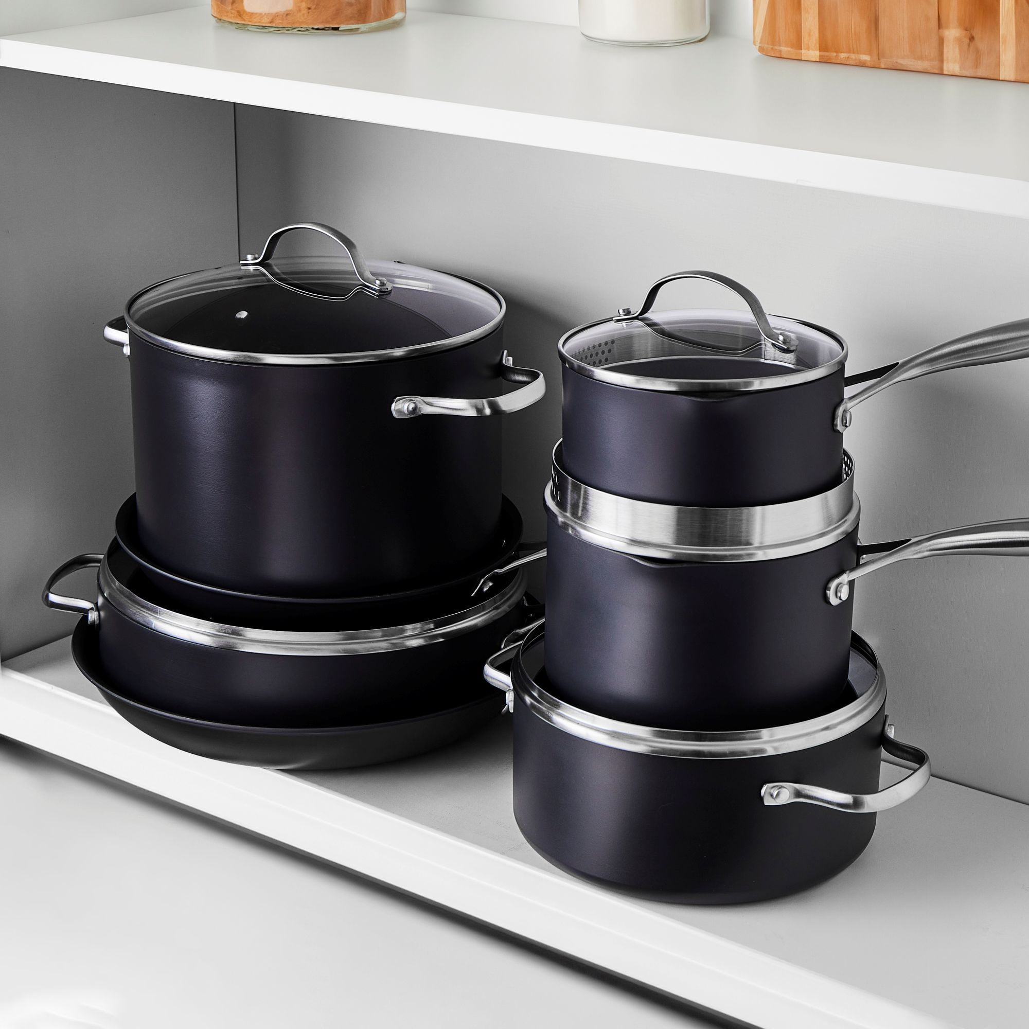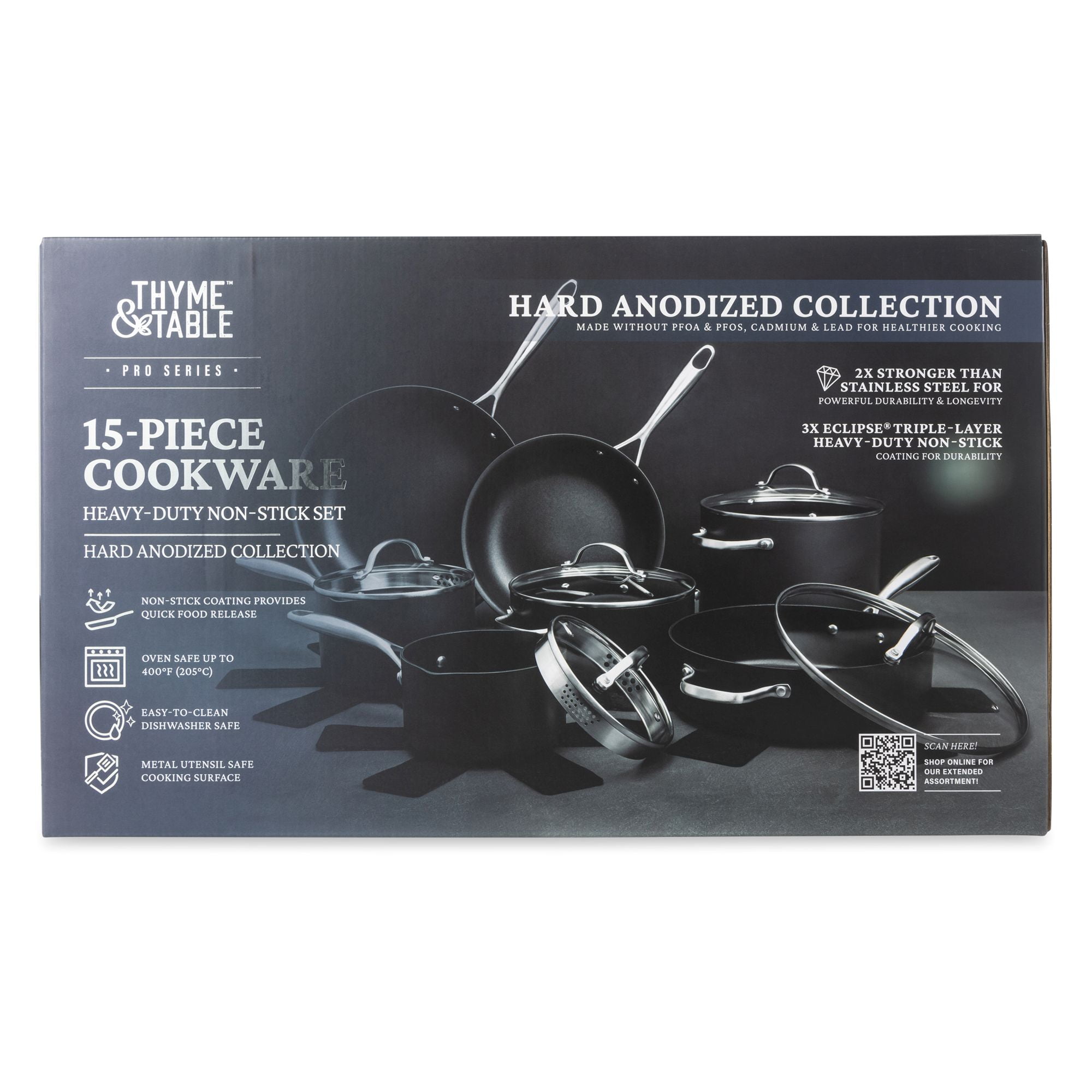 Thyme & Table 15-Piece Non-Stick Hard Anodized Cookware Set, Pots and Pans Set – Black