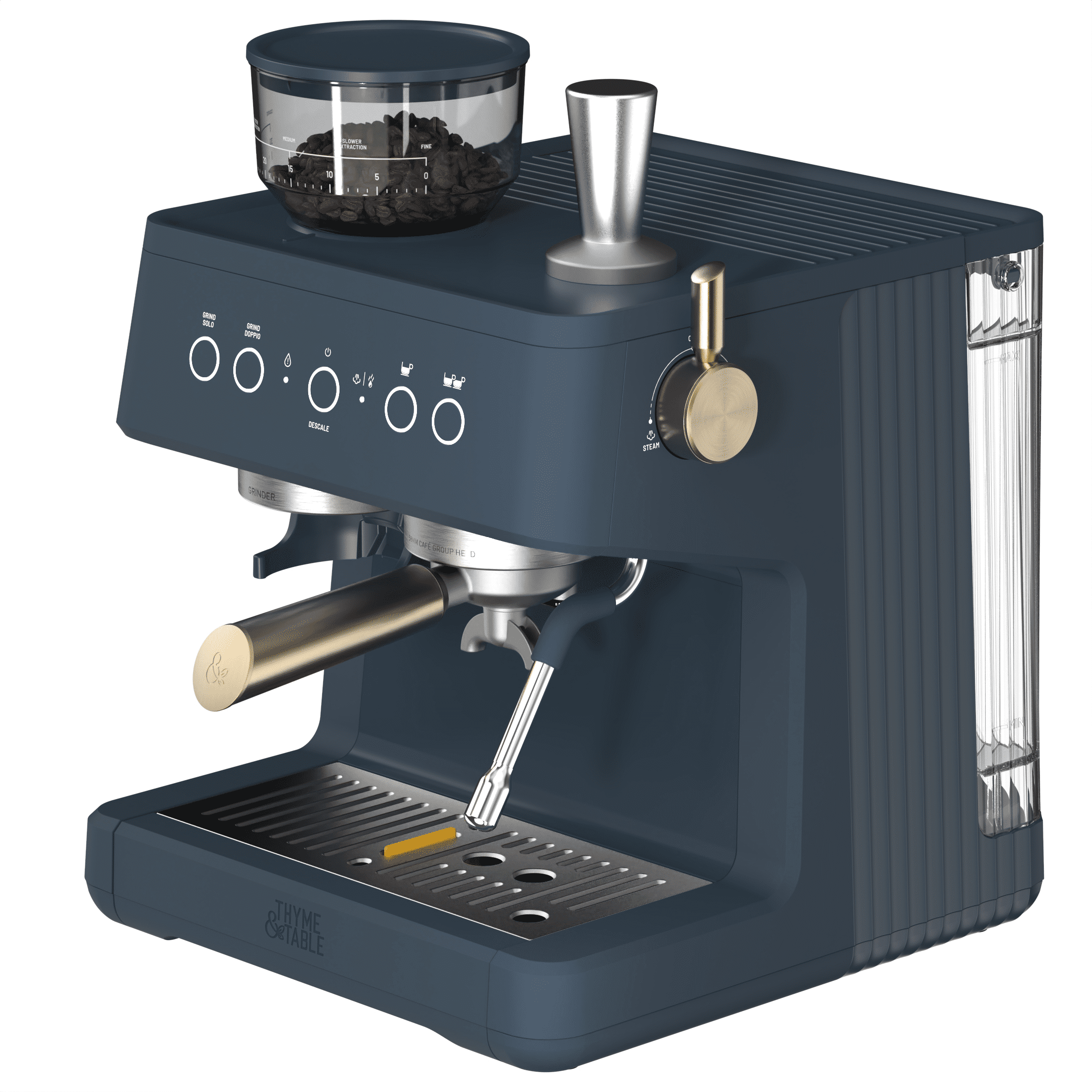 Thyme & Table Barista Grade Espresso Machine with 15-Bar Pressure, Conical Burr Grinder and Steam Wand, Atlantic Blue