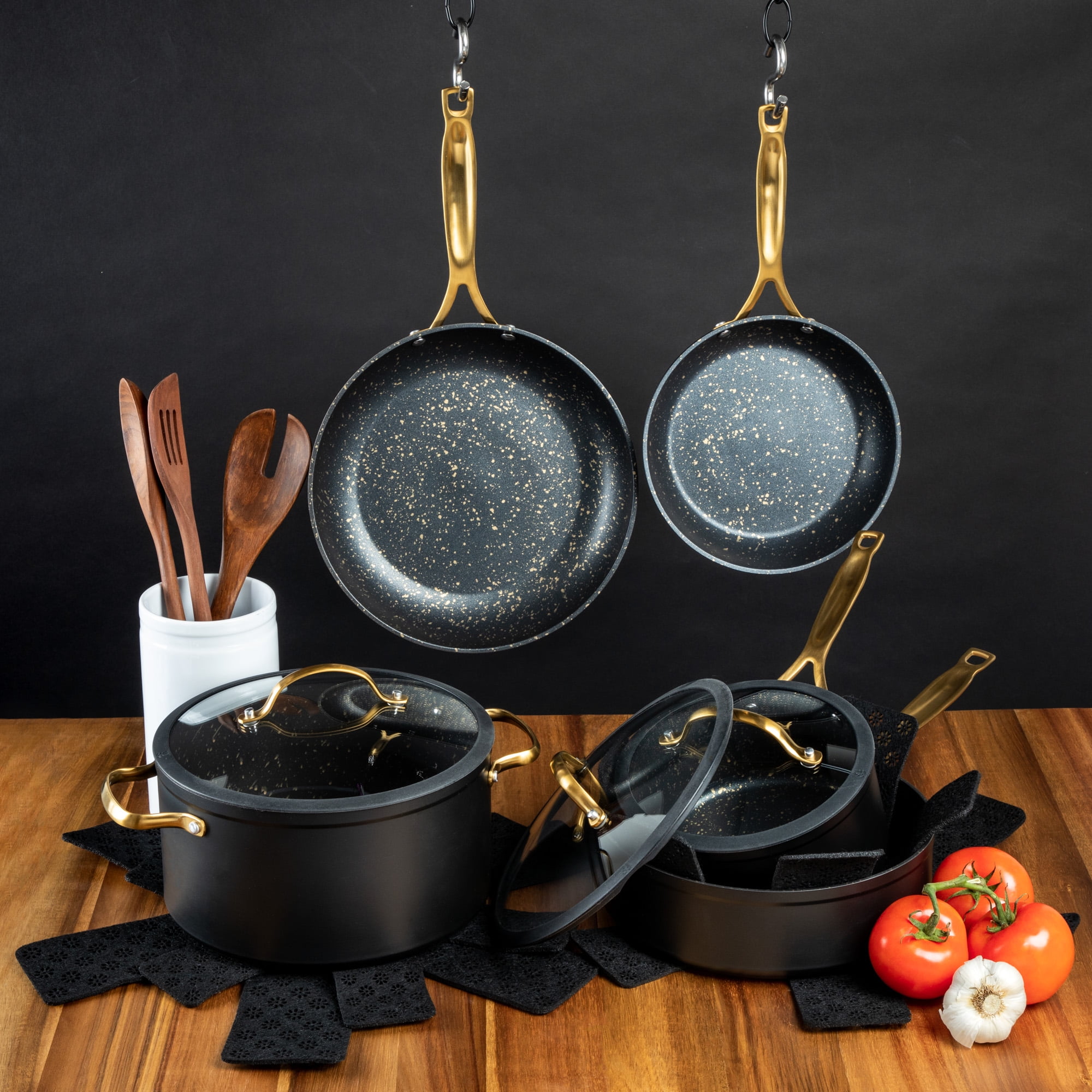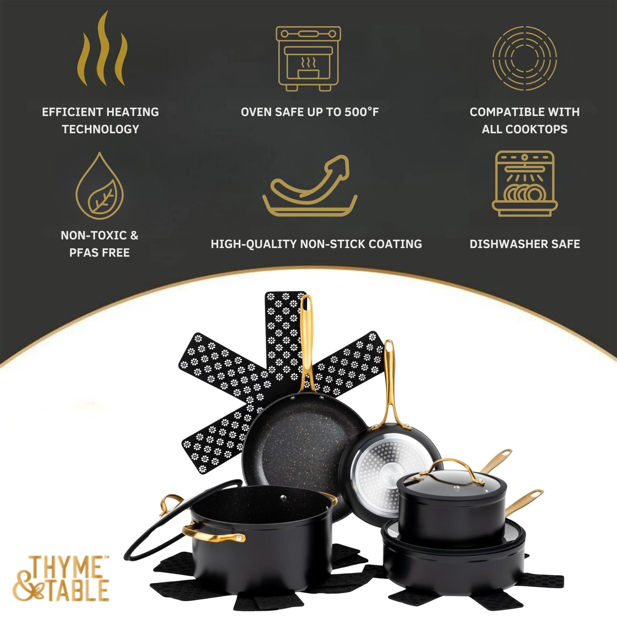 Thyme & Table 12-Piece Non-Stick Cookware Set in Black and Gold, Signature Collection