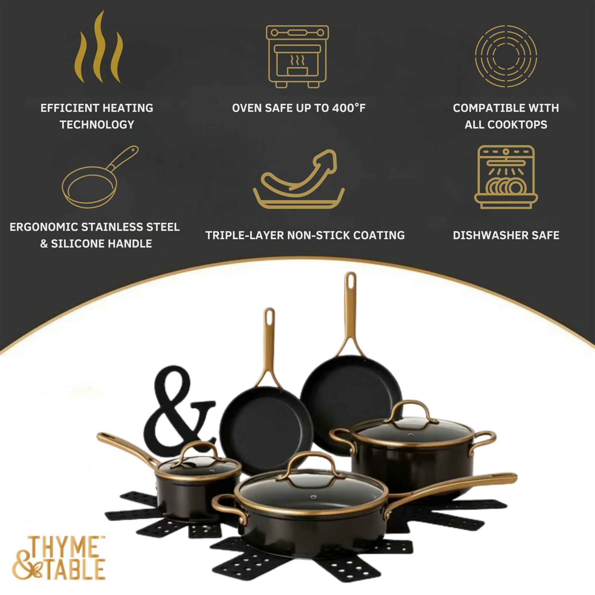 Thyme & Table Supreme 12-Piece Non-Stick Cookware Set, Pots and Pans Set- Bronze