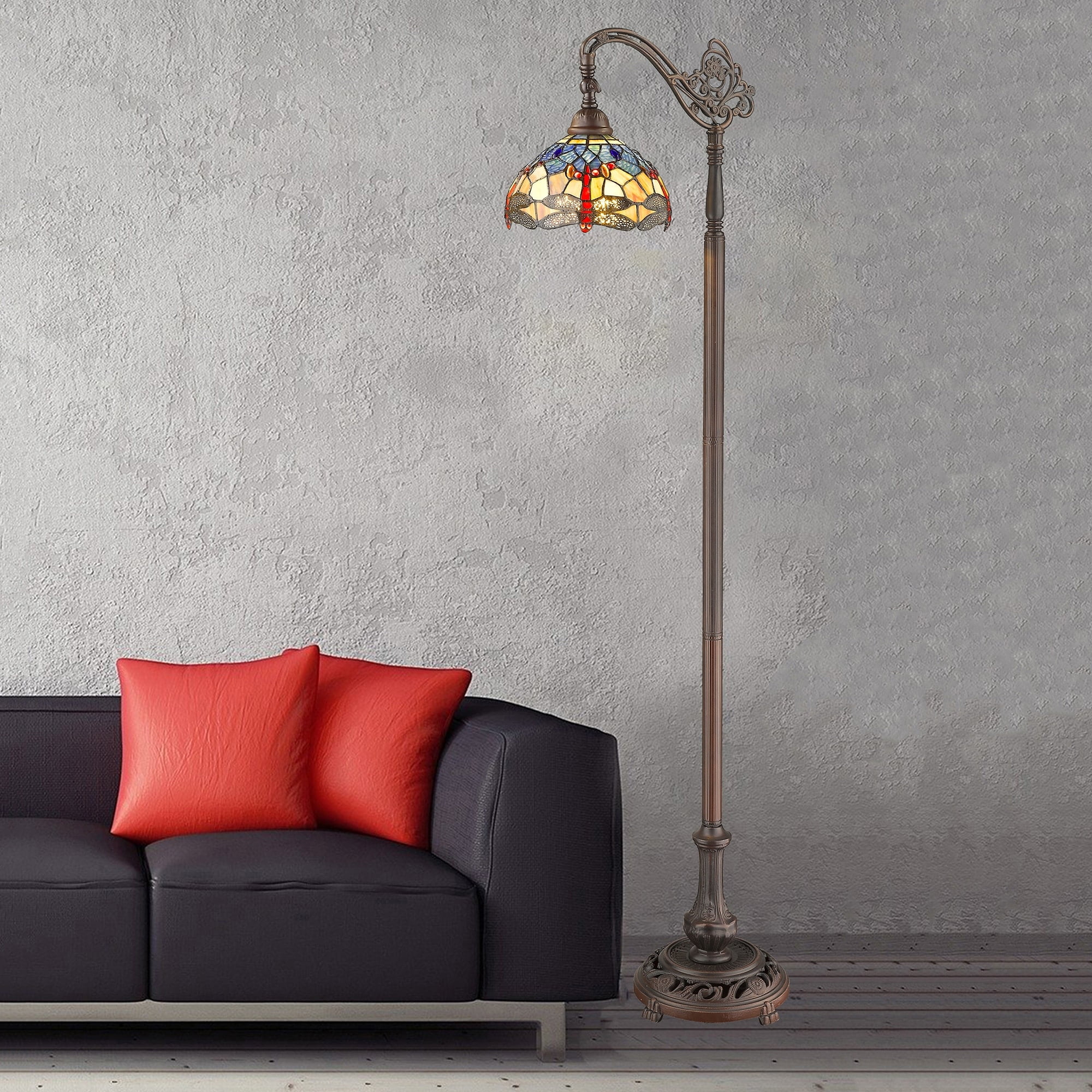 Combining decor with function, the dragonfly reading lamp brightens your home decor and reading space. This beautiful multidirectional reading lamp contains hand-cut pieces of stained glass, giving off vivid colors. The dragonfly reading lamp has a floor switch, making it easy and convenient to turn on and off without fumbling around for a switch. Tiffany-style Dragonfly reading lamp is sure to brighten your home decor Gorgeous lamp contains 190 cuts of glass with 16 cabochons Elegant lighting is sure to dress up any room in your home or office Enjoy the vivid colors of blue, green and more Base is a classic base Cord is 14 inches long Lamp requires one (1) 60-watt light bulb (not included) Attention California residents: This product contains lead, a chemical known to the state of California to cause cancer and birth defects or other reproductive harm. Note: Shade colors will appear darker and less vibrant when not illuminated. The handcrafted nature of this product creates variations in color, size and design. If buying two of the same item, slight differences should be expected.