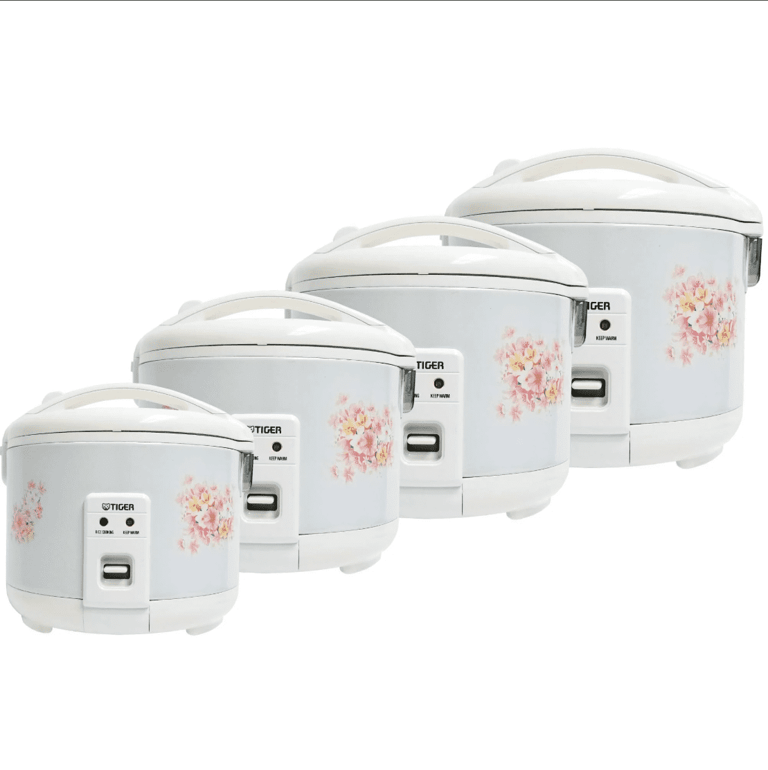 Electronic control heating makes better rice Water level marks on inner surface of rice cooking bowl insure the correct amount of water is added Indicator lights show whether cooking or warming mode is in use Non-stick PTFE coated rice cooking and steamer pans make clean-up easy Built in carrying handle for safe and easy moving Retractable power cord reduces counter top clutter and stays attached for storage Product Type: Rice Cooker Finish: White Automatic Shutoff: Yes Locking: Yes Non-Stick: Yes Portable: Yes Removable Cooking Pot/Insert: Yes Warming Setting: Yes Operation Type: Manual Dishwasher Safe: No New Generic Specifications Special keep-warm heating elements keep rice warm up to 12 hours without drying or burning the rice Dimensions Size 10 Cup Overall Width – Side to Side: 11.5″ Overall Depth – Front to Back: 11.5″ Overall Product Weight: 10 lbs Size 3 Cup Overall Height – Top to Bottom: 9.75″ Overall Product Weight: 5.4 lbs Size 4 Cup Overall Height – Top to Bottom: 10.5″ Overall Width – Side to Side: 9.75″ Overall Depth – Front to Back: 9.75″ Overall Product Weight: 7 lbs Size 5.5 Cup Overall Height – Top to Bottom: 11.25″ Overall Width – Side to Side: 10.75″ Overall Depth – Front to Back: 10.75″ Overall Product Weight: 8 lbs Size 8 Cup Overall Height – Top to Bottom: 11.5″ Overall Width – Side to Side: 11.75″ Overall Depth – Front to Back: 11.75″