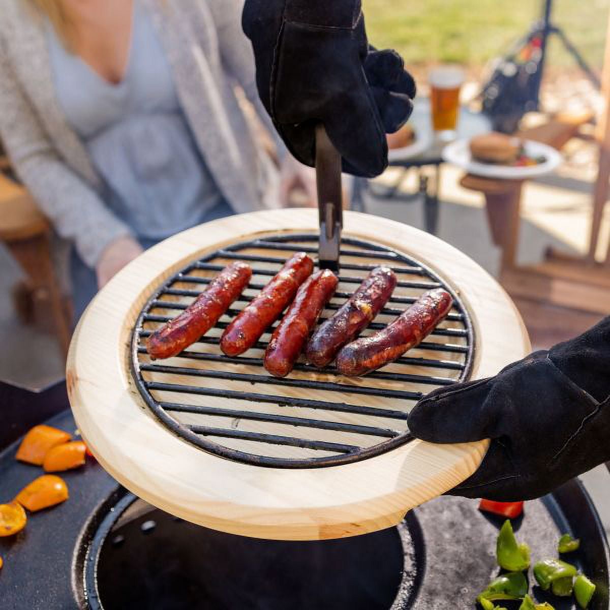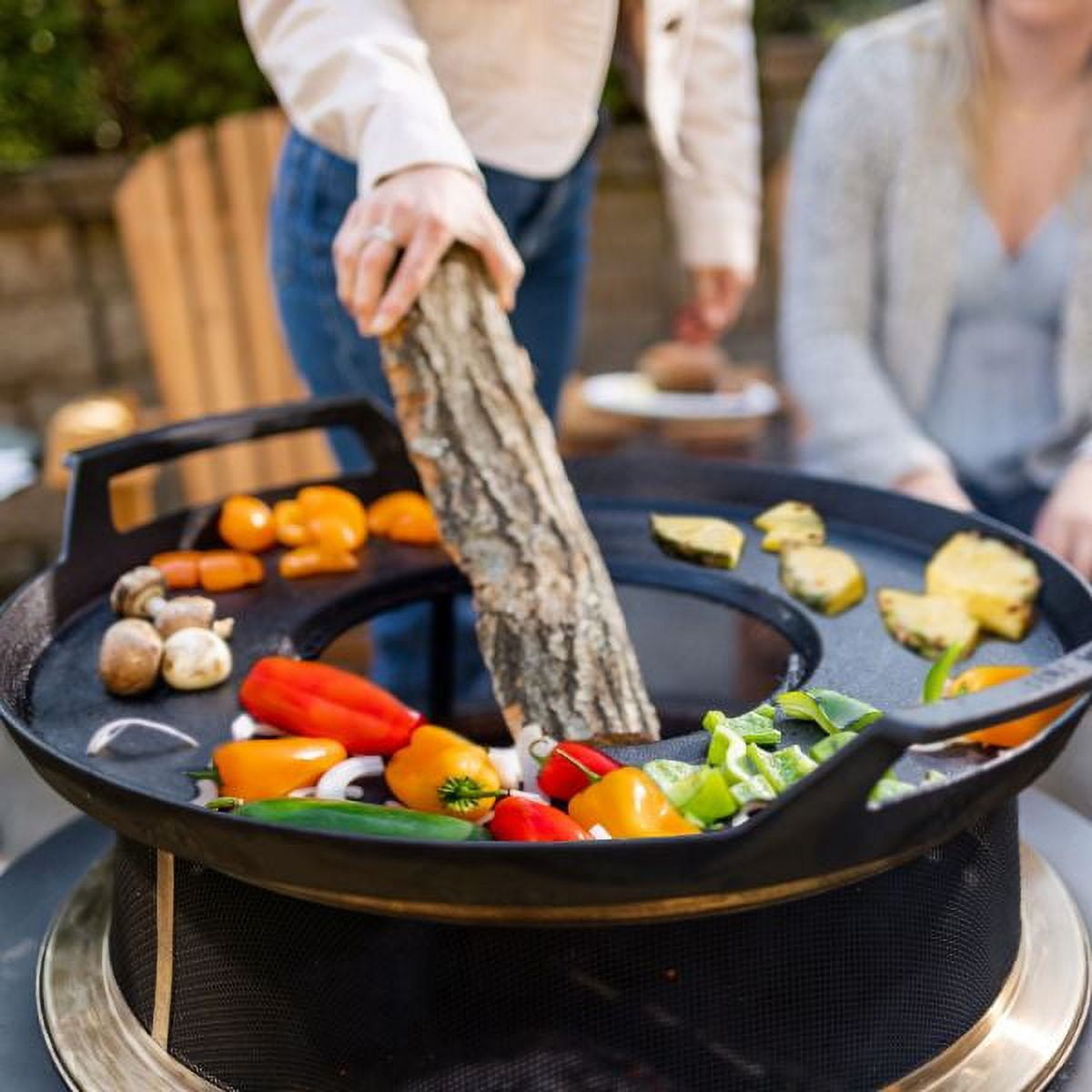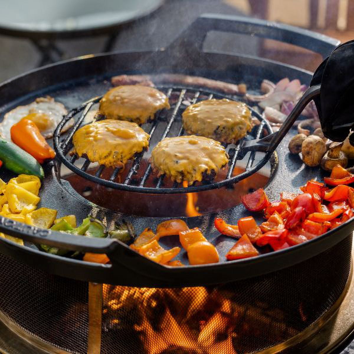 Pre-seasoned and ready for cooking right out of the box Includes outer griddle, inner griddle with a removeable handle, grill grate, wooden trivet, and leather gloves Enjoy a flexible cooking surface to grill a variety of foods Compatible with most 16″-21″ smokeless fire pits Cast iron material allows for high heat tolerance and retention when cooking