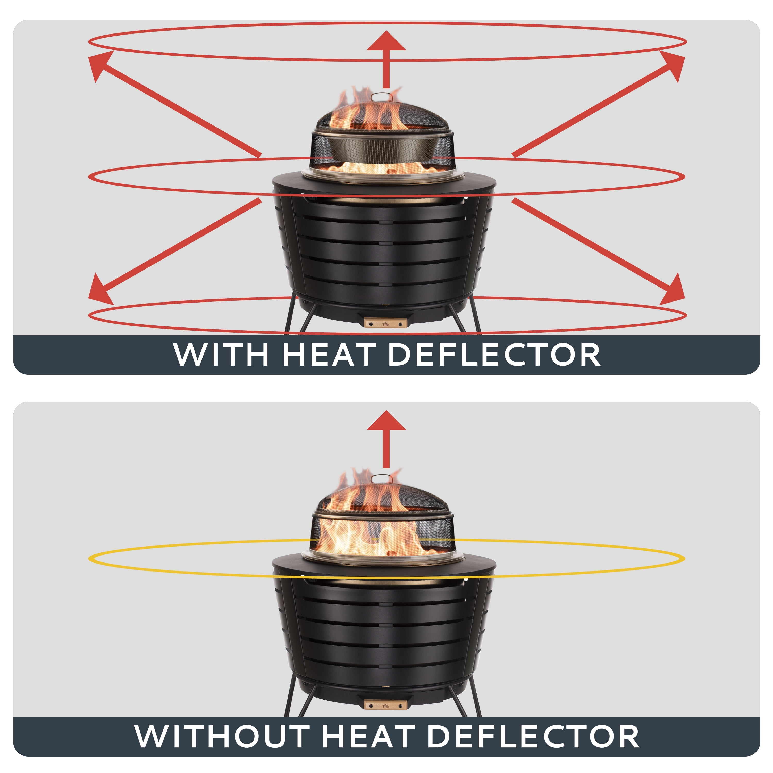 Efficient Heat Distribution – Radiates warmth exactly where you need it while maintaining a virtually smokeless experience. Durable Stainless Steel Construction – Built to last, the high-quality stainless steel heat deflector ensures long-term durability and reliable performance. Easy, Tool-Free Setup – Simply place the screen on the fire pit’s top ring and insert the heat deflector—no tools required for quick and effortless installation. Convenient Fire Management – Easily stoke and fuel your fire without the hassle of removing accessories. Compatible with TIKI Patio Fire Pit – Specifically designed to enhance and work seamlessly with the round TIKI Patio Fire Pit.