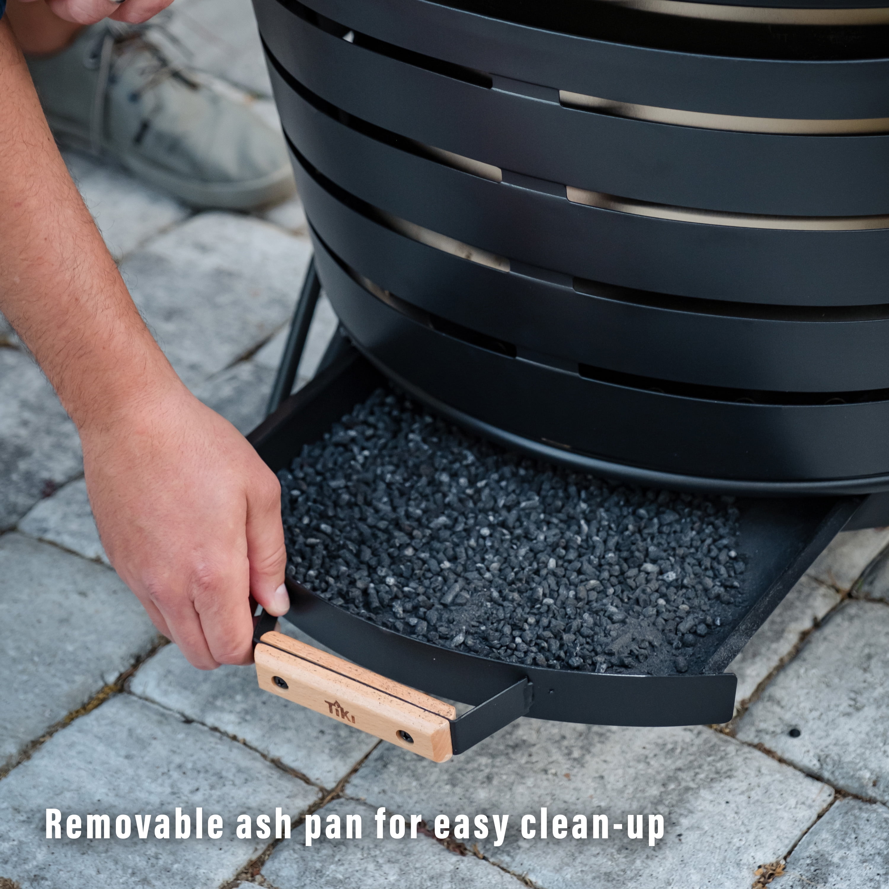 Smokeless, High Performance – Patented airflow system provides a cleaner, low-smoke burn for a better outdoor fire experience. Durable Stainless Steel Construction – Built with 16-gauge stainless steel and a black powder-coated finish for long-lasting outdoor use. Spacious & Powerful – 25-inch fire pit with a 4-foot heat radius, perfect for warming up any backyard, patio, or outdoor space. Easy to Clean & Maintain – The removable ash pan allows for quick, mess-free cleanup. Versatile Fuel Compatibility – Works with TIKI® Wood Packs for an instant, controlled flame or traditional firewood logs for a classic firepit experience. Portable & Functional – Weighing just 45 pounds, it’s easy to move when cooled, making it great for camping, patios, and backyard gatherings. Complete Set & Customizable Accessories – Includes a weather-resistant fire pit cover and sturdy stand, with optional accessories like a tabletop cover, heat deflector insert, spark screen, and fire pit poker (sold separately).