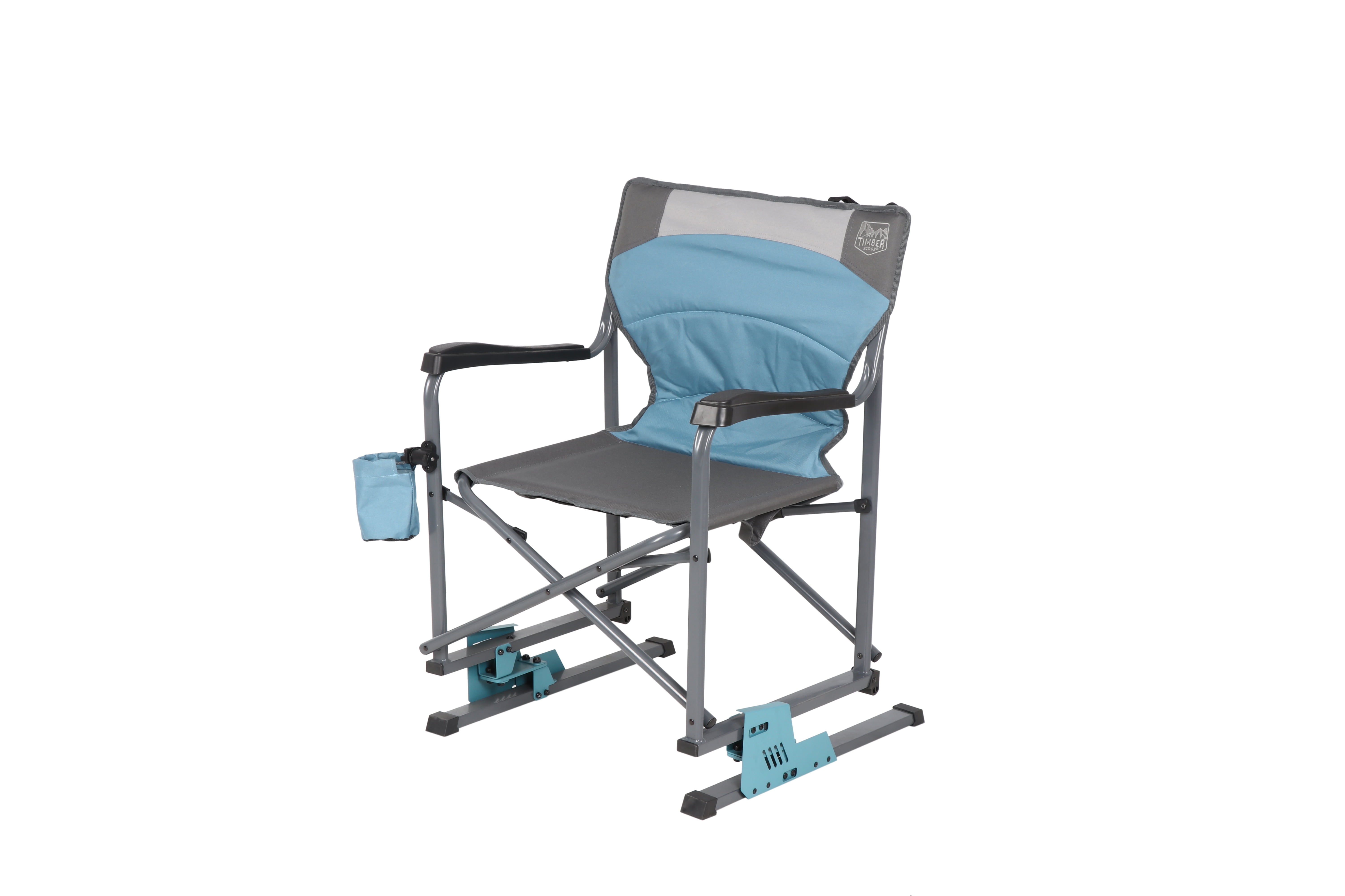 Bounce your way into relaxation with the Timber Ridge® Mulberry Bounce Chair. Unlike standard static camping chairs, this chair features bounce motion technology for an enhanced sitting experience. It is also designed with padded armrests for even more comfort while you relax. And thanks to the steel tube frame with powder coating, this chair was engineered for durability. This chair also has a 300-pound weight capacity and is made with strong and durable 600D fabric so you can count on this chair to last season after season. When it is time to go, the chair also folds down to a compact size for ideal transportation and storage. Are you ready for an upgrade to your standard outdoor seating: Whether you are camping, hiking, or just hanging out in the backyard, you can sit in comfort with the Timber Ridge® Mulberry Bounce Chair. Blue and gray, adult use.