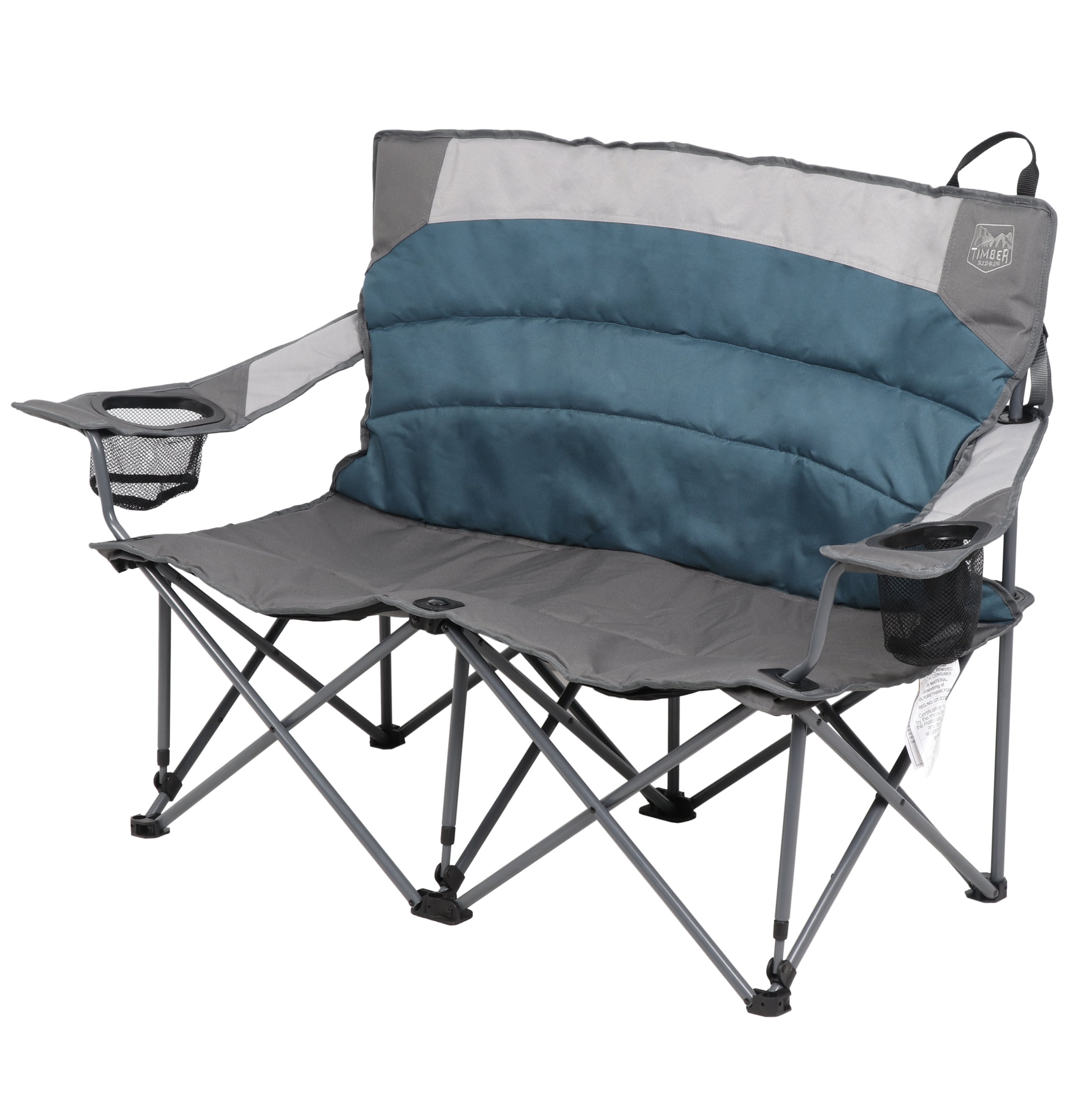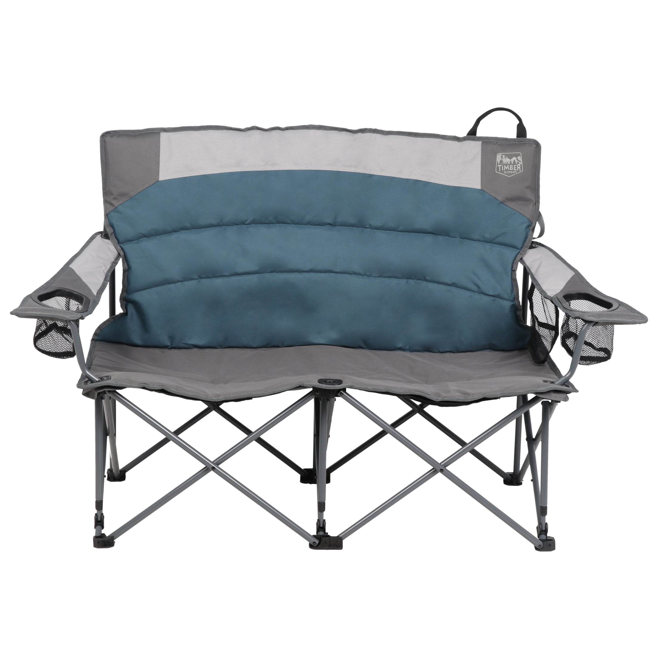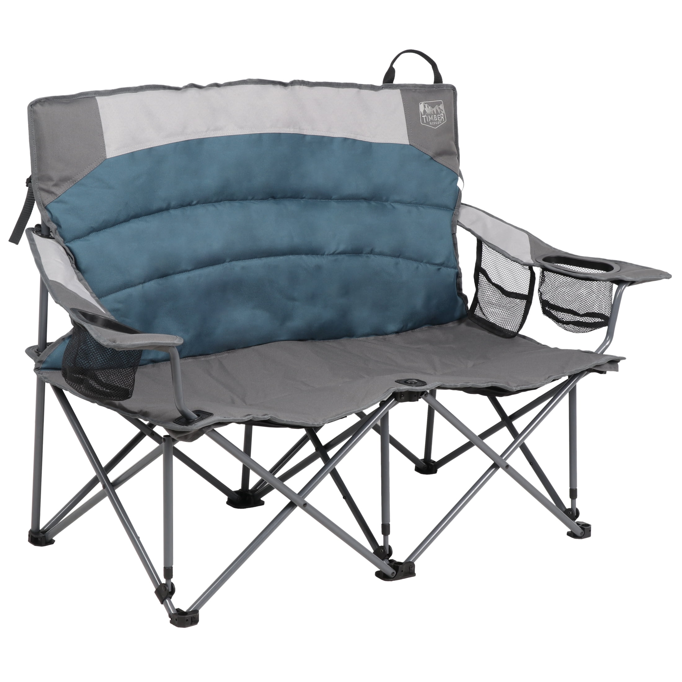 Curl up by the fire with your special someone in the Timber Ridge® Spruce Duo Loveseat. This comfy, padded loveseat is perfectly sized for two allowing you and a loved one to curl up in. It is designed with a lower seat design for a more comfortable and improved sitting experience, as well as triple reinforced corners to prevent tearing. And with the powder-coated steel frame and 600D polyester fabric, this chair is built for durability and has a 250-pound weight capacity for each seat. It also features a mesh phone pocket under the seat and built-in mesh cup holders to keep beverages nearby at all times. Ready to make the most of your next outdoor adventure? Whether you are camping, tailgating, or hanging out in the backyard, grab the Timber Ridge® Spruce Duo Loveseat and sit in comfort with your loved one. Adult use, blue.