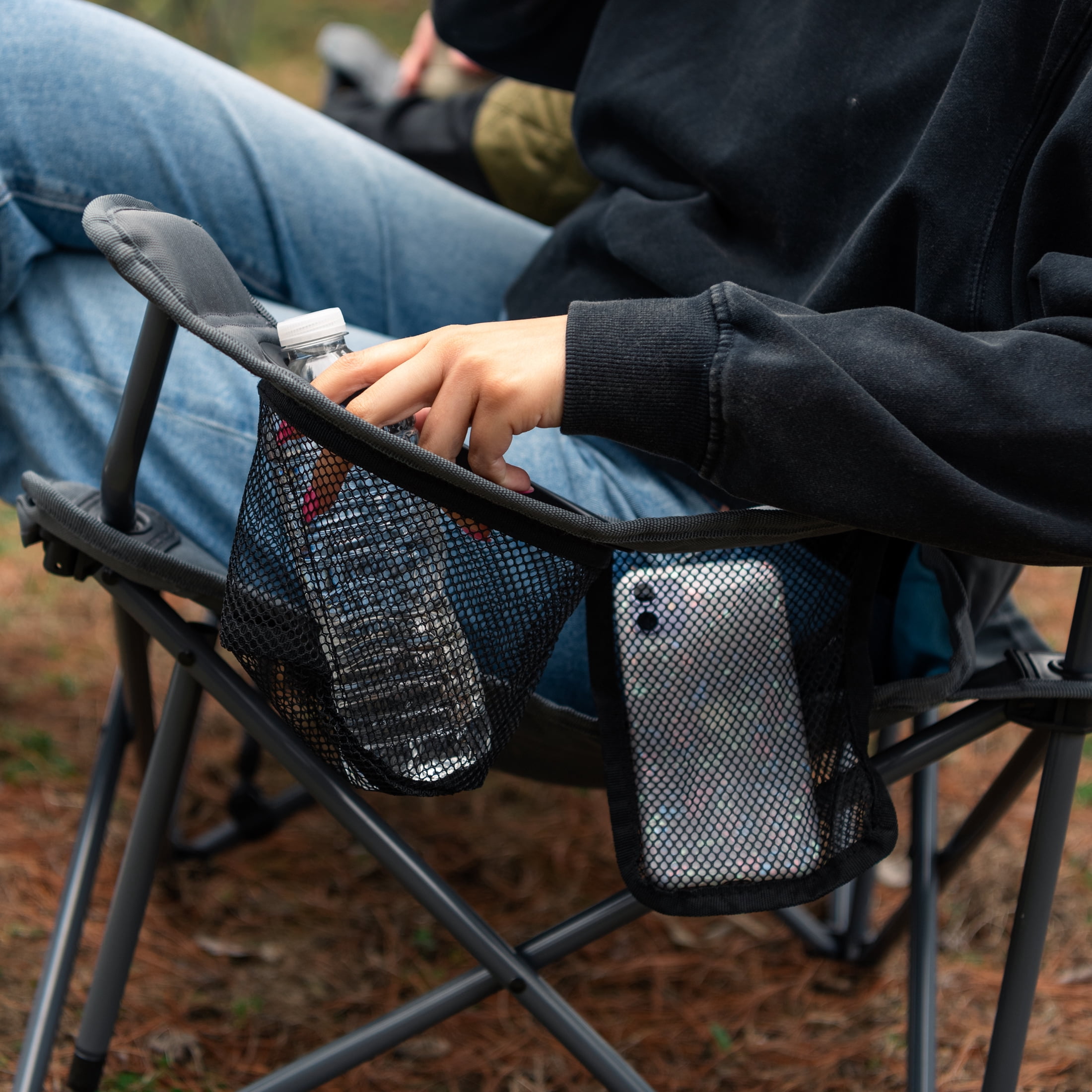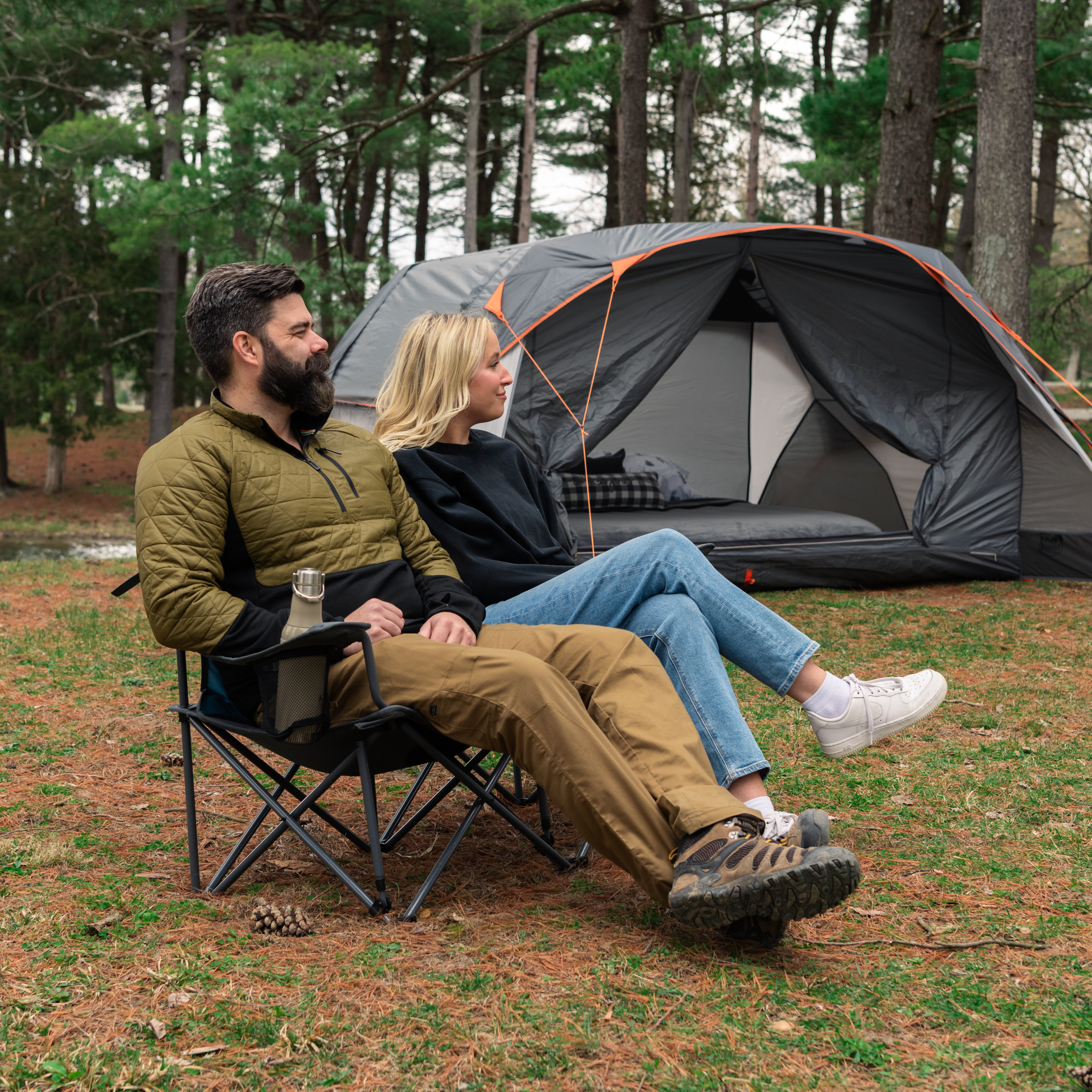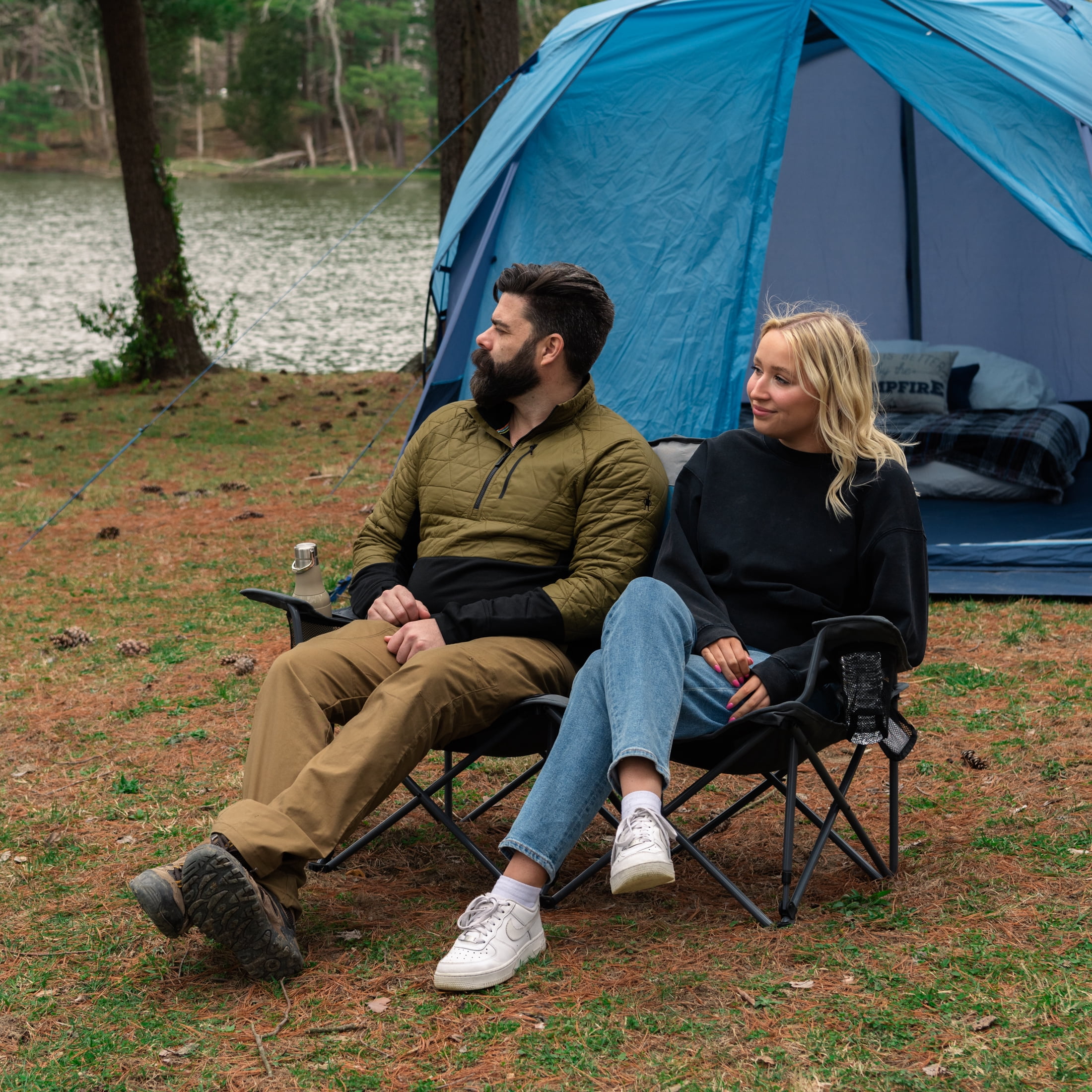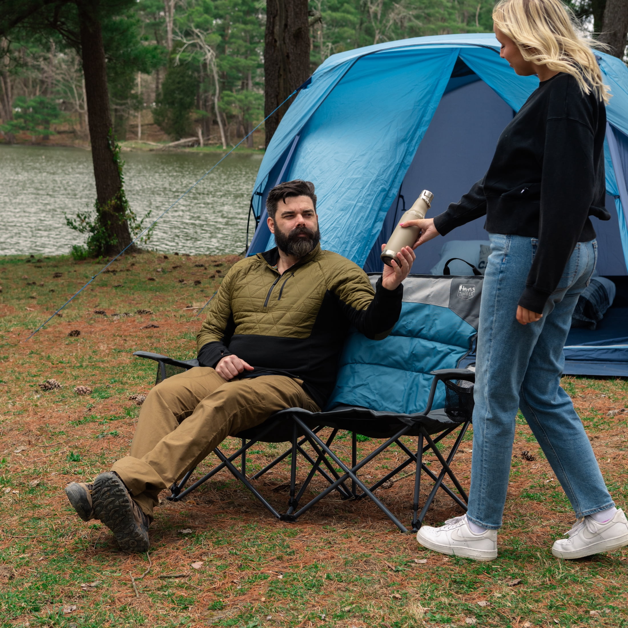 Curl up by the fire with your special someone in the Timber Ridge® Spruce Duo Loveseat. This comfy, padded loveseat is perfectly sized for two allowing you and a loved one to curl up in. It is designed with a lower seat design for a more comfortable and improved sitting experience, as well as triple reinforced corners to prevent tearing. And with the powder-coated steel frame and 600D polyester fabric, this chair is built for durability and has a 250-pound weight capacity for each seat. It also features a mesh phone pocket under the seat and built-in mesh cup holders to keep beverages nearby at all times. Ready to make the most of your next outdoor adventure? Whether you are camping, tailgating, or hanging out in the backyard, grab the Timber Ridge® Spruce Duo Loveseat and sit in comfort with your loved one. Adult use, blue.