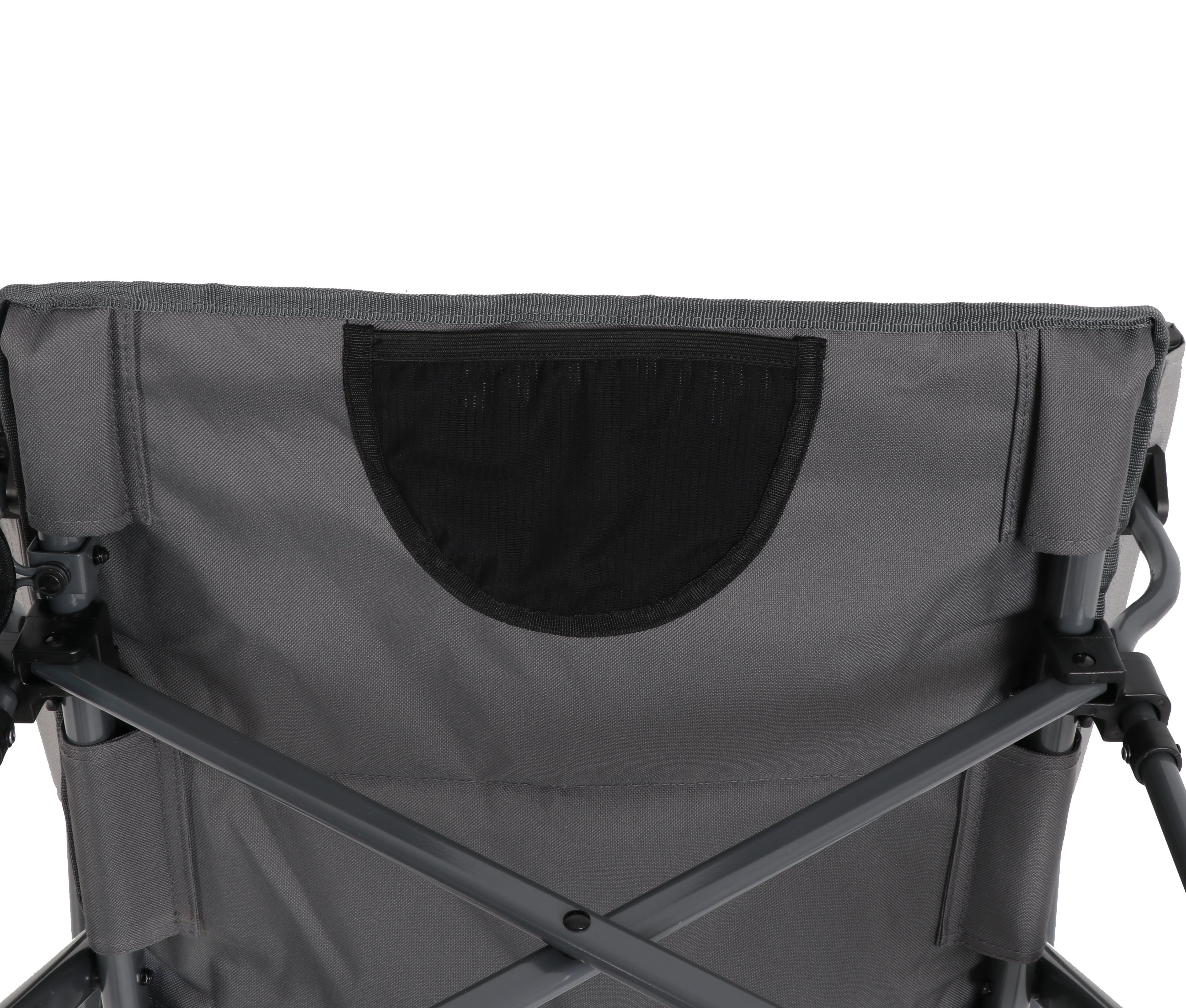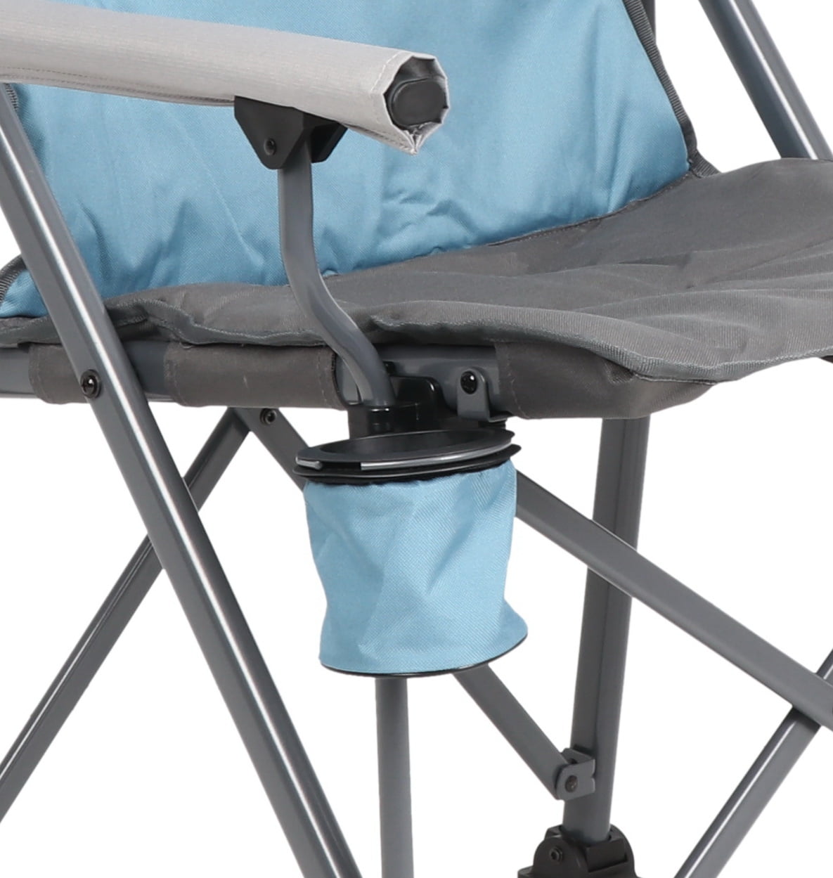 Made with durable 600D polyester fabric Extra sturdy steel frame with powder coating Hard armrest with foam wraps for added comfort and to make getting in and out easier Mesh phone pocket under seat keeps your trusty device nearby Mesh XL cup holder ensures a beverage is within reach at all times Product dimensions (inches): 19.3” x 19.7” x 20.5” x 39.4” Weight capacity (pounds): 300 lbs.