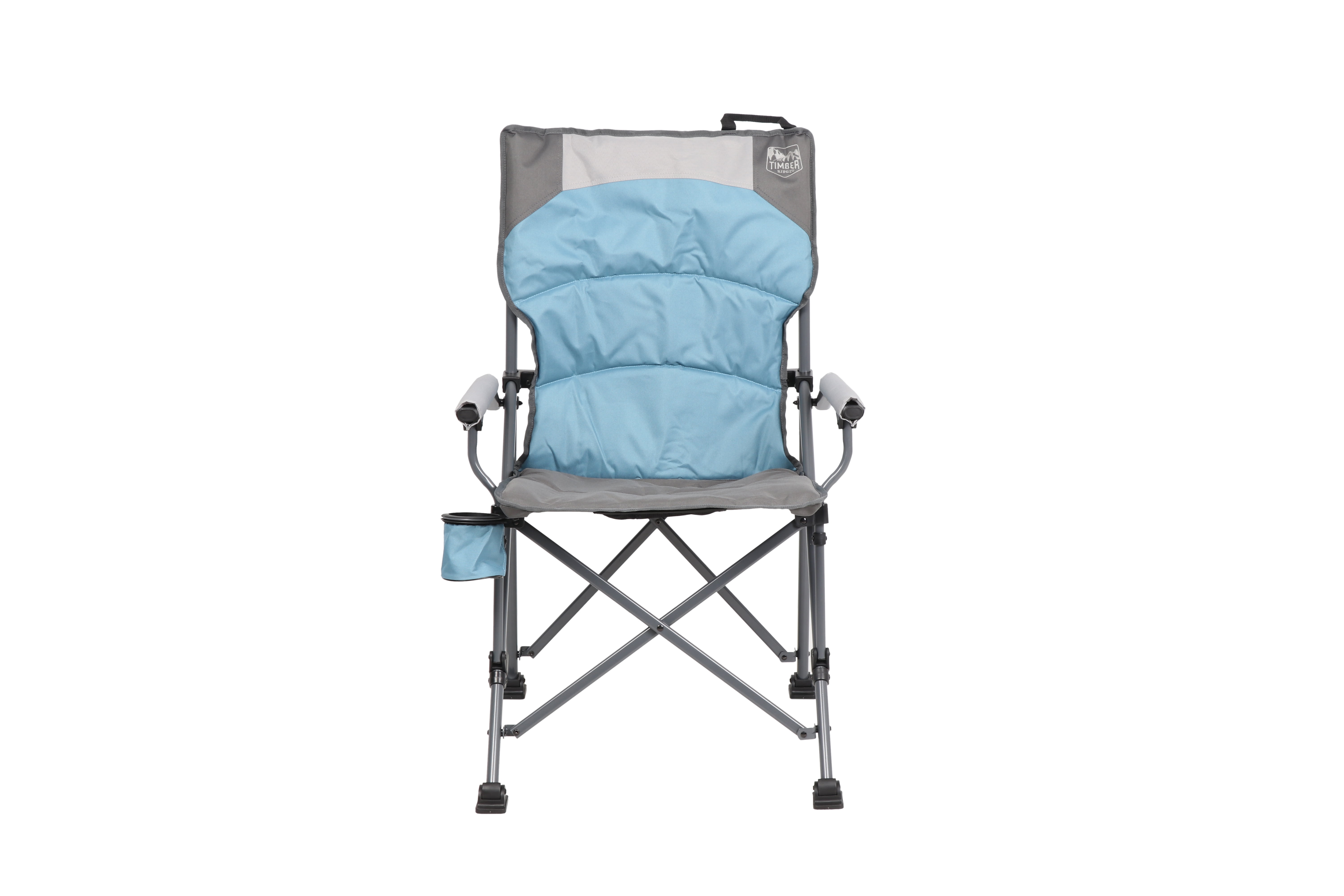 Whether camping, tailgating, or hanging out on your patio, if you want to upgrade your outdoor seating, look no further than the Timber Ridge® Wisteria Hard Arm Chair. This chair has a 300-pound weight capacity and is designed with a powder-coated steel frame and 600D polyester fabric for added durability. Unlike other similar folding chairs, it also features hard armrests with foam wraps for added comfort and to make getting in and out of the seat easier. A mesh phone pocket is included under the seat to keep your device nearby, while an XL mesh cup holder will ensure a beverage will be within reach at all times. Are you looking for an upgrade to your standard outdoor folding chair? If so, before heading out on your next outdoor adventure, grab the Timber Ridge® Wisteria Hard Arm Chair and sit in comfort. Adult use, blue.