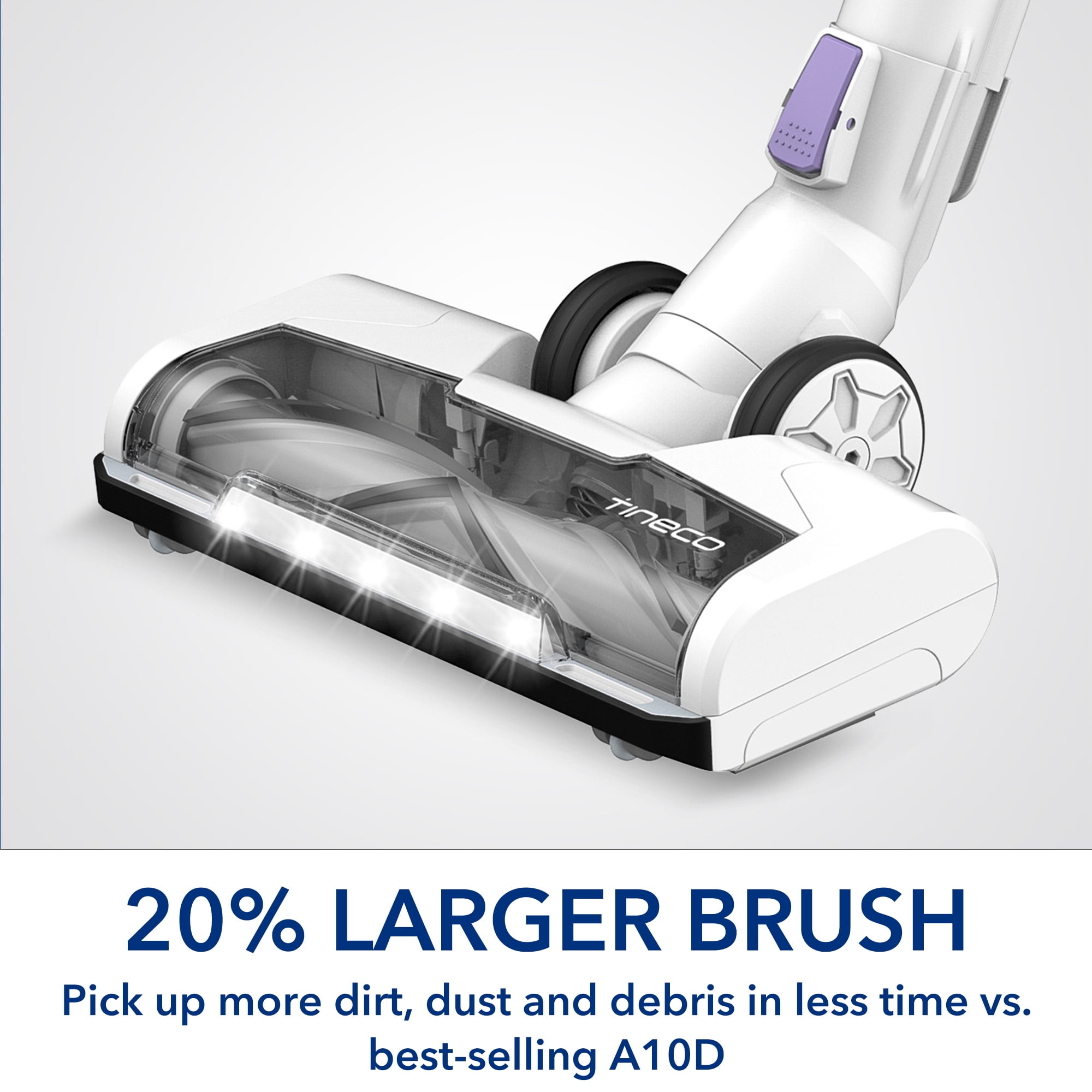 Stay on top of the messes wherever they happen during your busy day by keeping your Tineco cordless stick vacuum cleaner within reach. Perfect for quick cleanups, the new A10-D Plus can go seamlessly from hard surfaces to area rugs in a hurry. Thanks to its convenient, lightweight (<5 lbs) design and fast conversion to a hand vac, the A10-D Plus is all you need to take care of your space without the hassle of a cord! Includes versatile accessories, advanced HEPA filtration, one-step hand vac conversion, and LED headlights to illuminate unseen dust and debris.