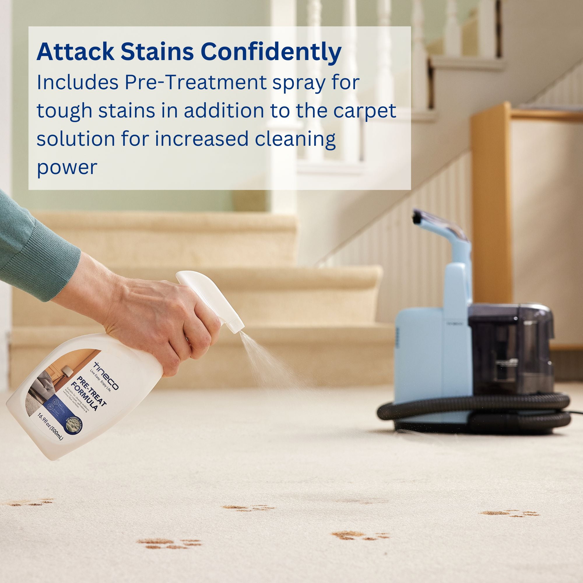 Tineco GO Spot Deep Carpet Cleaner, For Carpet & Upholstery, Ideal for Rugs and Stairs, Includes Carpet Solution & Pre-Treatment Spray (SC051000US)