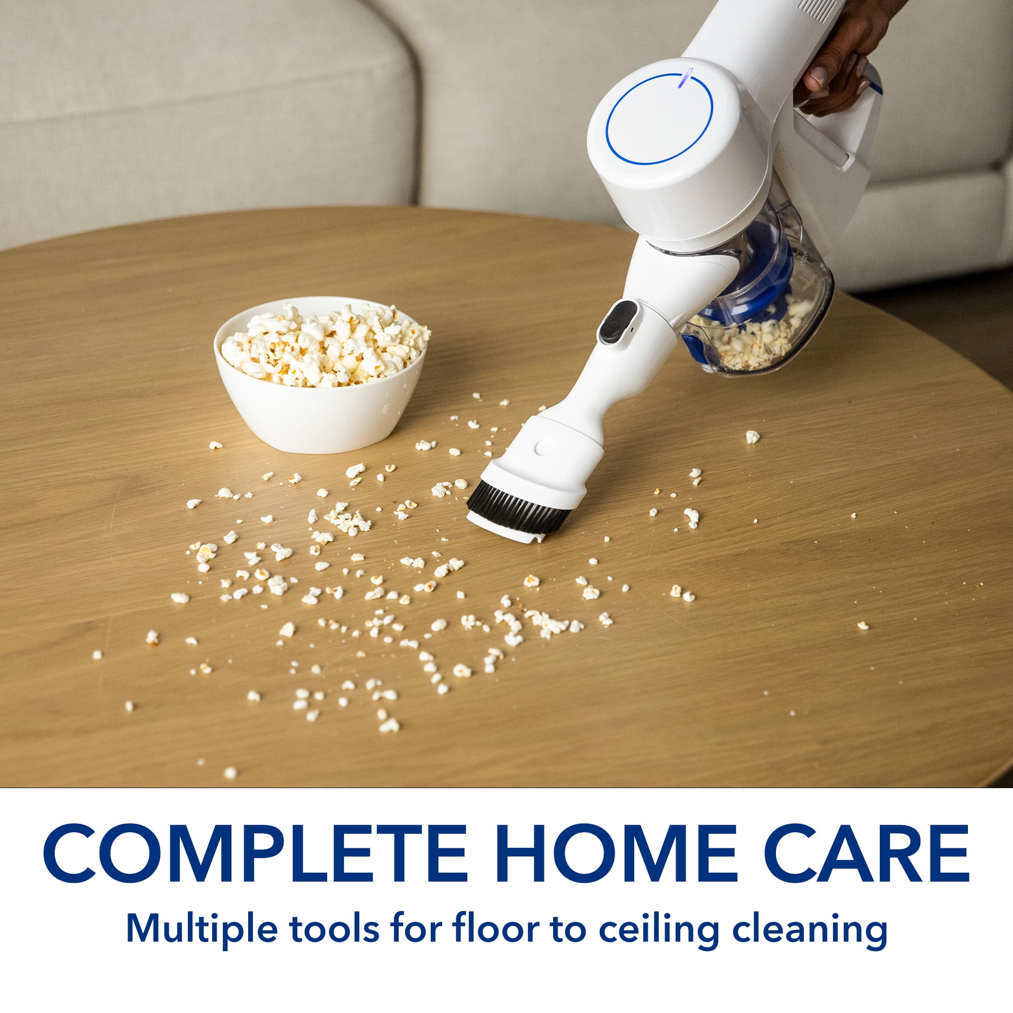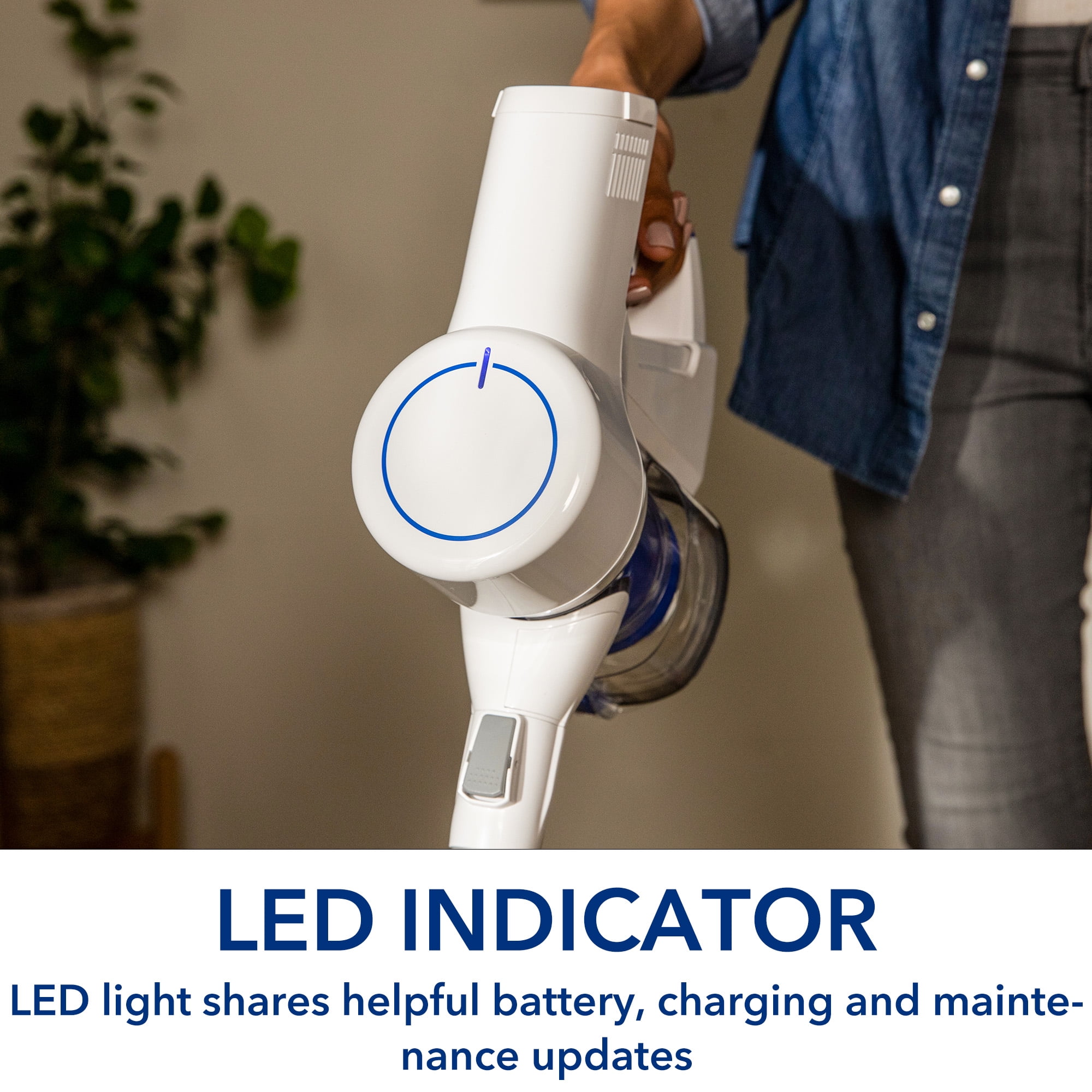 Robust Suction: Effective on all surfaces, from hard floors to carpets and tiles. Cord-Free and Ultra-Portable: Weighs less than 5lbs; easily transitions between rooms. 40 Minutes of Power-Packed Cleaning: Long-lasting battery life for extensive cleaning. Pure Air with HEPA Filtration: Advanced HEPA system ensures cleaner air. Hassle-Free Emptying: Dust cup empties with the push of a button; no mess. Dust cup empties with the push of a button; no mess. Illuminating Headlights: Bright LED lights to spot hidden dirt. Sleek and Versatile: Low-profile design for cleaning under furniture and tight corners What’s Included: LED Multi Tasker Power Brush, 2-in-1 Dusting Brush, Crevice Tool & Wall Mounted Dock