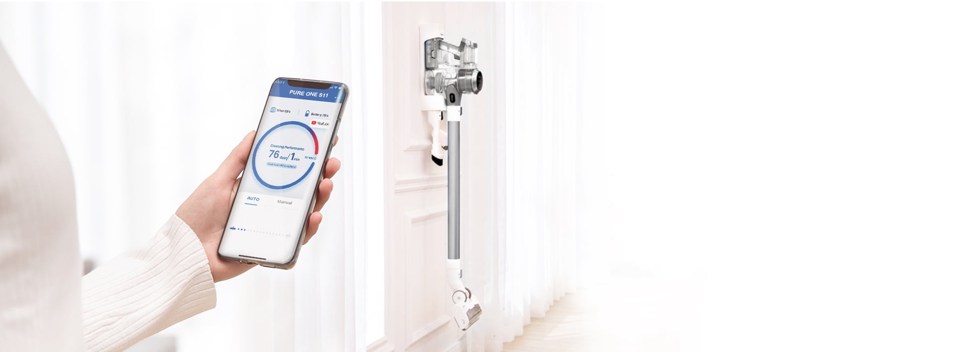 Tineco PURE ONE S11 SPARTAN Cordless Smart Vacuum Cordless smart vacuum iLoop™ Smart Sensor Technology Smart dust and debris detection Automatic suction adjustment Smart battery optimization 450W high-performance motor Max 130W powerful suction LED display Ultra-quiet Converts to a handheld vacuum Up to 40 minutes runtime in automatic mode Up to 10 minutes runtime in Max mode Detachable, rechargeable lithium-ion battery Wifi and app integration 4 stage fully sealed HEPA filtration 0.6L dustbin capacity One-touch empty dustbin Wall-mounted charging dock PURE ONE S11 SPARTAN includes: crevice tool, 2-in-1 dusting tool, wall-mounted charging dock