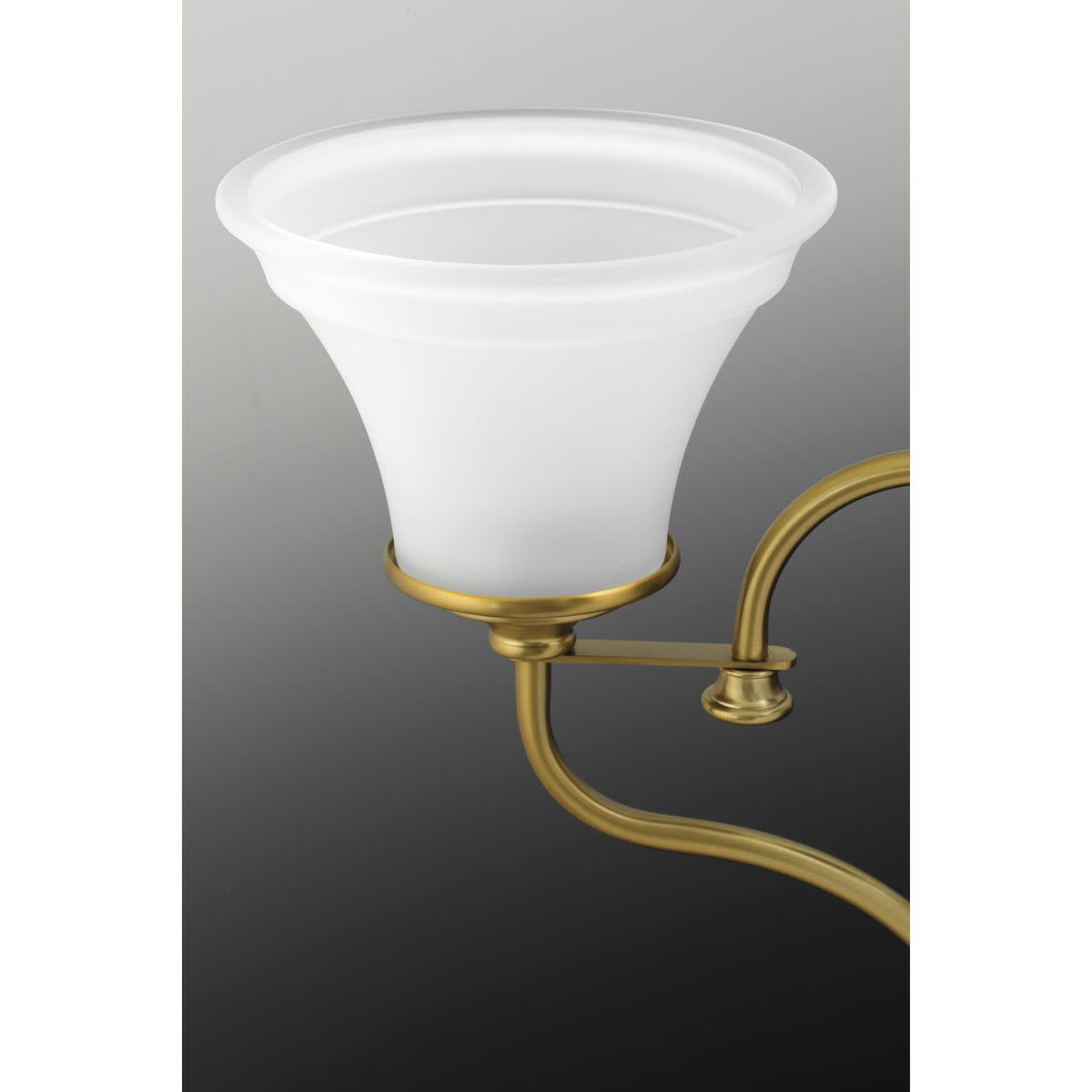 Featuring soft angles and impressive sculptural curves, Tinsley is a refreshingly updated design for Luxe, Transitional and Traditional interiors. The frame is complemented by classic etched glass shades or open candle designs. Overscaled details found in Tinsley are ideal for welcoming guests and visitors in a foyer or entryway, as well as in luxe dining room or traditional living room settings. Three-light chandelier in a Brushed Bronze finish.