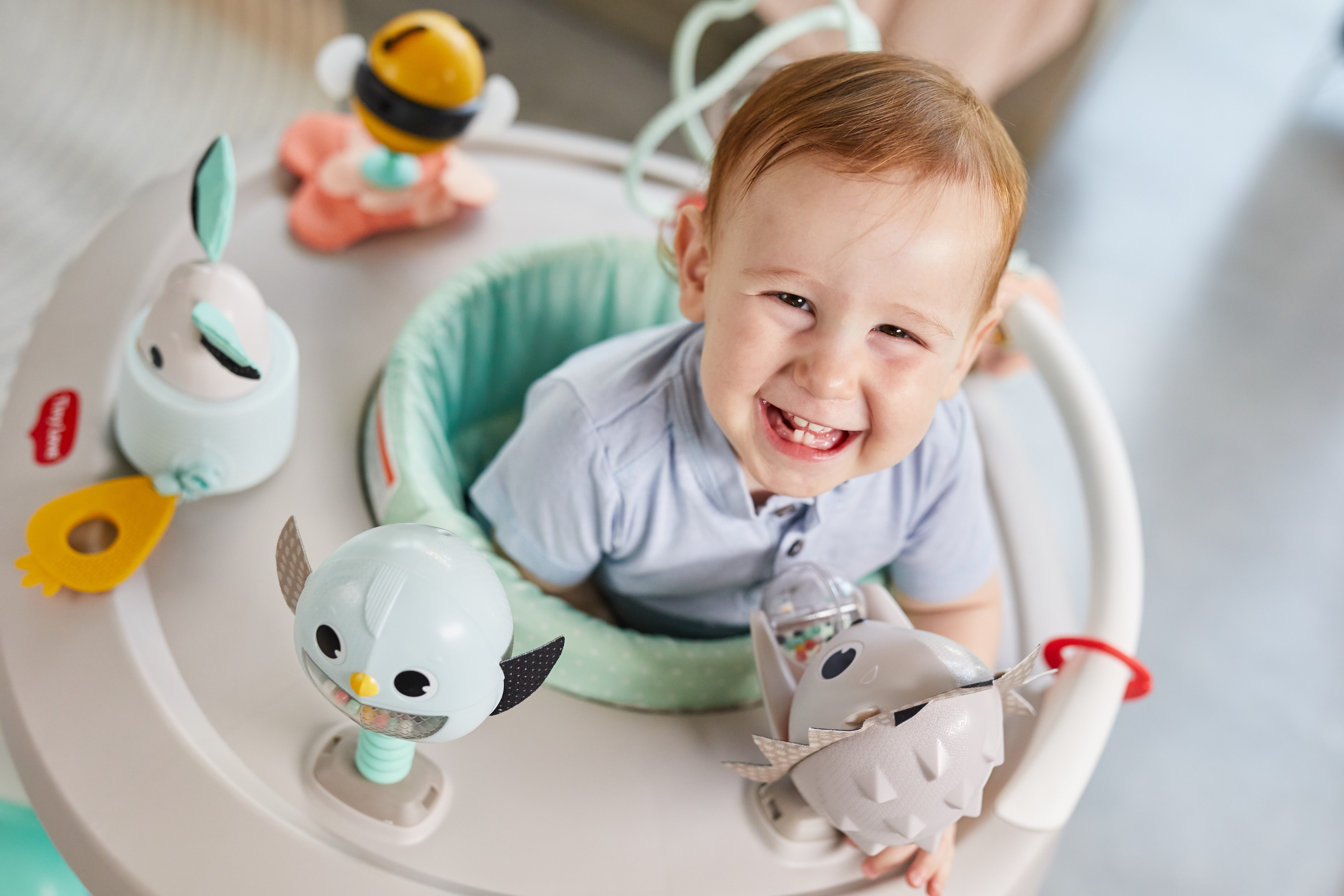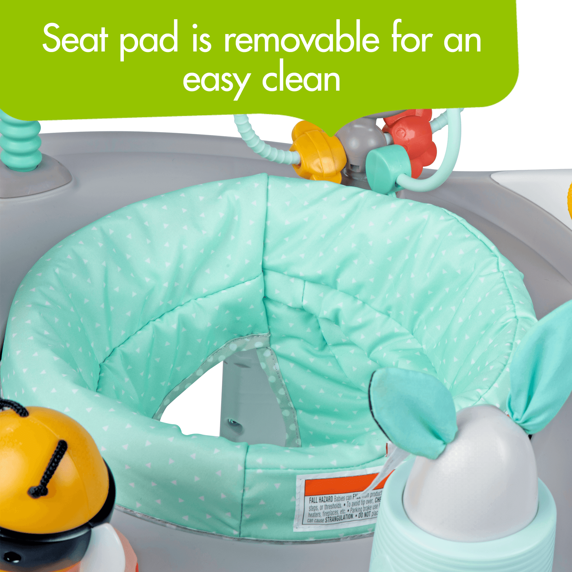 PROMOTES CHILD DEVELOPMENT – Whether used as a stationary activity center, push along, jumper or walker, each activity grows with your child to match their developmental milestones. 4-IN-1 AND DONE – It’s the only entertainer you’ll ever need. Safely lock the wheels and baby can play stationary and swivel around. Or, they can push it, practice walking, or bounce and giggle. EXPLORE THE SEVEN DEVELOPMENTAL WONDERS – Over 20 different activities invite baby to discover the Seven Developmental Wonders™: cognition, language, fine motor skills, senses, gross motor skills, creativity, and emotional intelligence. EASY TO CLEAN – Take care of those unavoidable messes by removing the seat pad and tossing it in the washing machine. NESTS COMPACTLY – Designed to nest inside the outer frame, the activity center is easy to store when not in use. 3 ADJUSTABLE HEIGHTS – The Here I Grow is designed to do just that! The 3 different height positions can be easily adjusted for them to be on-the-go as they grow. For children who can sit up unassisted up to children no more than 30 lbs. or 32 inches.