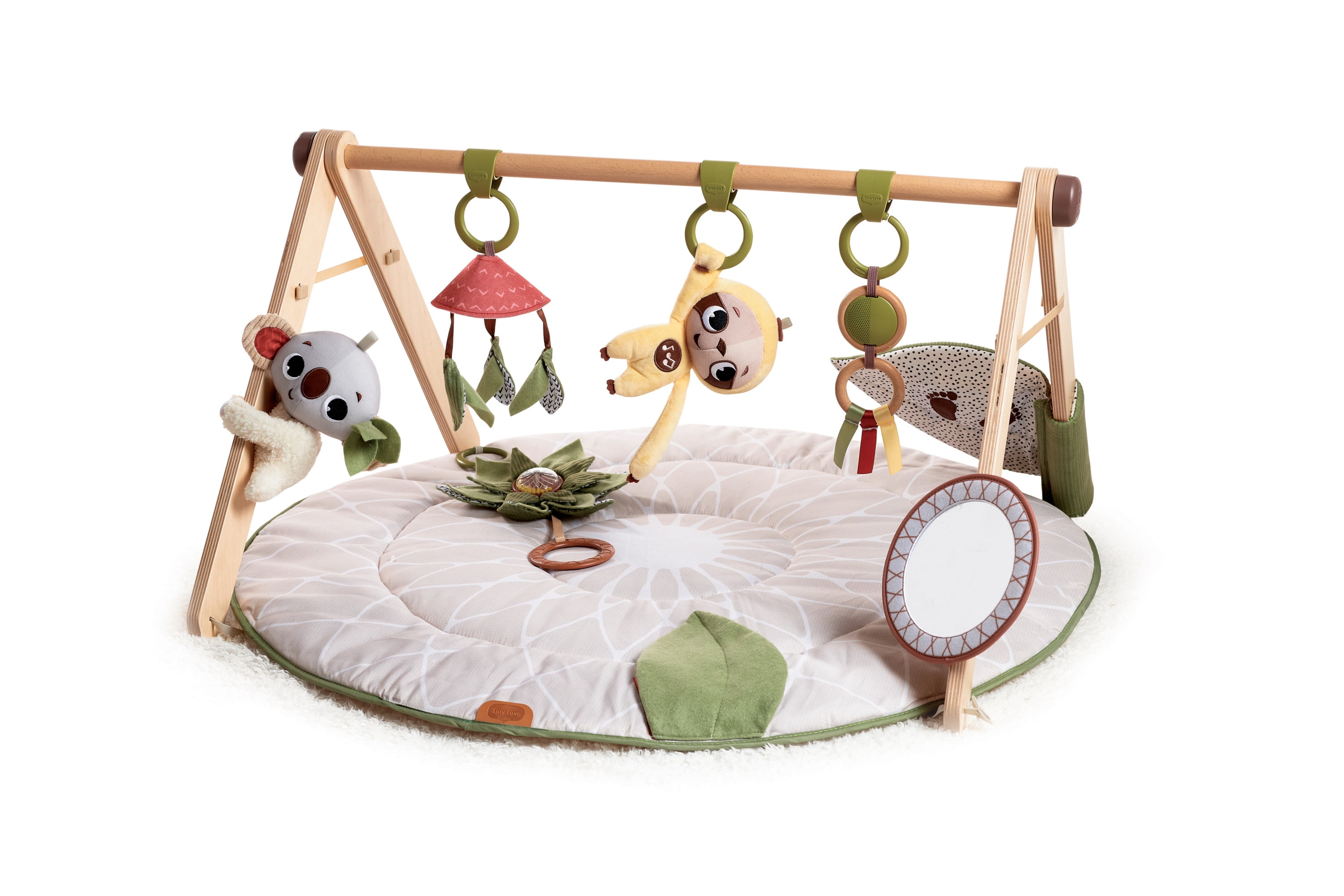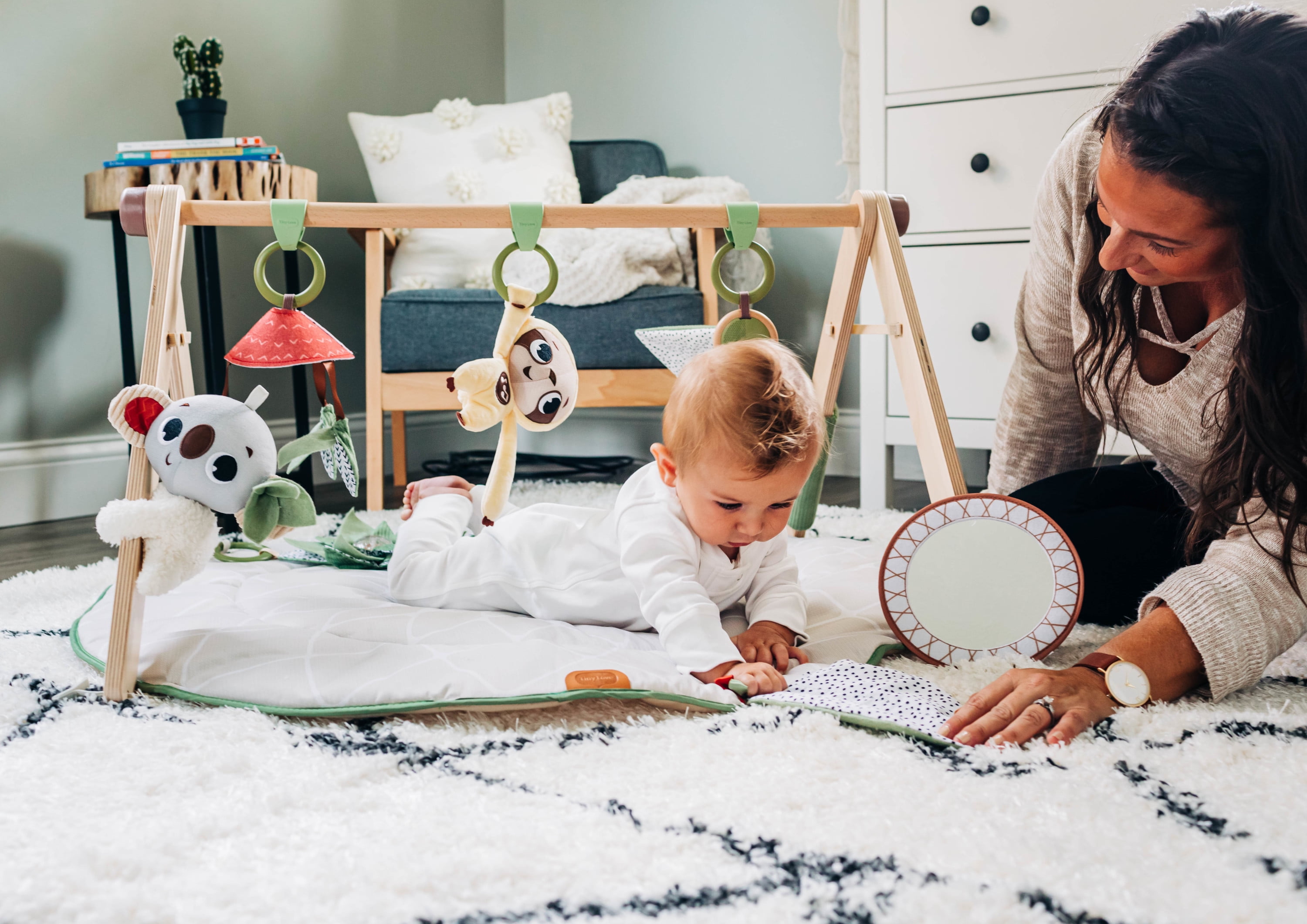 Get on your baby’s level with the new Boho Chic Luxe Developmental Gymini® from Tiny Love. With a total of 20 playful activities, the new Boho Chic Luxe Developmental Gymini will engage baby with creative learning experiences while supporting six developmental skills. It features an adorable plush take-along koala hug-doll, a baby-activated musical sloth doll that helps your baby learn cause and effect, a giant rattling kicker leaf, a trio of natural wood gripping rings, a mirror to encourage longer tummy time, and so much more! Twelve milestone cards come with the product, enabling parents to capture and share key moments during their baby’s exciting first year. The cards also contain developmental information to help parents further explore baby’s development. The stand-alone wooden arch will keep entertaining baby even at the sitting stage. Ever since Tiny Love invented the world’s first Gymini, it has been babies’ ultimate playground, packed with intriguing activities and fun characters. This innovative edition will be a hit among babies and parents alike. The trendy boho style will compliment your home’s décor, and when playtime is over, the double-padded, extra-soft activity mat is machine-washable and easy to clean. Tiny Love strives to identify the latest discoveries in child development and translate them into engaging, interactive toys that nurture skills and delight the senses.