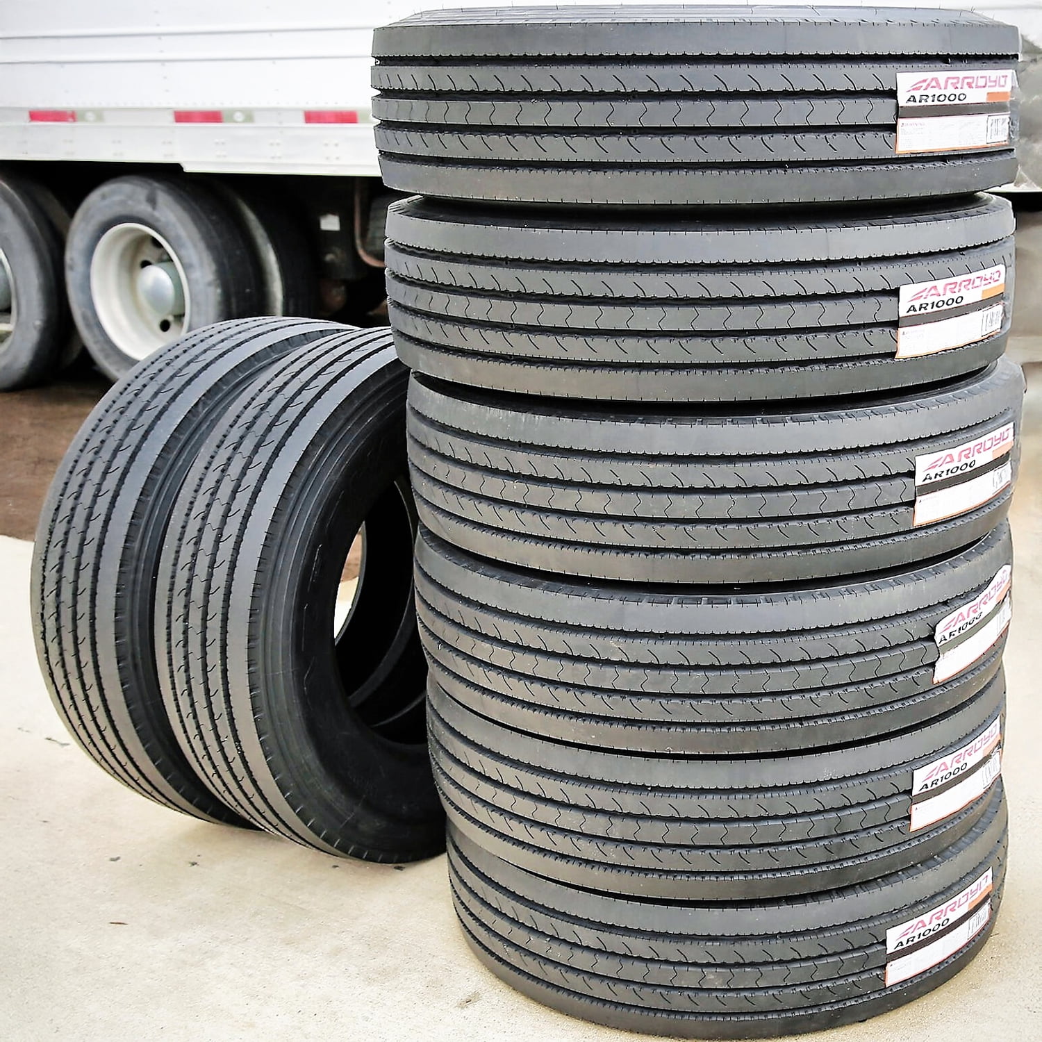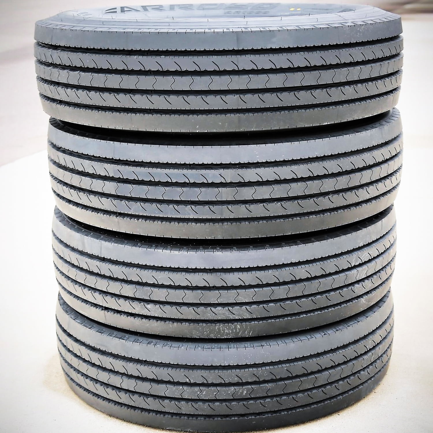 Arroyo AR1000 FEATURES AND BENEFITS All weather traction Longer lasting tread life Enhanced controllability Improved load durability OVERVIEW The Arroyo AR1000 is a highway terrain, all season tire manufactured for commercial vehicles. This model is made to be mounted on steer axles. The tread design and the all season compound promote great year-round traction. The ideal tread design is able to firmly grip the road surface in dry, wet, and winter conditions, while the all season compound keeps the rubber flexible in hot summer and cold winter temperatures. The wide grooves prevent hydroplaning by dispersing water and slush from the footprint and promote better-wet traction. This tread design and all season compound provide a safe driving experience in all weather conditions. This model also promotes great controllability. The ribbed tread design is able to maintain road contact during the performance, while the durable compound keeps the ideal tire shape under load and driving pressure. This combination boosts steering responsiveness and driving stability. The steering response time is faster and more precise to the driver’s command. This enables the driver to have full control over the vehicle during the drive. The model also promotes excellent load durability. Thanks to the stronger steel belt construction and the durable compound the model can easily handle and carry heavy loads. The construction is able to keep the optimal tire shape under load and driving pressure. As the tire does not deform under pressure, it is able to withstand larger loads with ease. The Arroyo AR1000 also provides a longer-lasting tread life. The ribbed footprint’s road contact is able to evenly distribute driving pressure along the tread. On the other hand, the durable compound slows the tread wear rate down. These two elements perfectly work together to prevent irregular and premature wear formation. As a result, the tire offers a lengthened usability and service life. Manufacturers recommend changing tires every 10 years. As long as tires are properly stored before they are sold, the year of their manufacture will not shorten their service life.