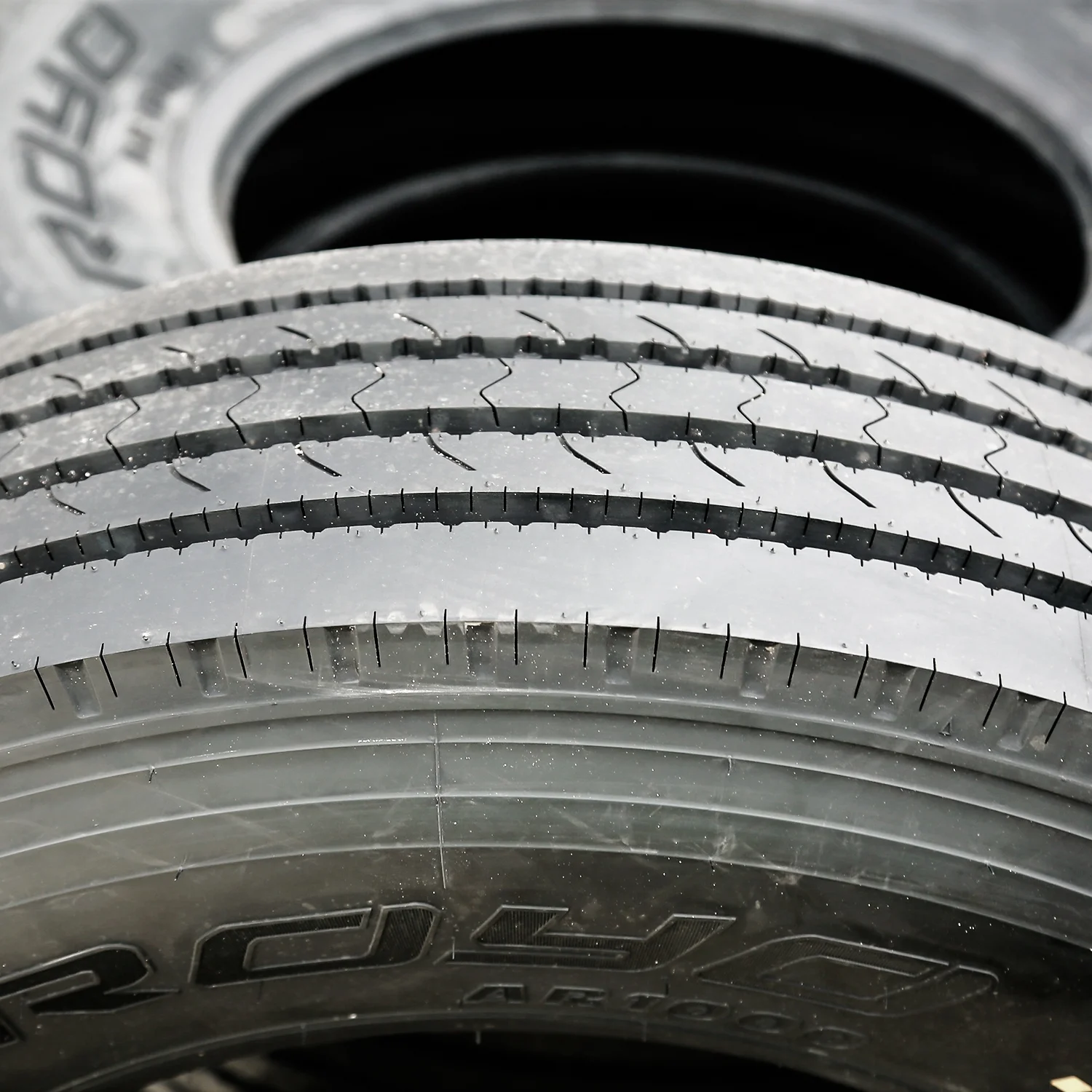 Arroyo AR1000 FEATURES AND BENEFITS All weather traction Longer lasting tread life Enhanced controllability Improved load durability OVERVIEW The Arroyo AR1000 is a highway terrain, all season tire manufactured for commercial vehicles. This model is made to be mounted on steer axles. The tread design and the all season compound promote great year-round traction. The ideal tread design is able to firmly grip the road surface in dry, wet, and winter conditions, while the all season compound keeps the rubber flexible in hot summer and cold winter temperatures. The wide grooves prevent hydroplaning by dispersing water and slush from the footprint and promote better-wet traction. This tread design and all season compound provide a safe driving experience in all weather conditions. This model also promotes great controllability. The ribbed tread design is able to maintain road contact during the performance, while the durable compound keeps the ideal tire shape under load and driving pressure. This combination boosts steering responsiveness and driving stability. The steering response time is faster and more precise to the driver’s command. This enables the driver to have full control over the vehicle during the drive. The model also promotes excellent load durability. Thanks to the stronger steel belt construction and the durable compound the model can easily handle and carry heavy loads. The construction is able to keep the optimal tire shape under load and driving pressure. As the tire does not deform under pressure, it is able to withstand larger loads with ease. The Arroyo AR1000 also provides a longer-lasting tread life. The ribbed footprint’s road contact is able to evenly distribute driving pressure along the tread. On the other hand, the durable compound slows the tread wear rate down. These two elements perfectly work together to prevent irregular and premature wear formation. As a result, the tire offers a lengthened usability and service life. Manufacturers recommend changing tires every 10 years. As long as tires are properly stored before they are sold, the year of their manufacture will not shorten their service life.