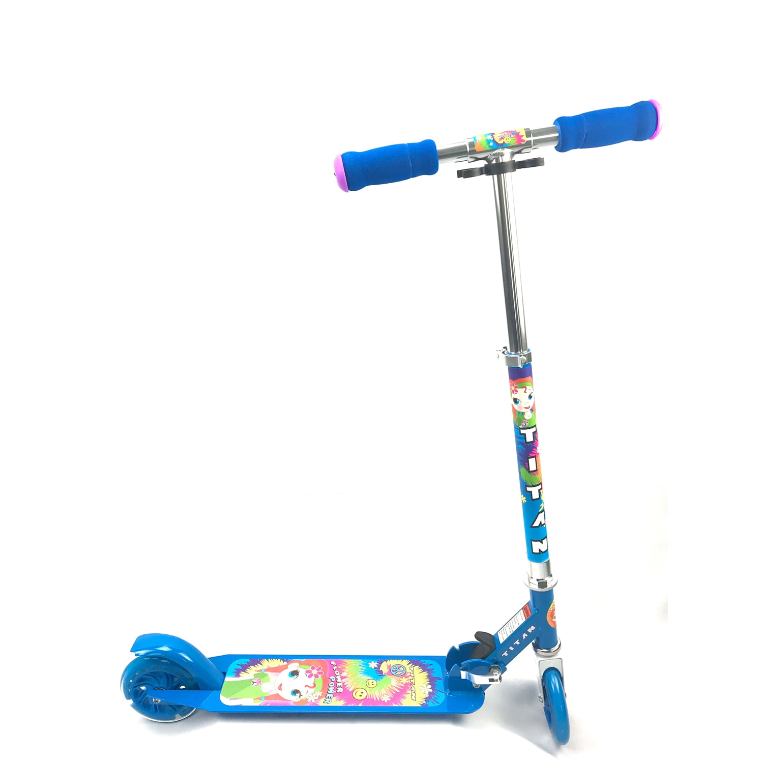 TITAN Flower Power Princess Folding Aluminum Girls Kickscooter with LED Light Up Wheels, Blue