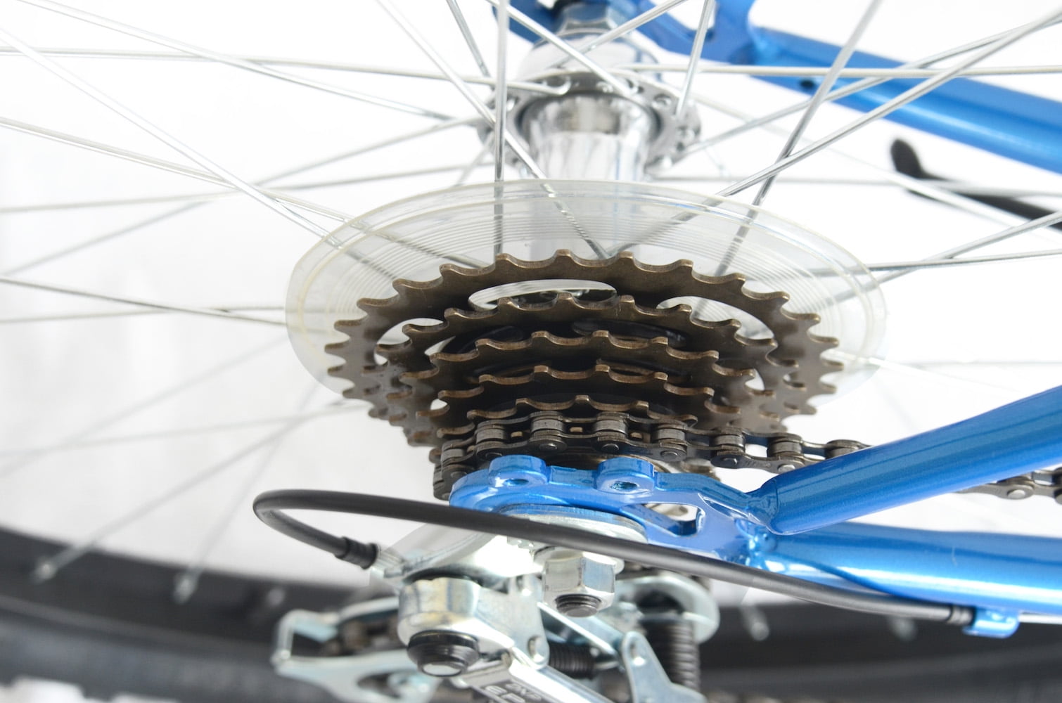 Riding style: Mountain bike. Frame: 18″ steel frame. Gearing: 18 speeds. Seat: Adjustable saddle. Brakes: Side pull brakes. Wheels: 26″ alloy wheels. Steel hubs. Dimensions: 65″L x 24″W x 37″H. Some assembly is required.