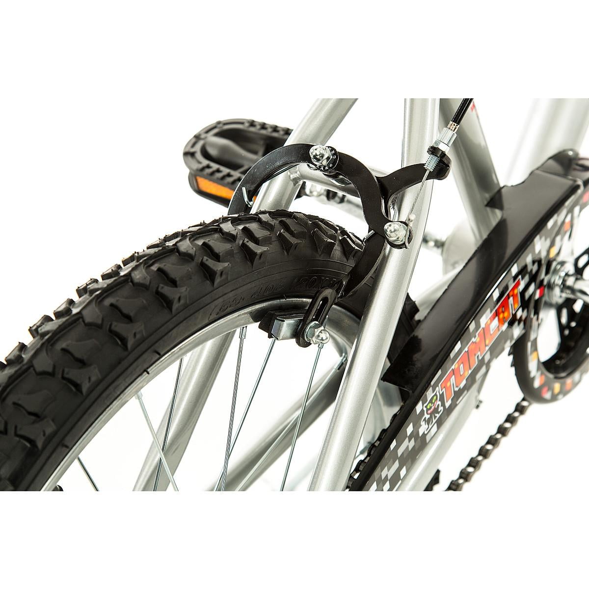Add fun and excitement to your outdoor time with the 20″ wheel Titan tomcat BMX bike. It features a heavy-duty for durable long life and includes a side-pull caliper brake and a pedal coaster brake for the rear wheel. This Titan bike is outfitted with BMX-style tires that are highlighted with chrome-plated 36-spoke rims and hubs. A vinyl saddle tops off an adjustable seat post with an attached reflector that provides extra visibility in low-light conditions. The tomcat bike includes a removable chain guard to prevent damage from grease and dirt and to provide additional safety. This item has a recommended weight capacity of 200 lbs. And is designed for youth 8 to 12 years of age.