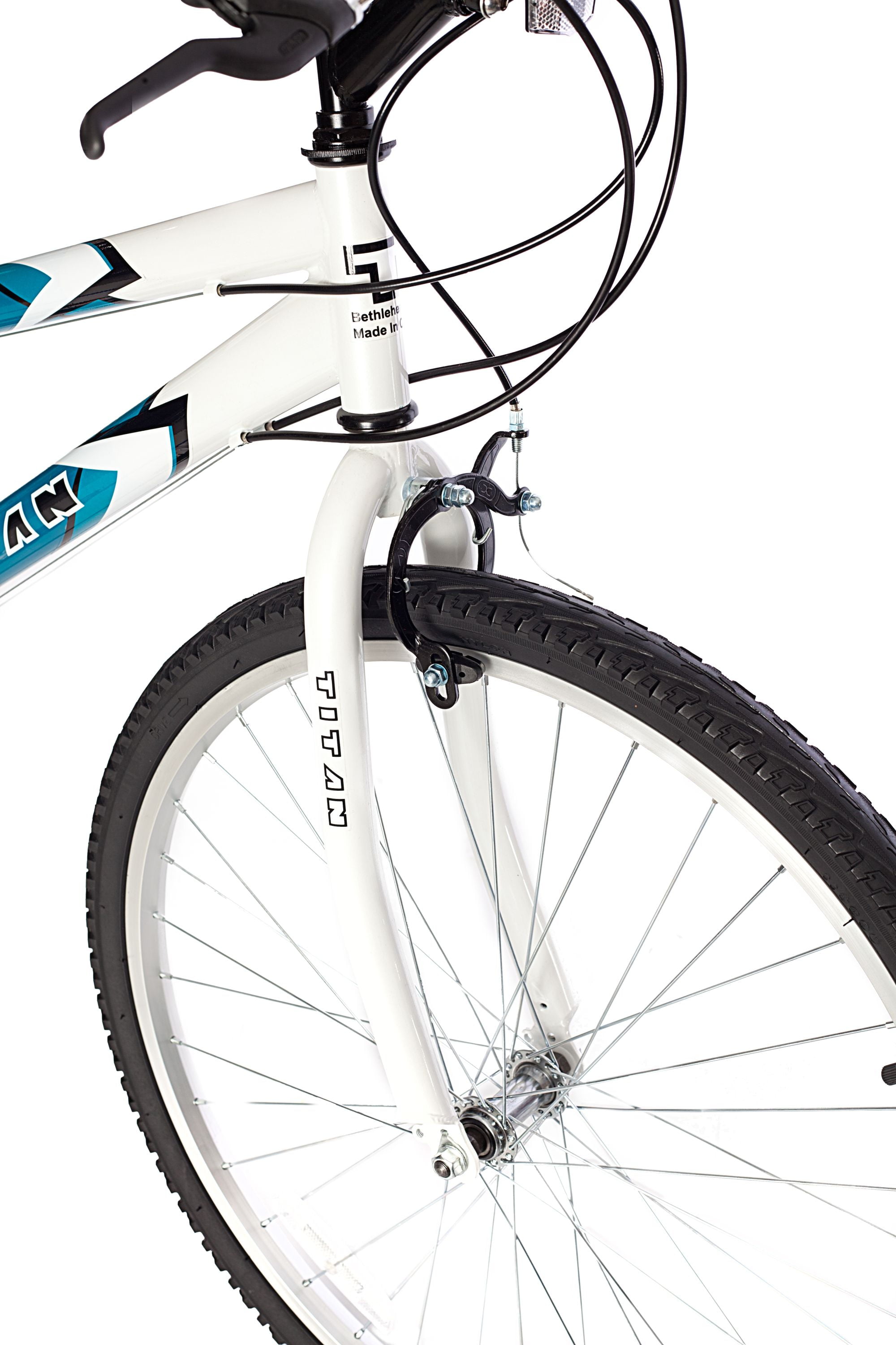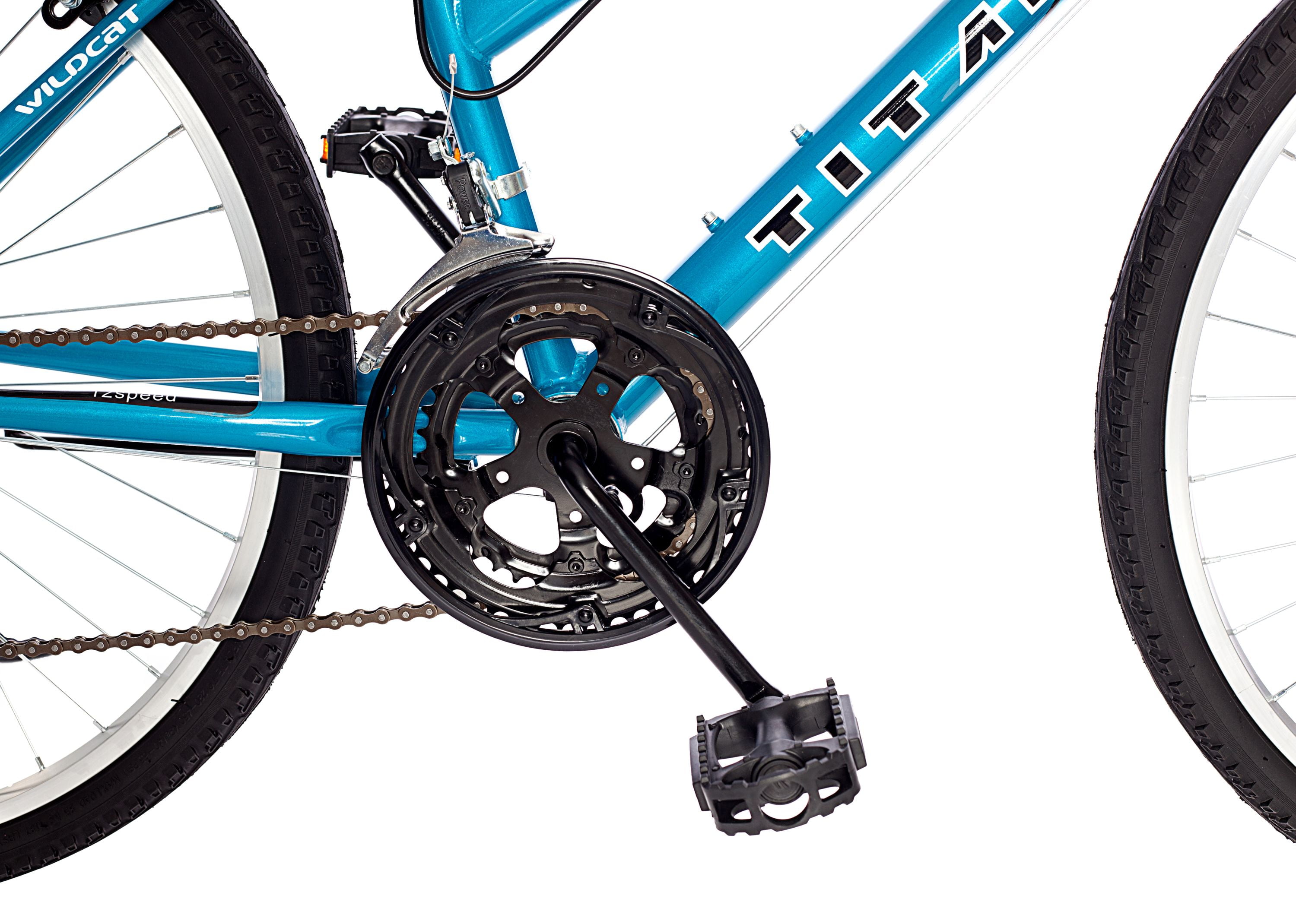 Titan Wildcat 26″ Women’s Mountain Bike, Blue and White: Riding style: mountain bike Frame: 15″ Handlebars: standard Gearing: 18 speed Seat: height-adjustable saddle Brakes: high-quality steel side pull style for front and rear Wheels: alloy Tires: commuter Rims: steel Pedals: standard Dimensions: 65″L x 24″W x 37″H 1-year warranty on defective parts See our entire assortment of bikes and ride on toys at . Titan Wildcat 26″ Women’s Mountain Bike, Blue and White: Riding style: mountain bike Frame: 15″ Handlebars: standard Gearing: 18 speed Seat: height-adjustable saddle Brakes: high-quality steel side pull style for front and rear Wheels: alloy Tires: commuter Rims: steel Pedals: standard Dimensions: 65″L x 24″W x 37″H 1-year warranty on defective parts See our entire assortment of bikes and ride on toys at .