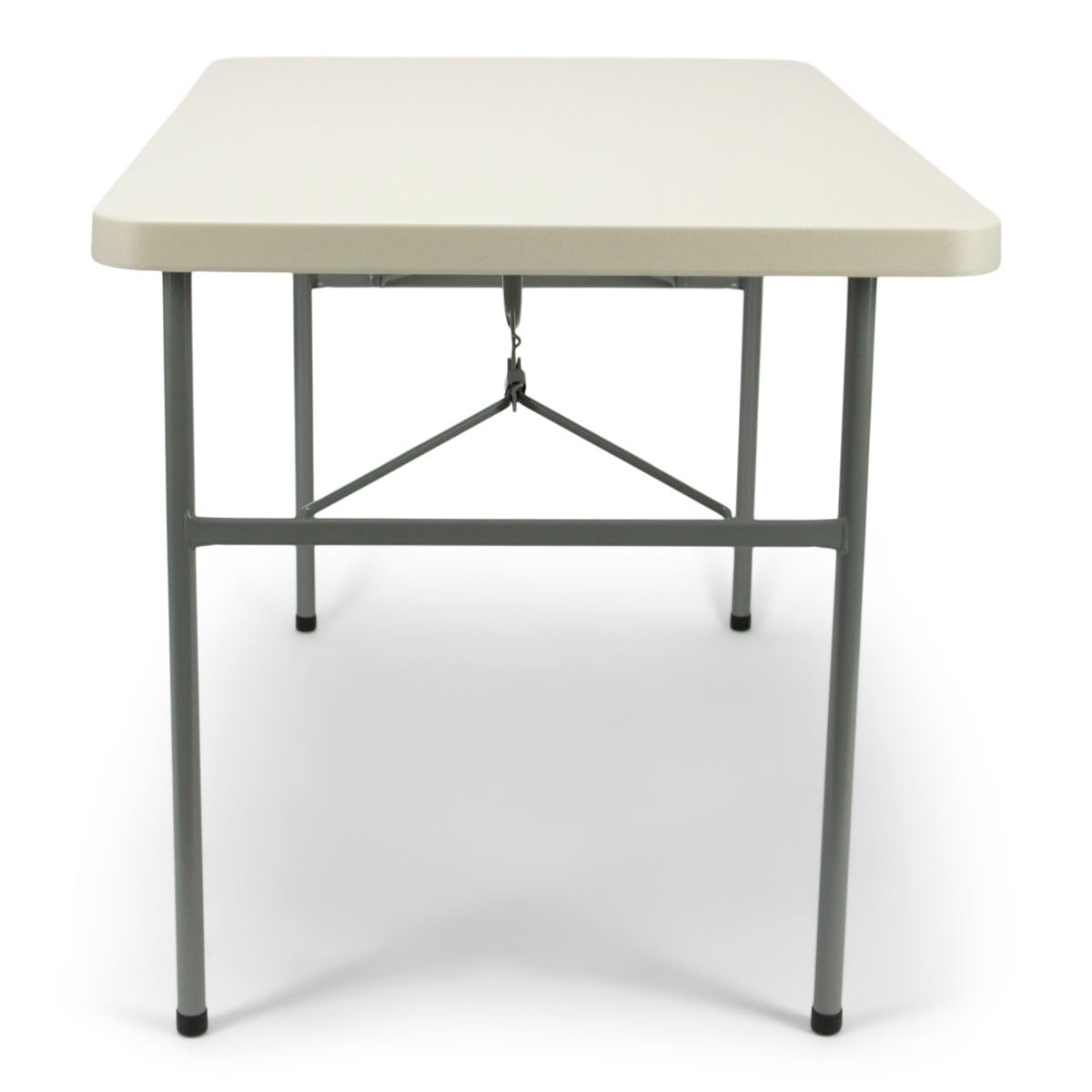 Standard, 2” Tabletop Thickness 16 gauge powder coated legs easily fold and lock into place Suitable for indoor or outdoor use
