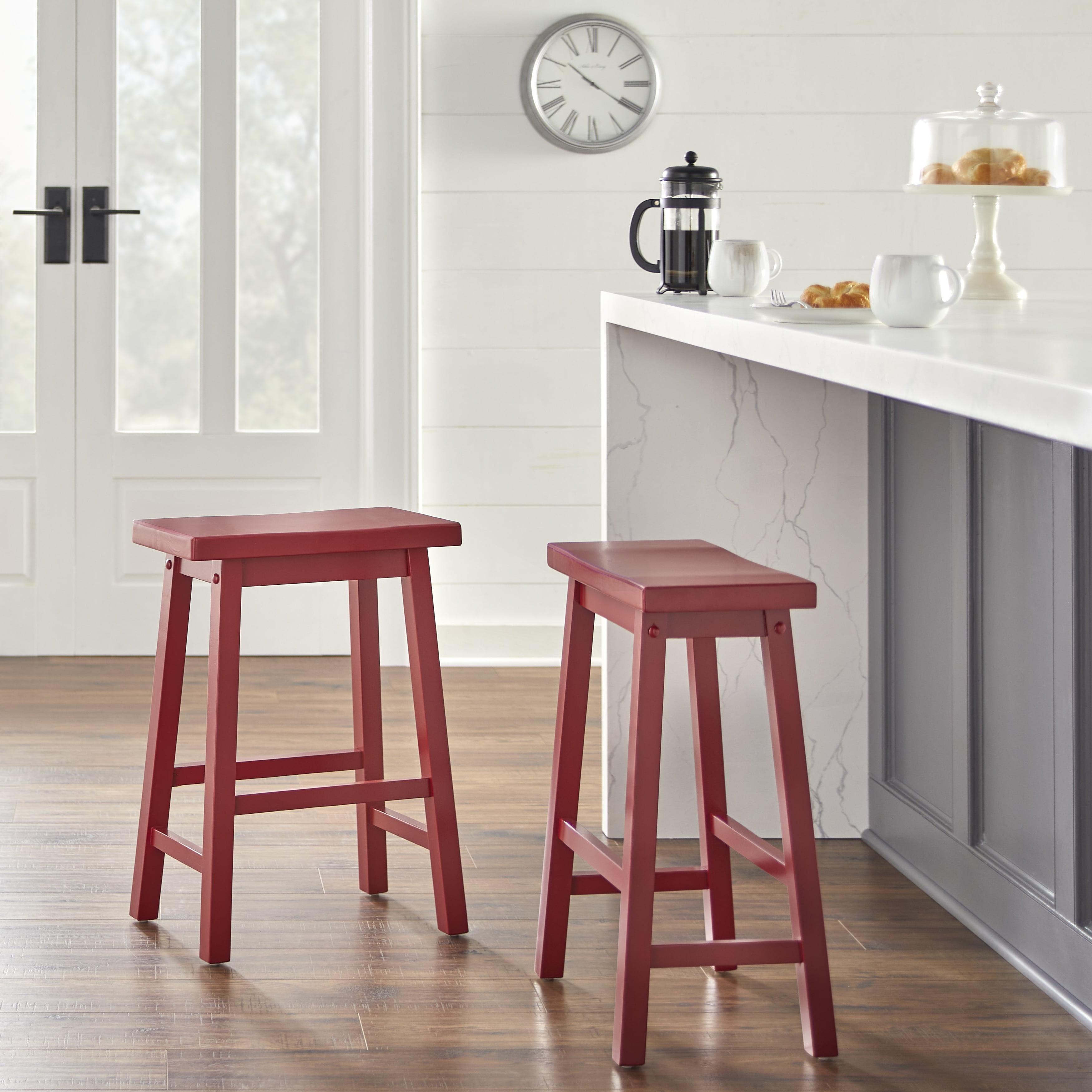 Includes: one (1) – 24″ high stool Saw-horse style frame Features cross-rail for added support and comfort Slightly contoured seat Availble in multiple finishes Overall stool Dimensions : 17.6″ x 9″x 24″H Ships in one box Assembly Required