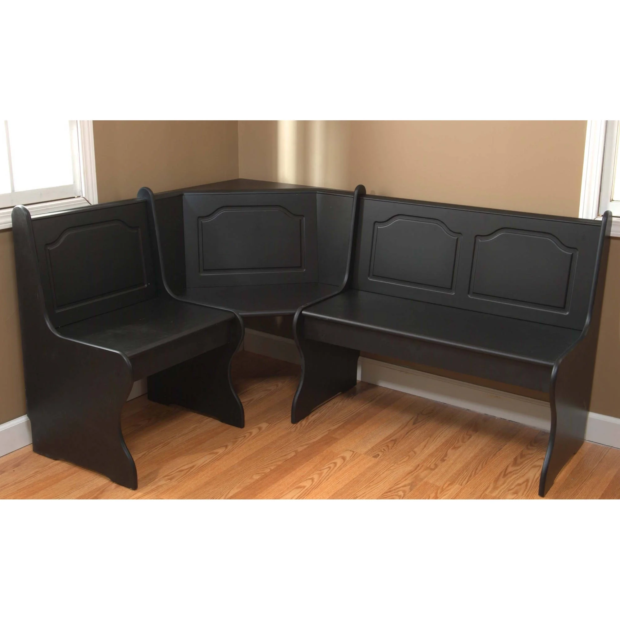 TMS 3-Piece Corner Reversible Indoor Dining Breakfast Nook with Storage, Includes Nook, Table and Bench, Black