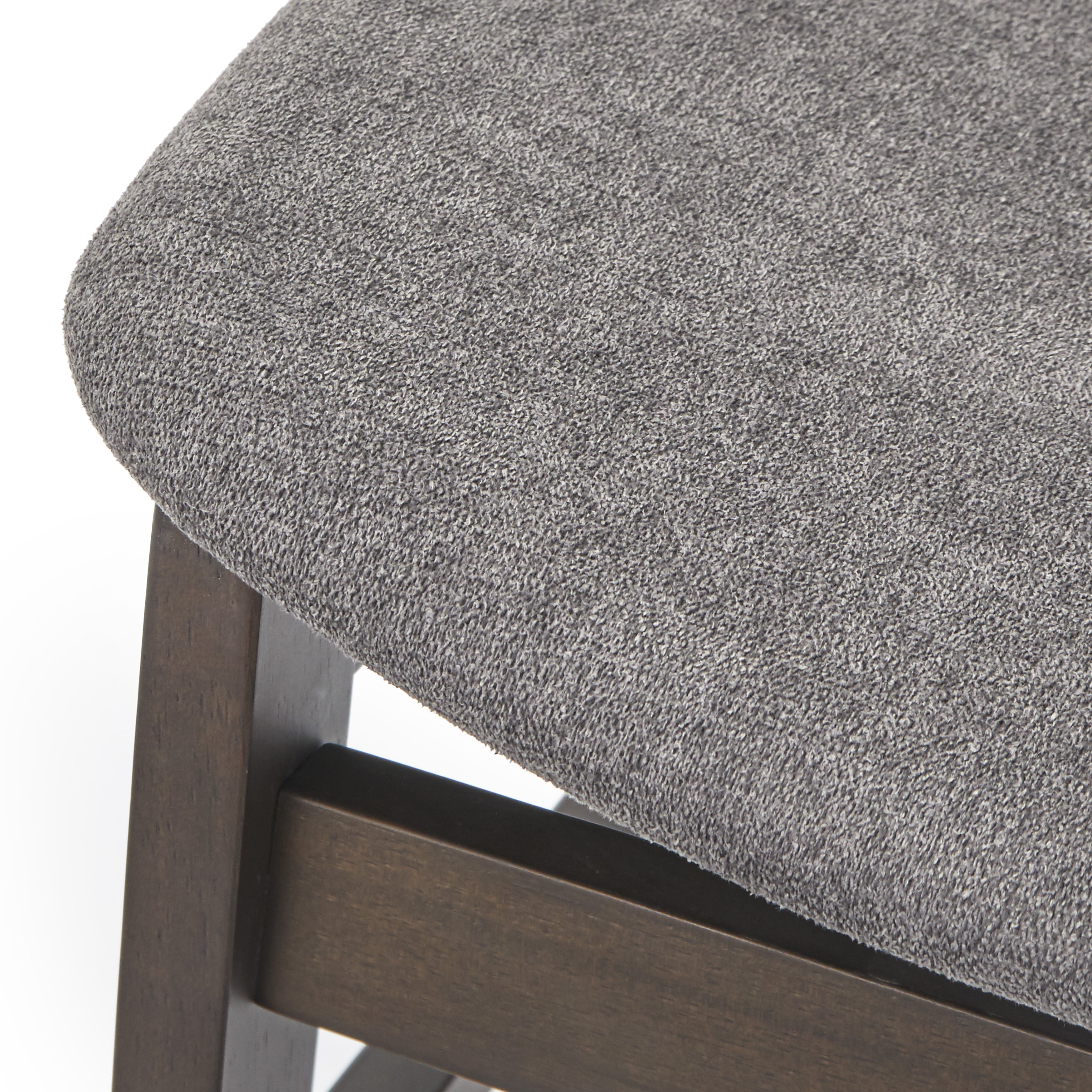 Add a fresh look to your kitchen or breakfast nook with the 5 piece Delvin dining set from tams. Clean lines provide a mid-century-inspired style that makes it easy to coordinate with many types of room interiors. This is also a nice size set for smaller spaces or a nook. The rectangular-shaped table features angled legs, finished in warm walnut, constructed of MDF and rubberwood. While the four (4) matching chairs in walnut, feature unique horizontal slat backs and added crossbars for extra support. Accented with upholstered gray or beige seats in a linen-look fabric, these dining chairs are the perfect complement to this set.