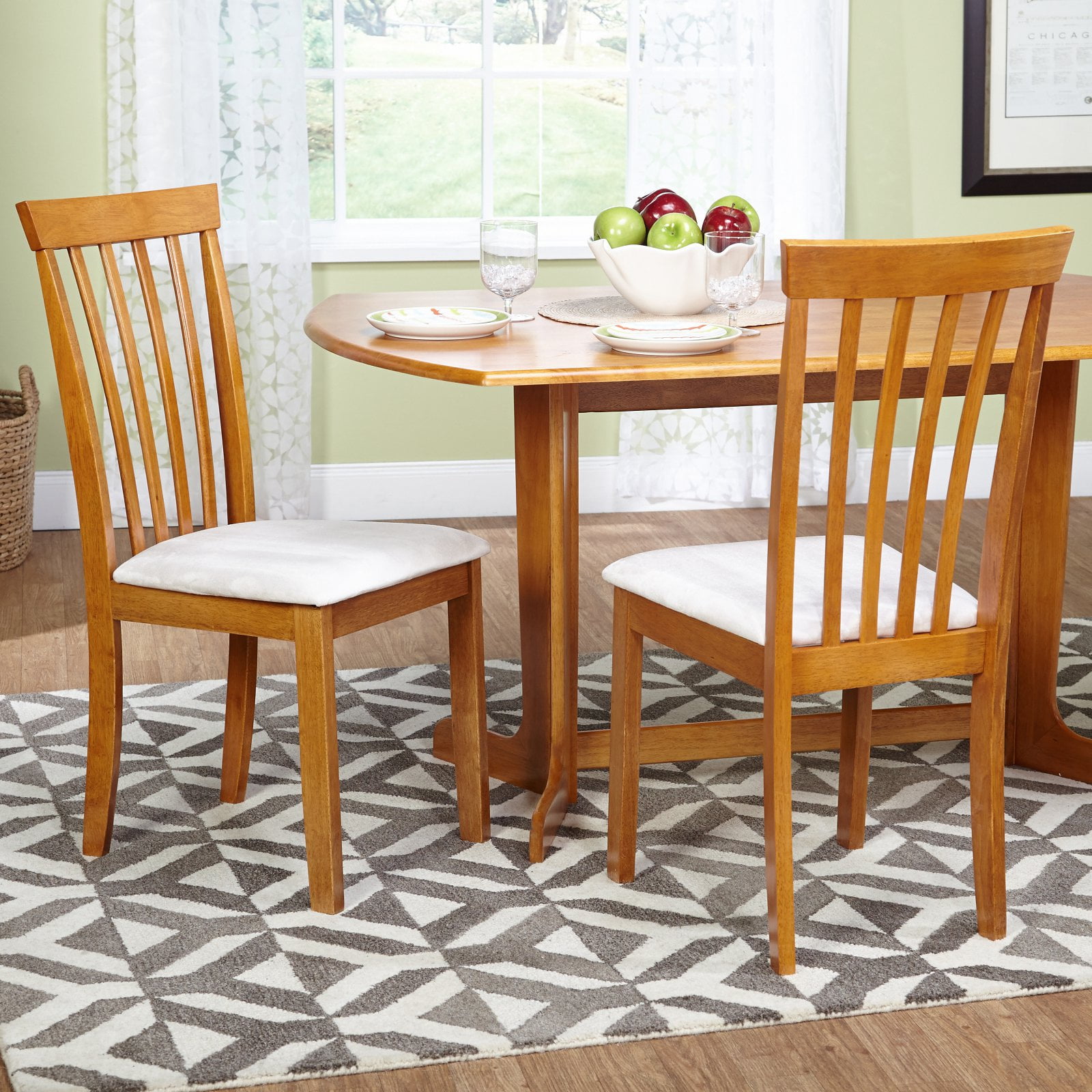 Includes: Two (2) Chairs Finish: Honey Upholstered in Cream microfiber Seat height: 18.5 inches Seat dimensions: 17″W x 16.5″D Chair Dimensions: 36.75″H x 17″W x 21.25″D For indoor use