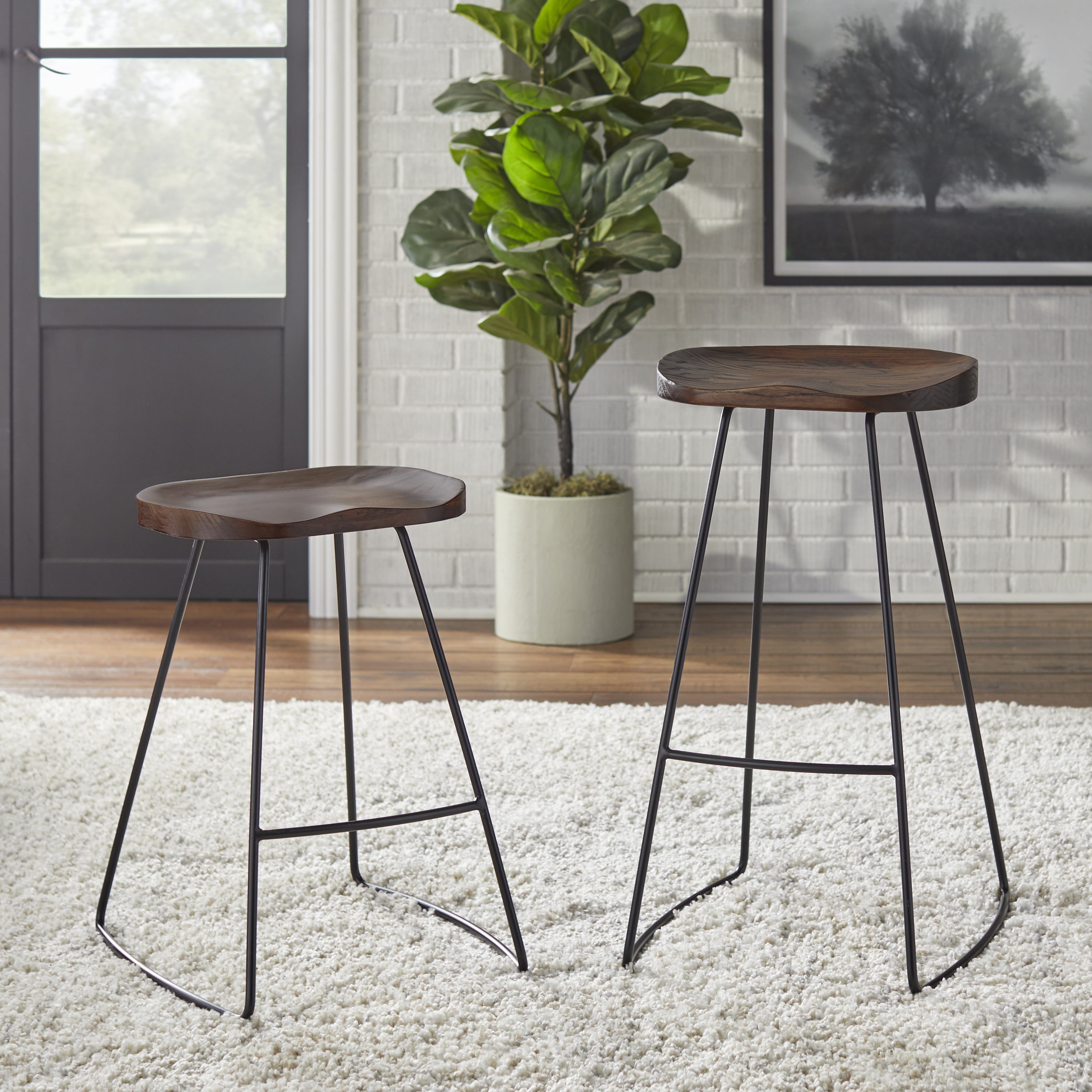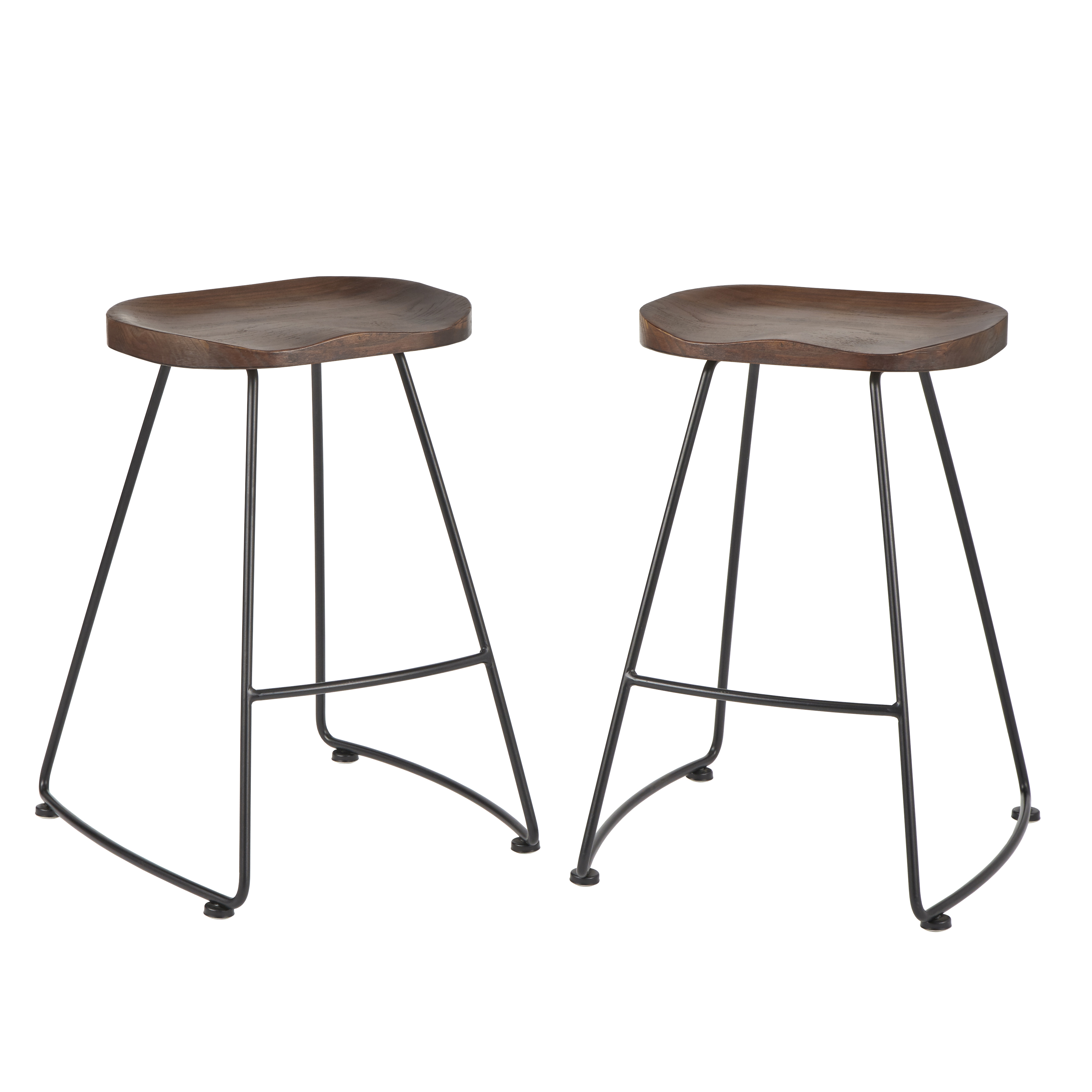 TMS Chapman 24” High Contoured Wood Seat, Backless Stool (Set of 2), Walnut and Black Finish