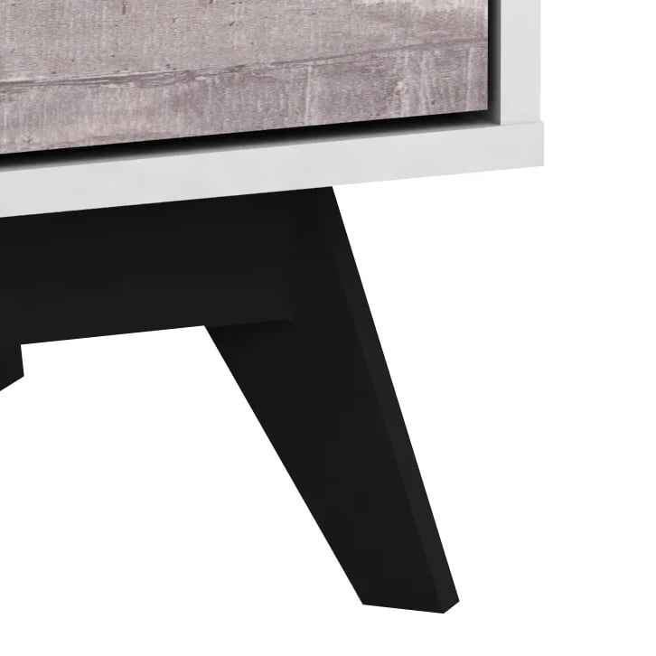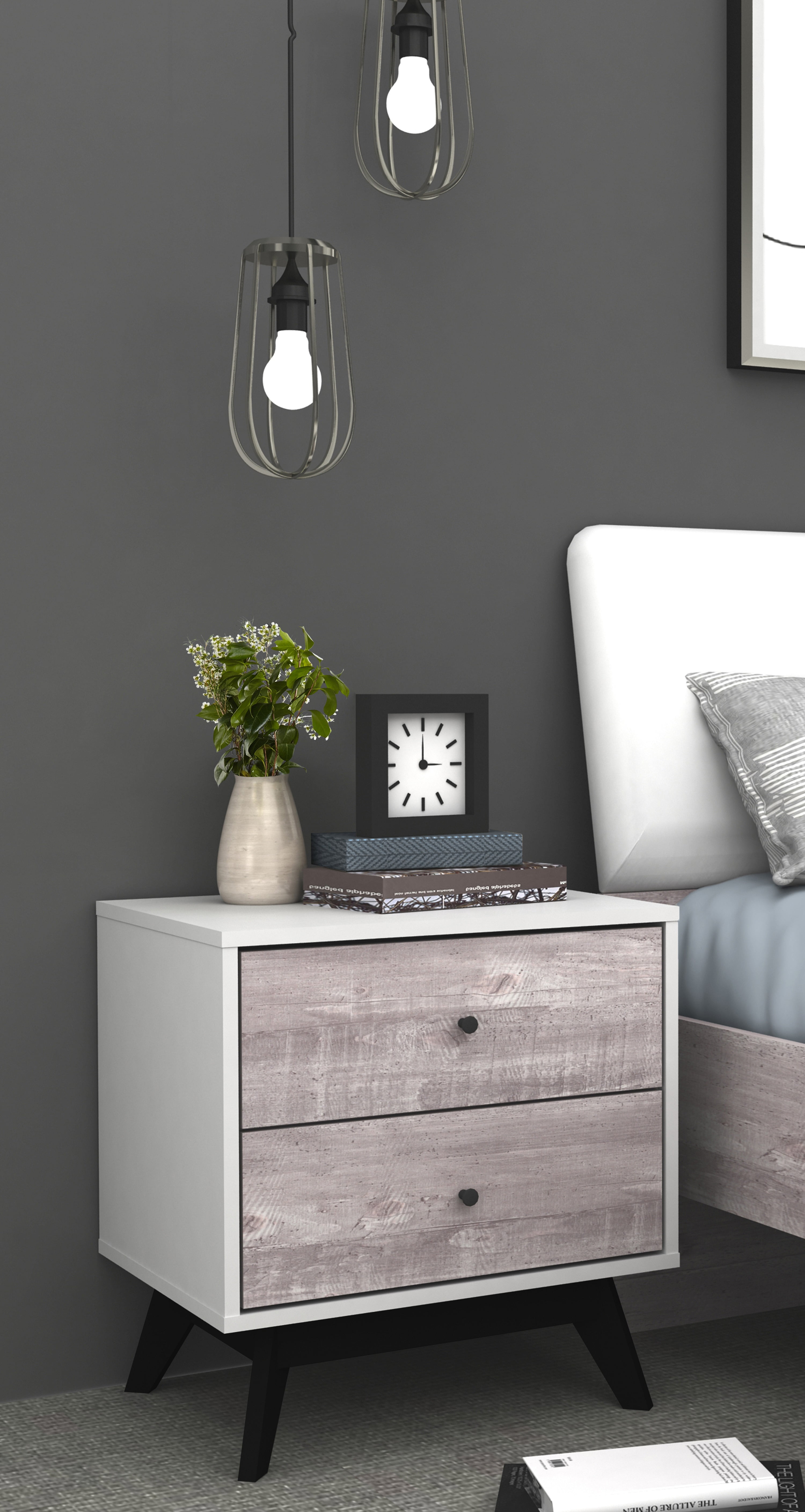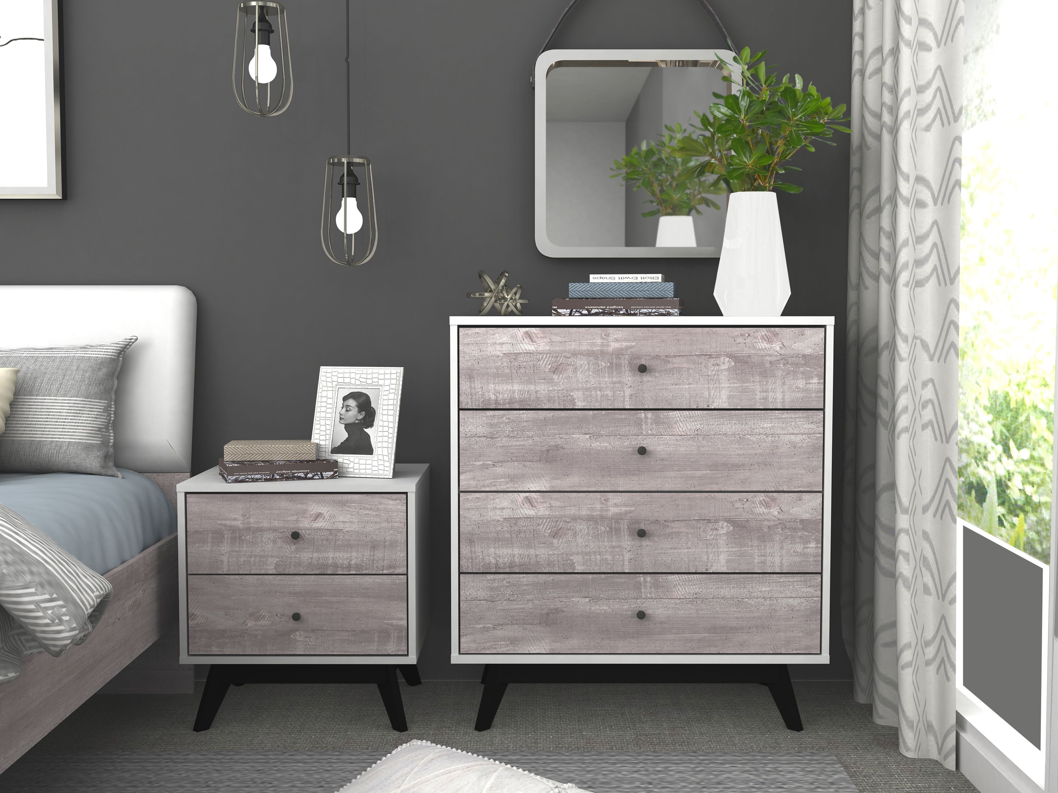 This Nightstand will add an updated look to any bedroom. Made from laminated particleboard along with solid wood legs, giving it is a sturdy build. This chest features a weathered grey finish, making it compatible with almost any interior. Great for small space living.