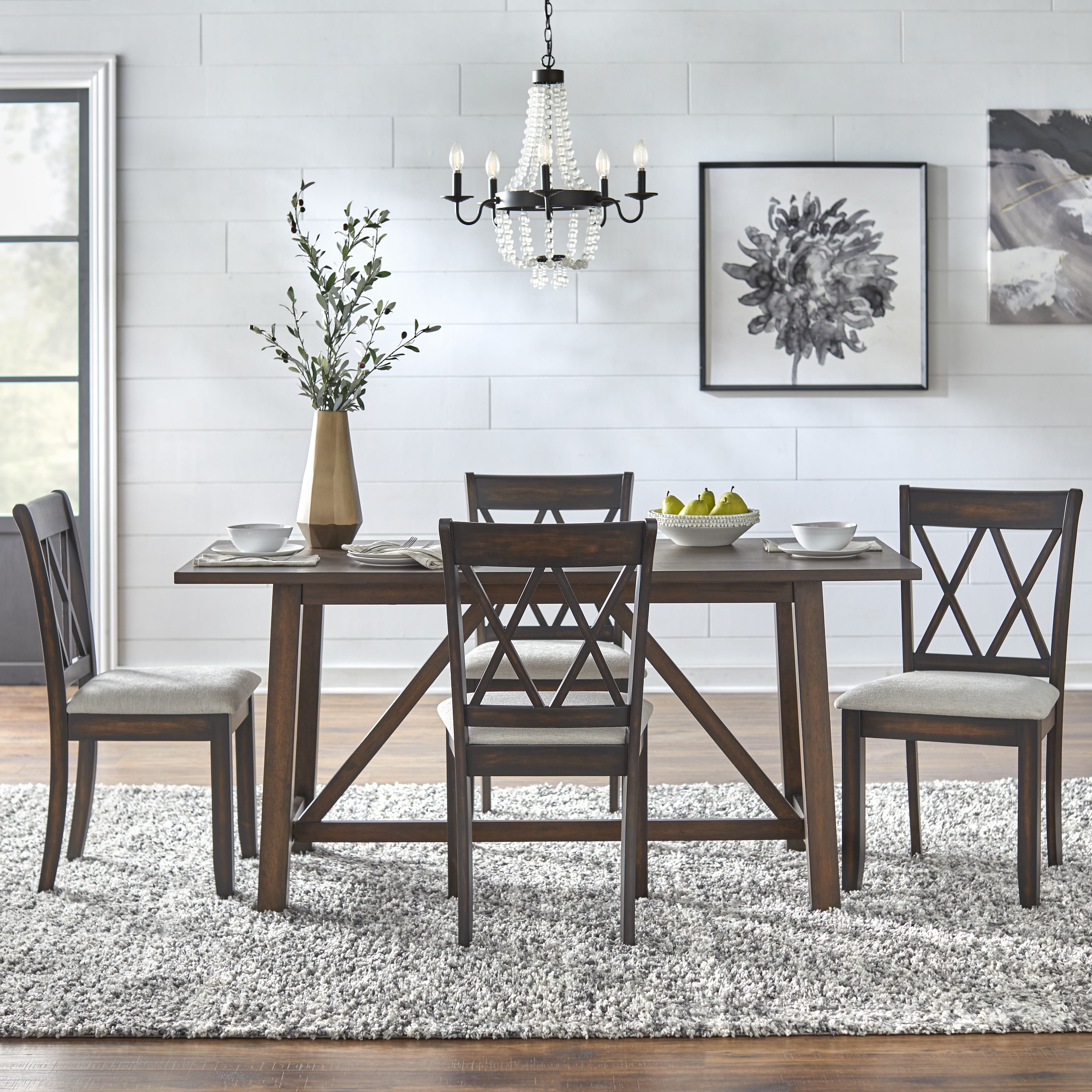 TMS Davidson 38″ Farmhouse Trestle Bench, Rustic Brown Includes: one (1) bench Modern farmhouse style Trestle style base Saturday bench top – 25 mm thick and legs – 64 mm thick Seats two comfortably Assembly required Bench top crafted of MDF and veneer with Rubberwood legs Rustic Brown finish Ships in one (1) carton Overall bench dimensions: 18.5 inches high x 38 inches long x 15 inches deep