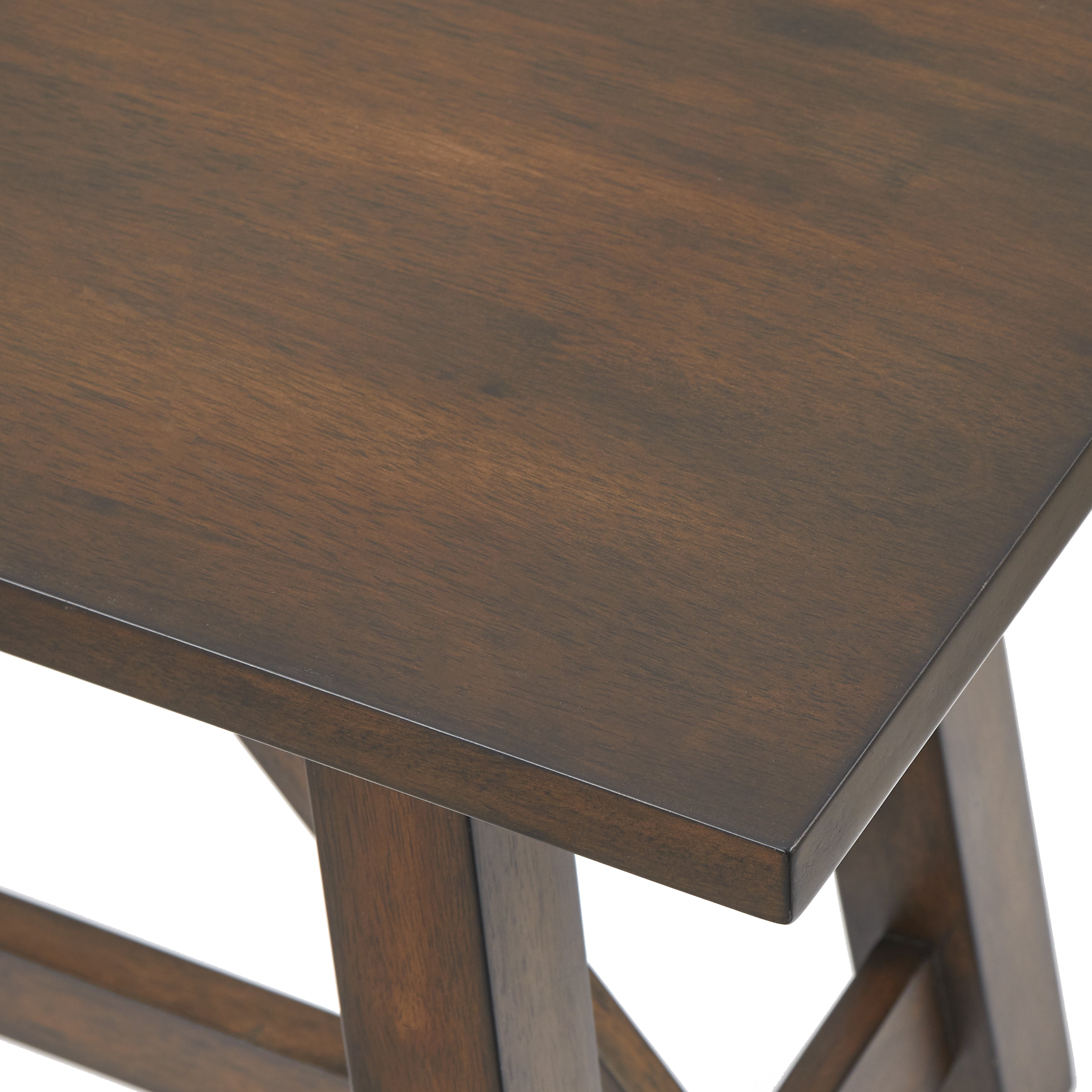 Add a timeless look to your dining table with the Davidson Farmhouse Trestle Bench by TMS. The classic style of this bench easily coordinates with a range of styles of dining tables and chairs, seating two comfortably. Constructed of solid rubberwood, the trestle style leg design adds visual interest, a sure complement to the look of any table. Constructed of solid rubberwood with a rustic brown finish, gives this bench modern farmhouse appeal.