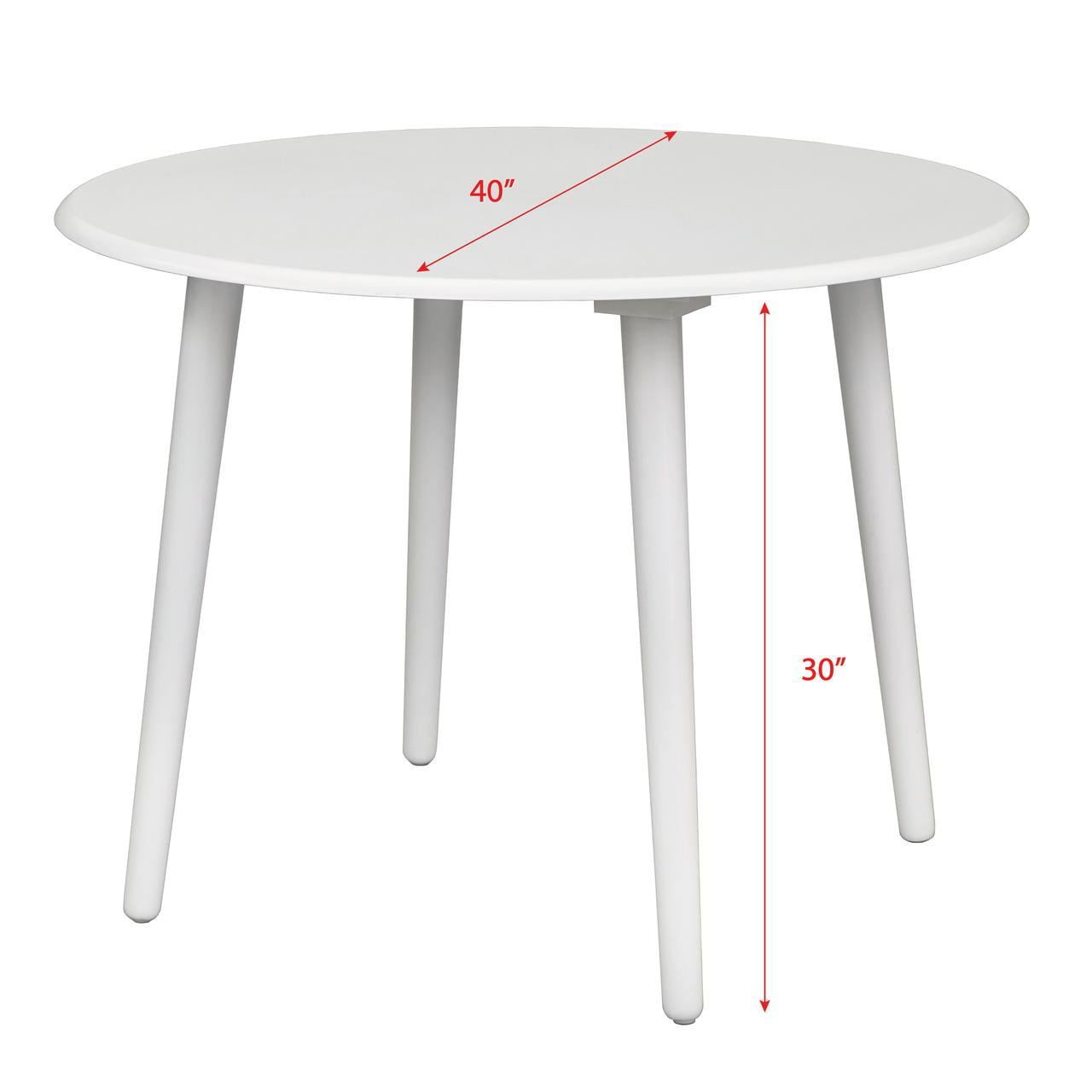 Transitional style round dining table Works well with modern farmhouse or contemporary room décor Features round tapered angled legs Seats up to four (4) comfortably Includes: 1 dining table Available in rich Walnut or Oak finishes Constructed of solid rubberwood legs with an MDF tabletop Ships in two (2) cartons, assembly required Table diameter: 42″ Table dimensions: 42″W x 42″D x 30″H For indoor use only