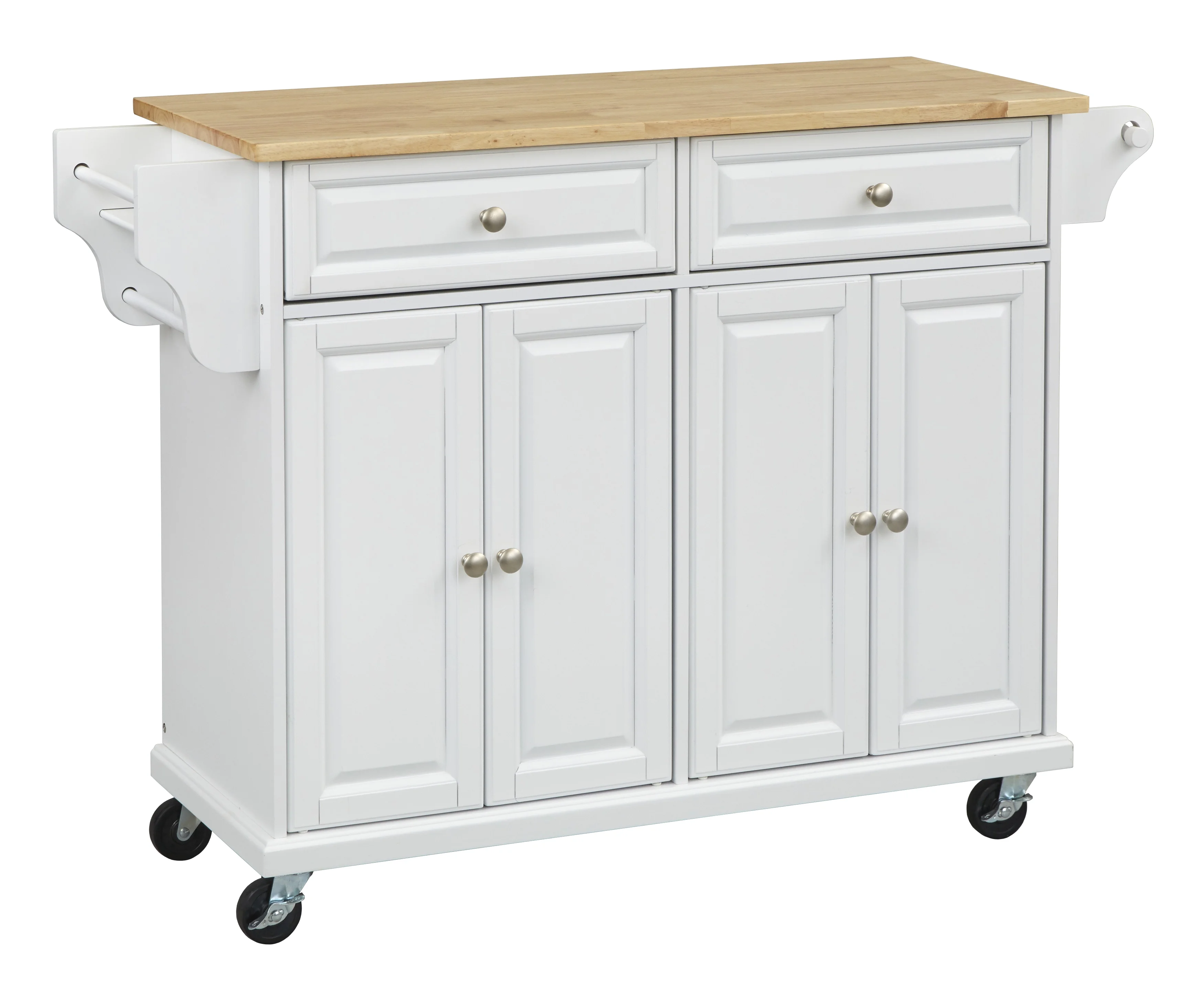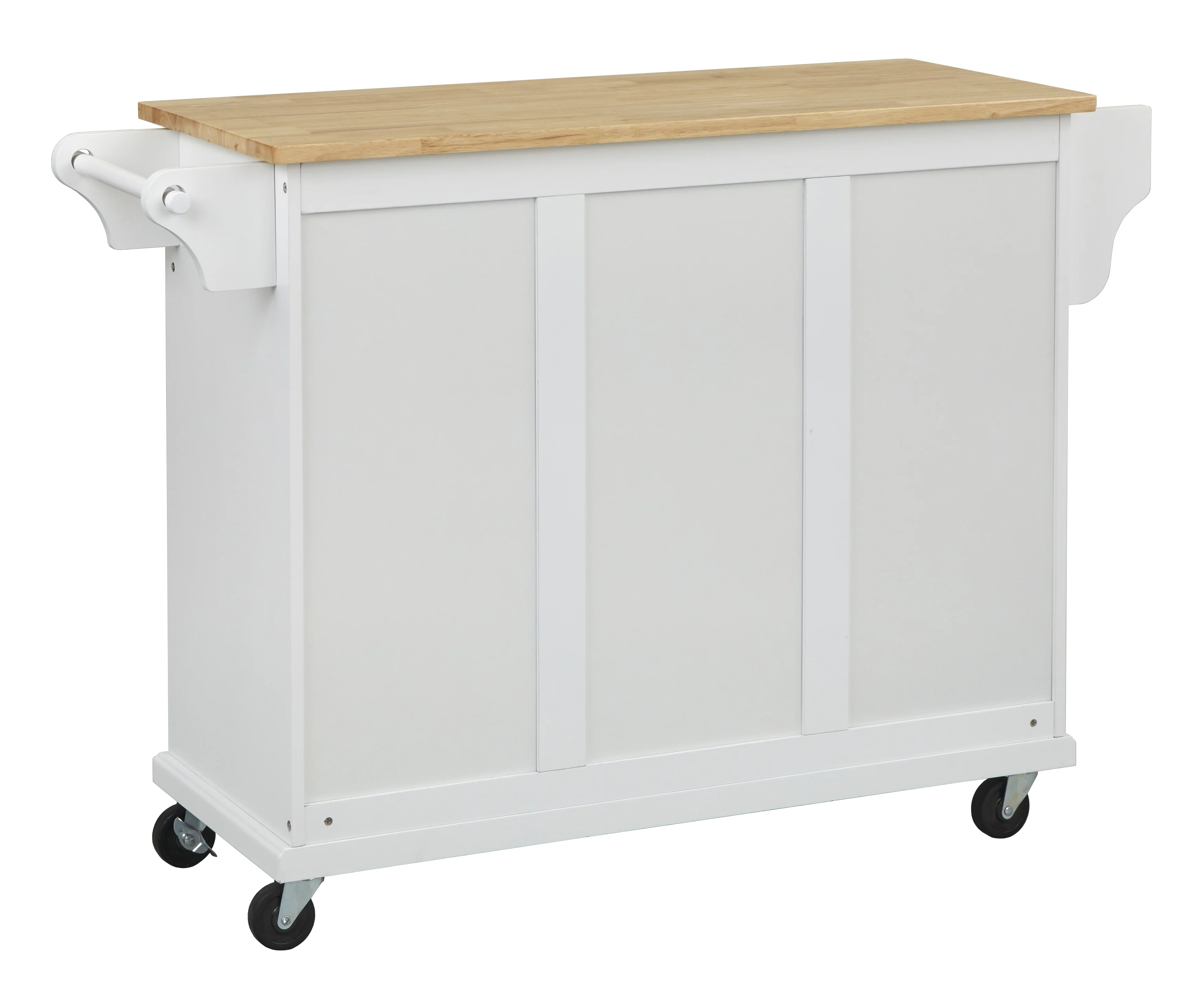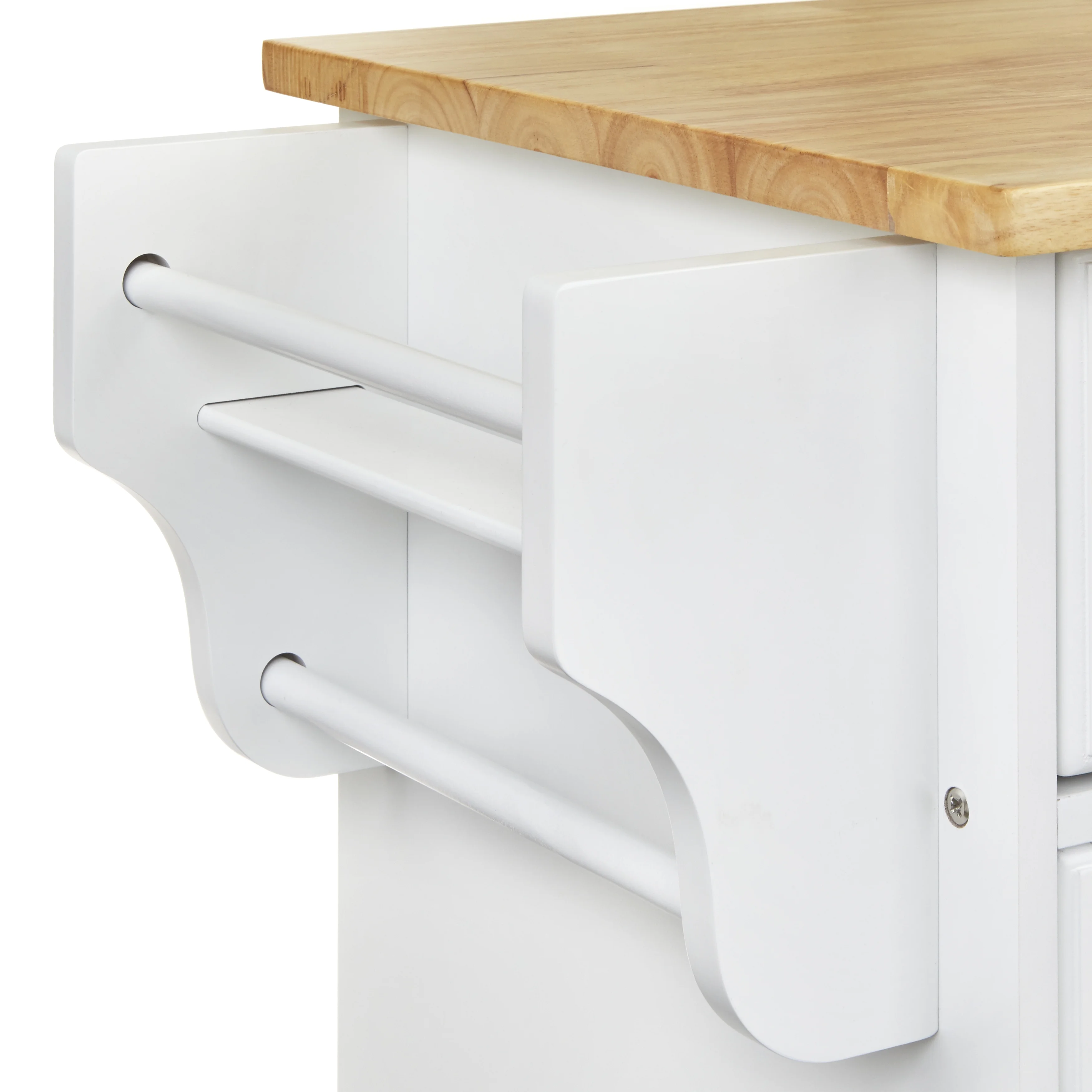 TMS Georgia Butcher Block Rolling Kitchen Island with Drawers, Shelves, Towel Racks, and Spice Rack, White