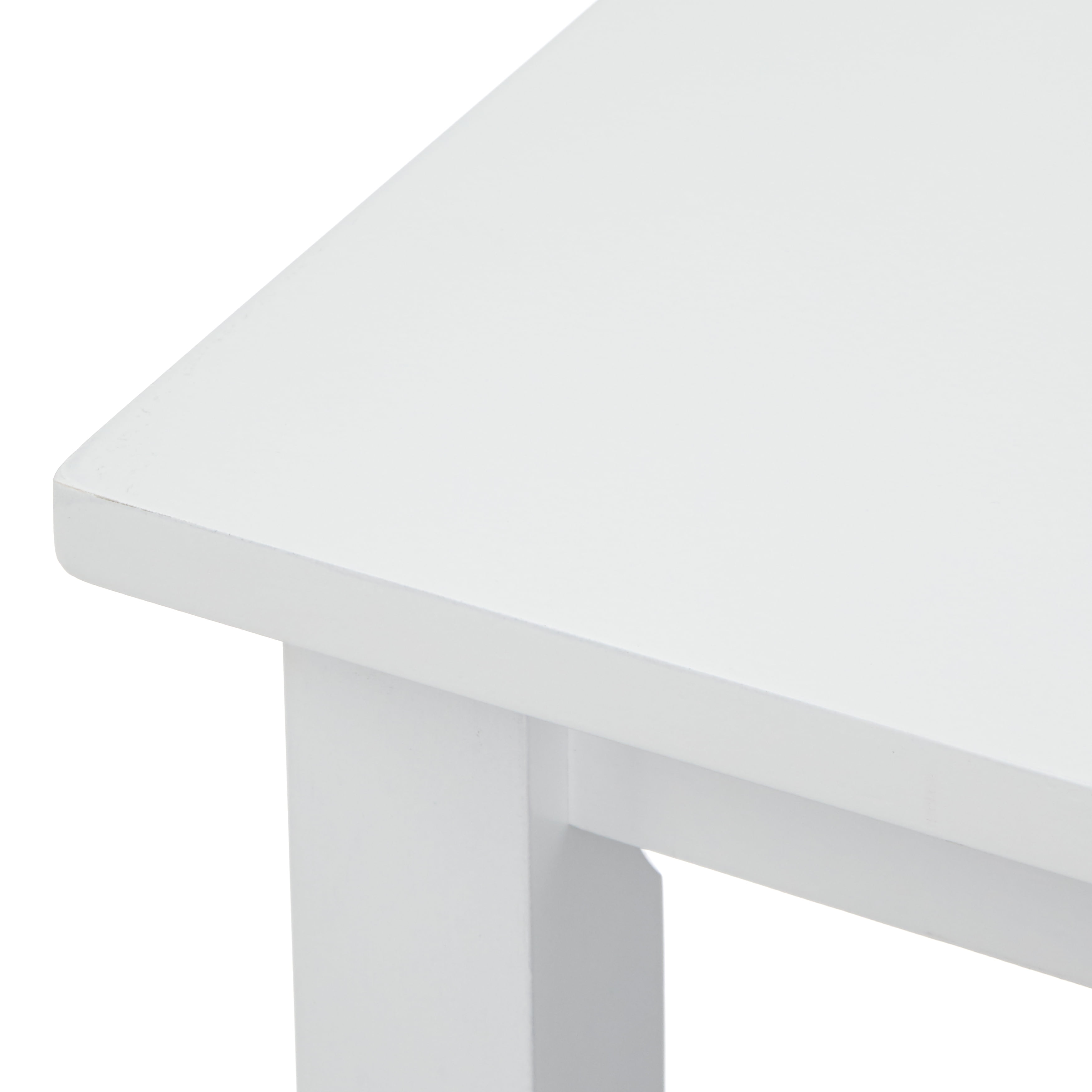 Transform your kitchen or dining space into a cozy haven of tradition with the TMS Kaitlyn 5-Piece Indoor Dining Set. This charming set includes a rectangular table and four cross back chairs, each boasting tapered legs for a classic touch. With its crisp white finish, this set effortlessly blends into any interior style, making it ideal for small space living.