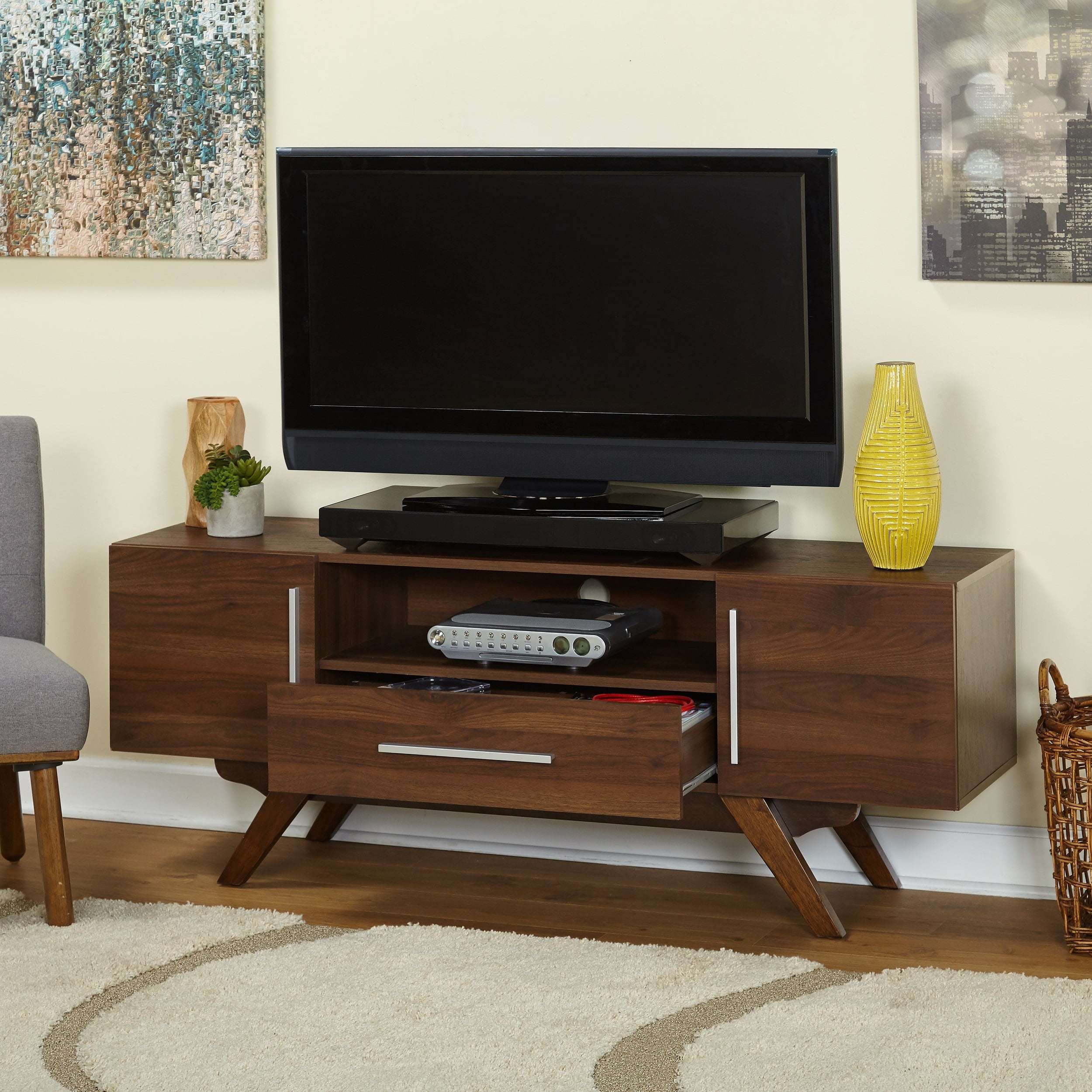TMS Lambert Mid-Century TV Stand, Up to 64 inch TV’s, Walnut